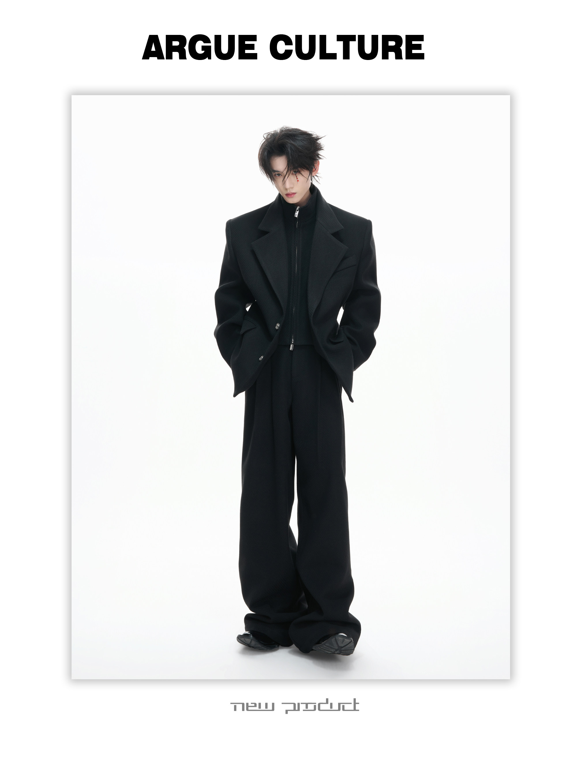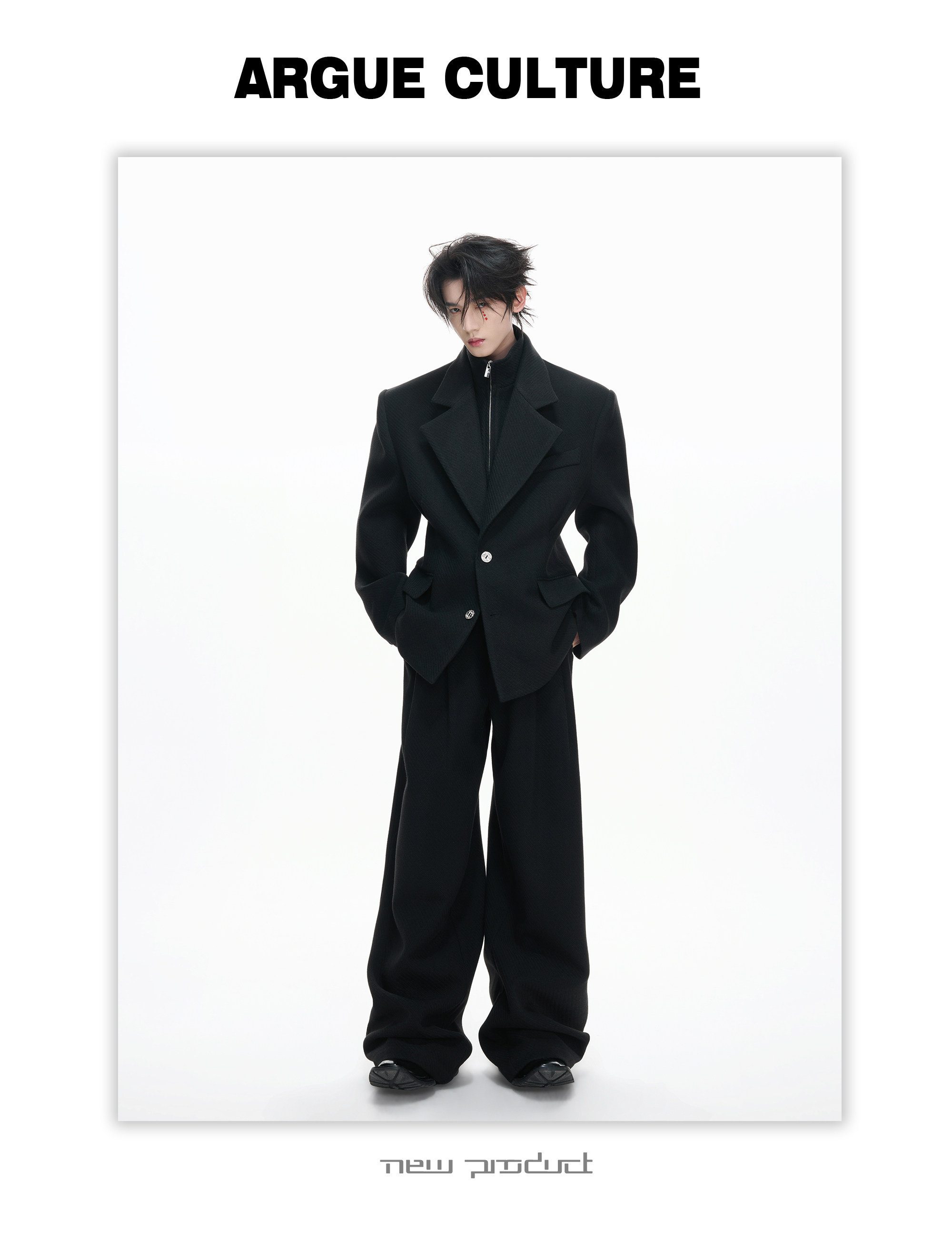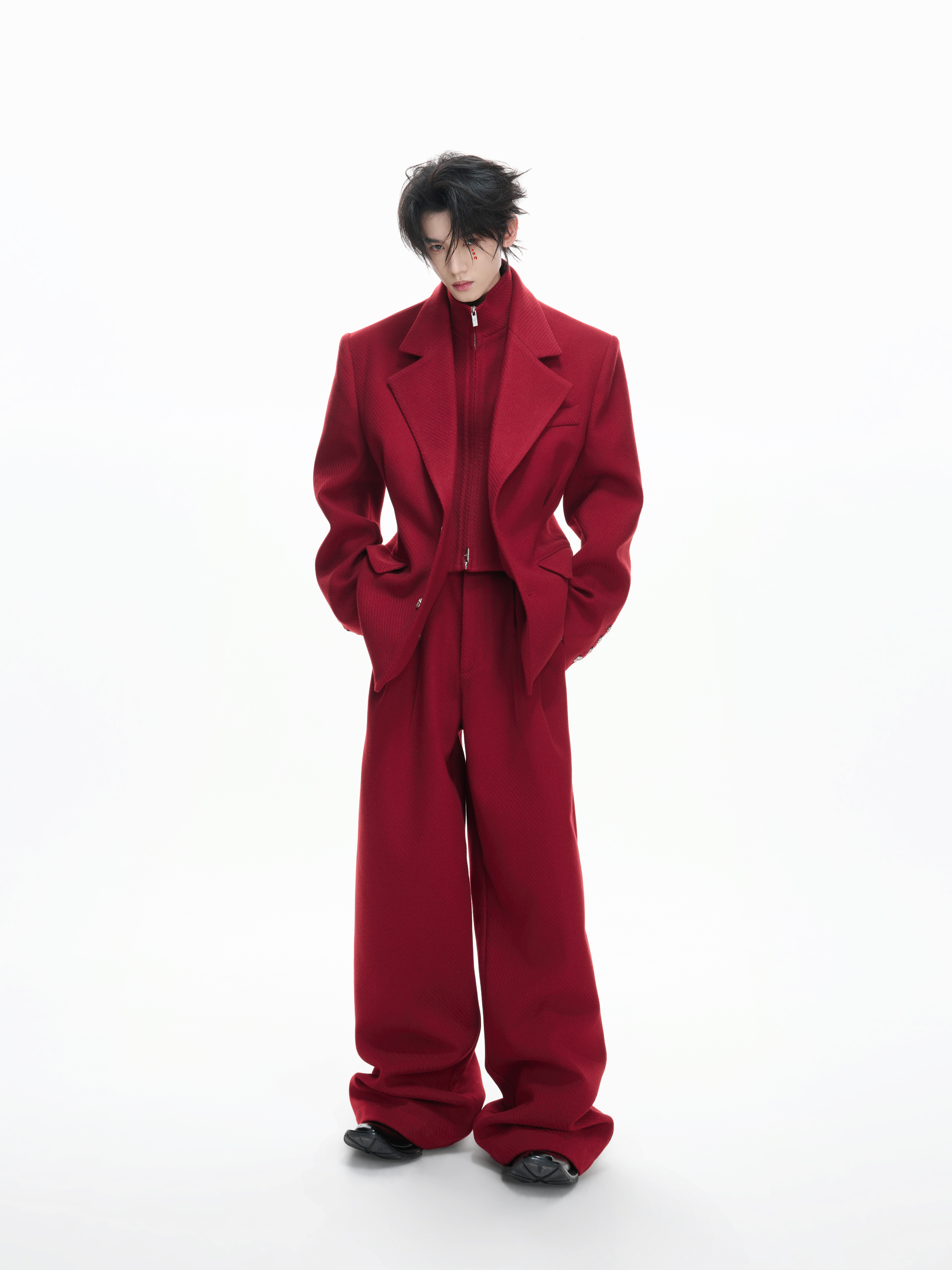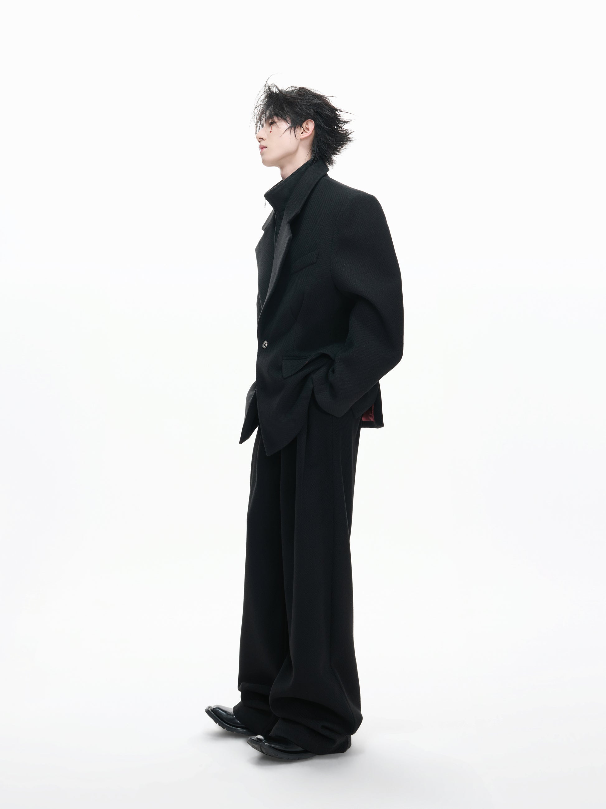 Layered Tailored Jacket & Drape Wide Leg Pants Setup WN23328