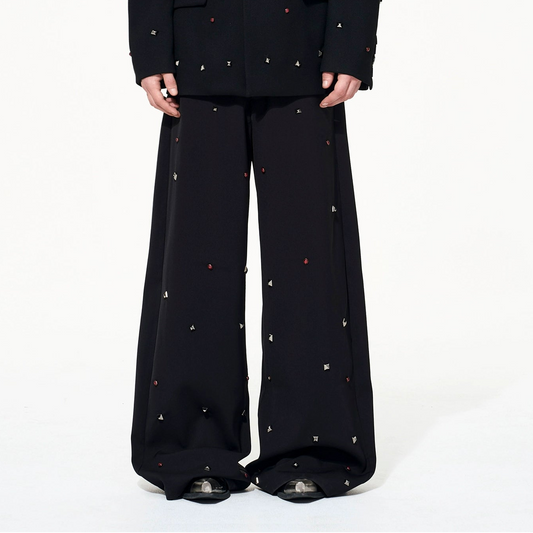 Washed Damage Metal Stud Wide Leg Denim Jeans WN22658