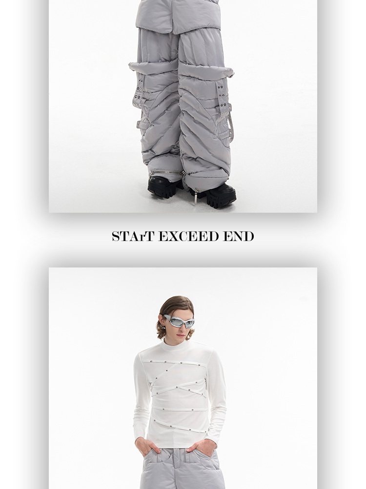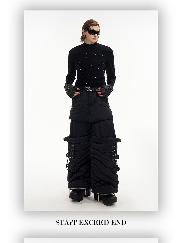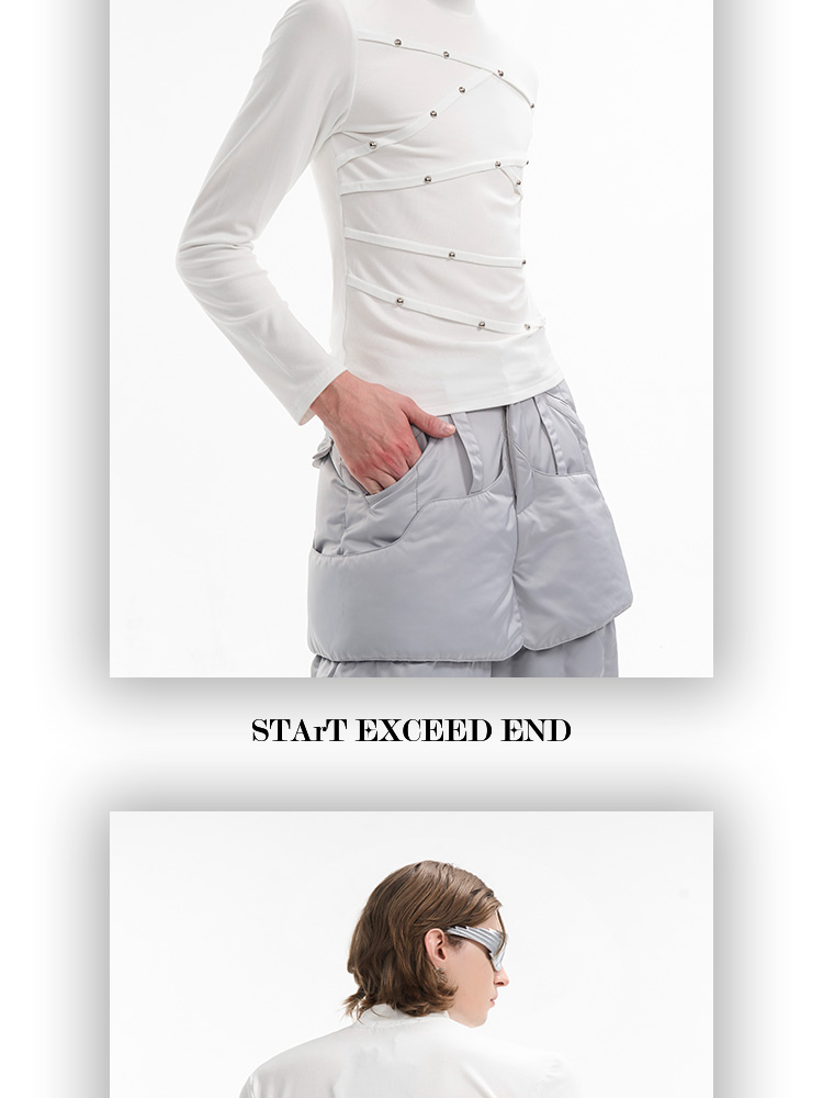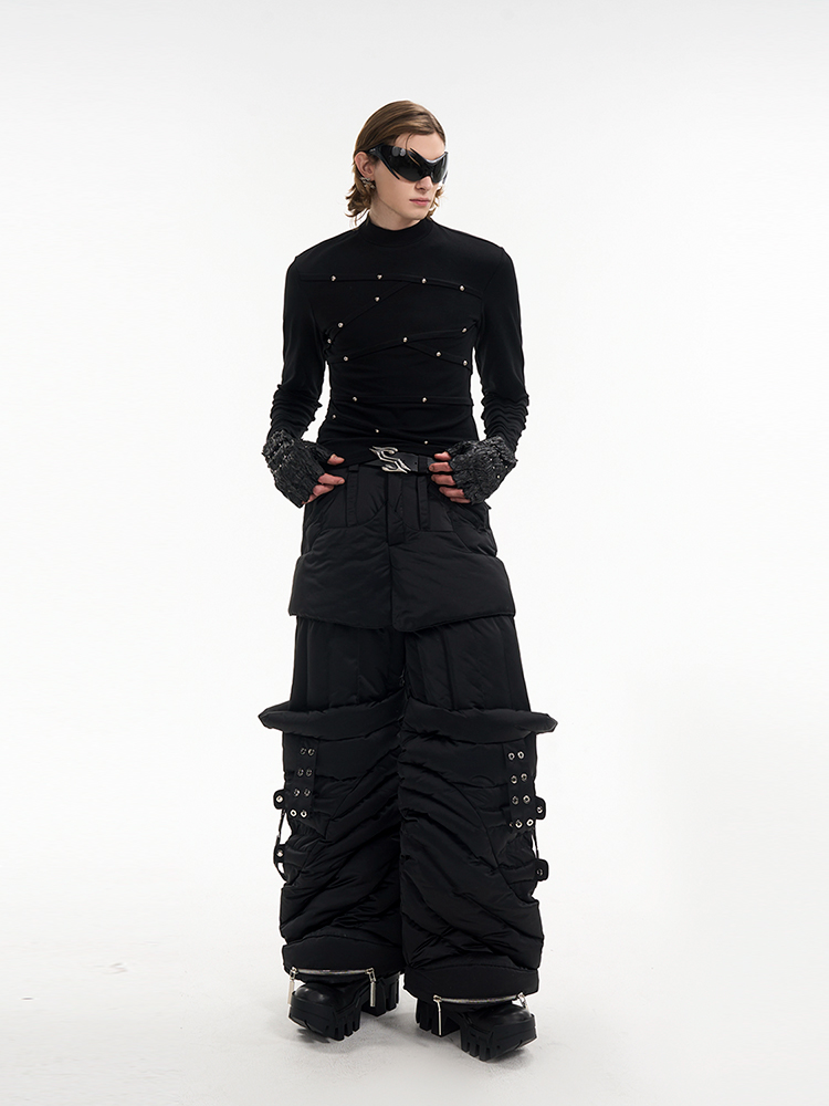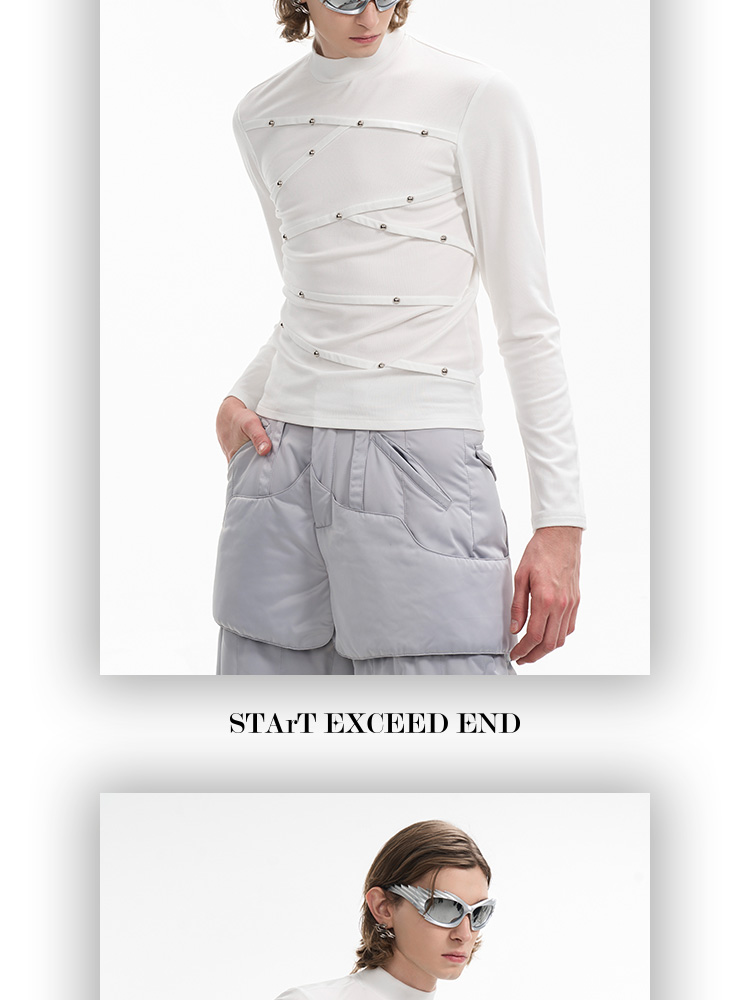 Studded Accents Fitted High-Neck Long Sleeve T-Shirt WN12151
