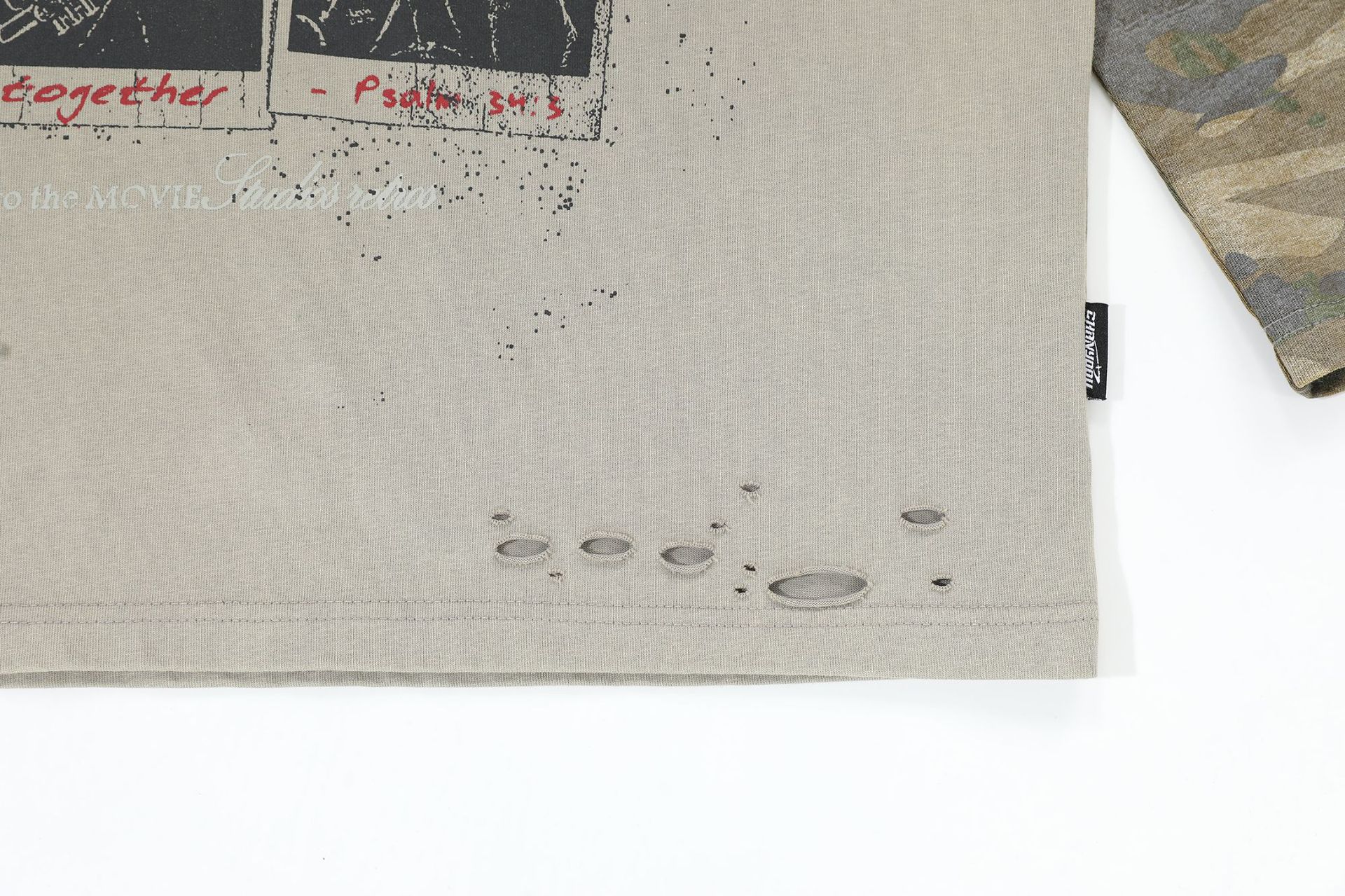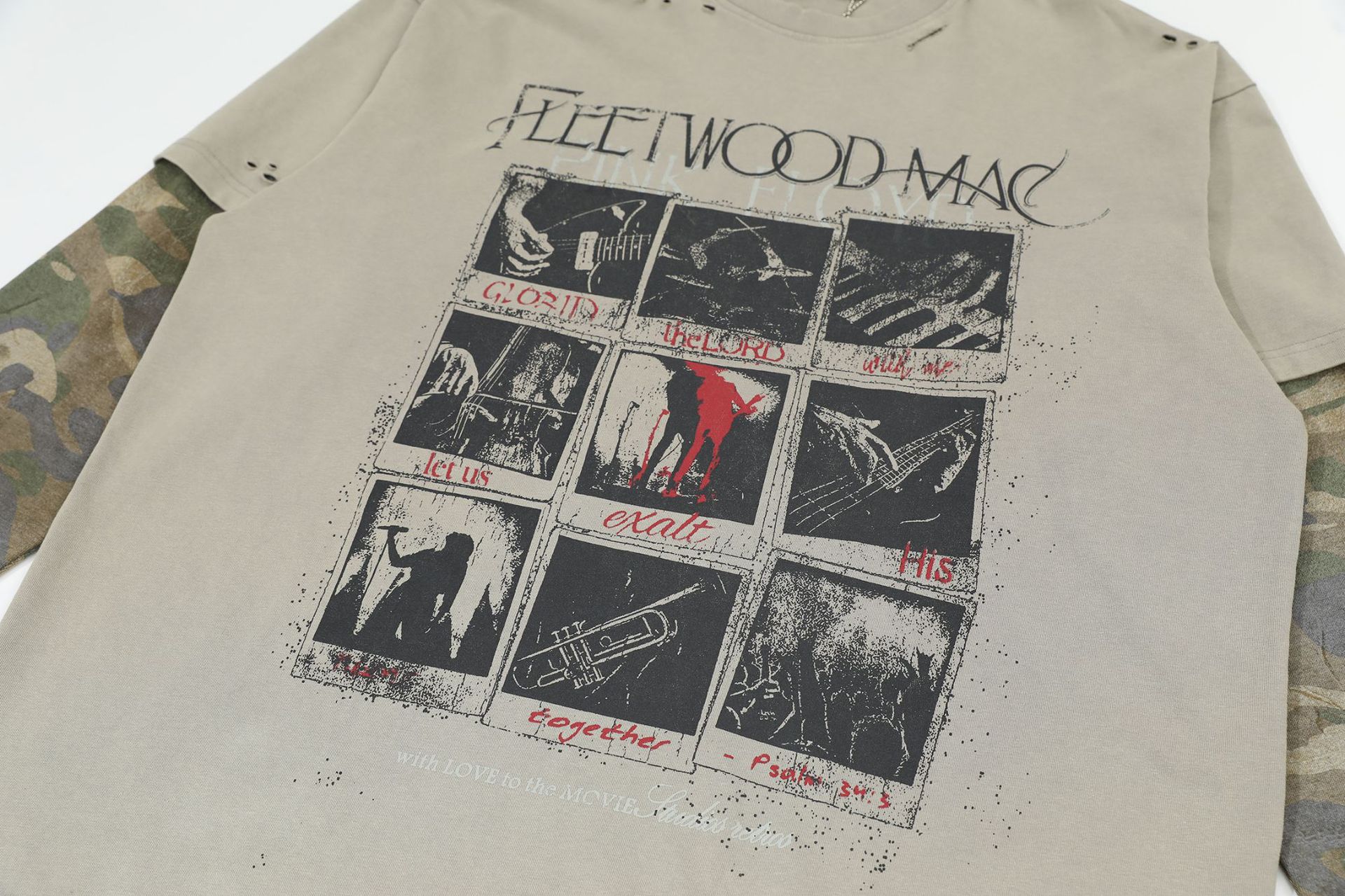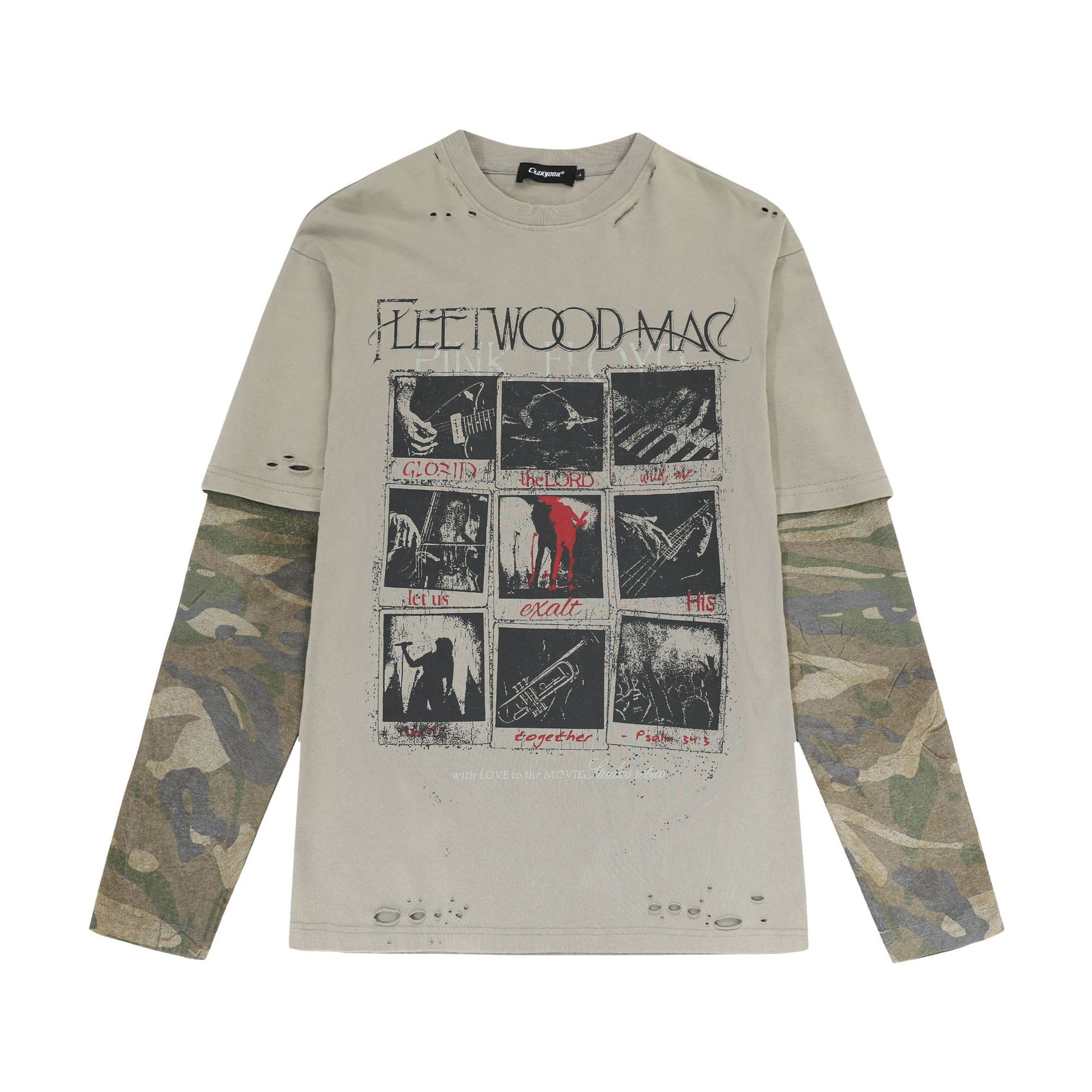 Washed Camouflage Fake Layered Long Sleeve T-Shirt WN14023