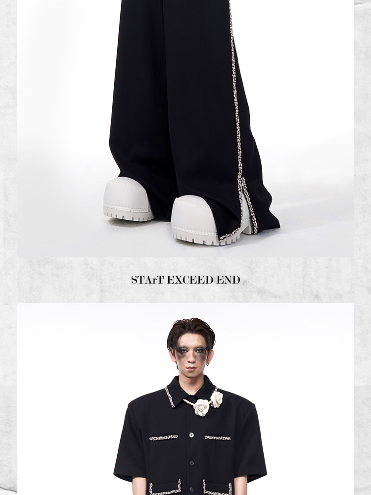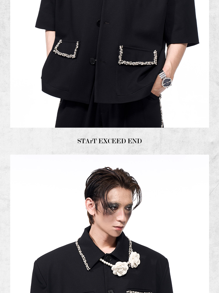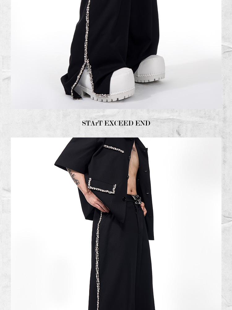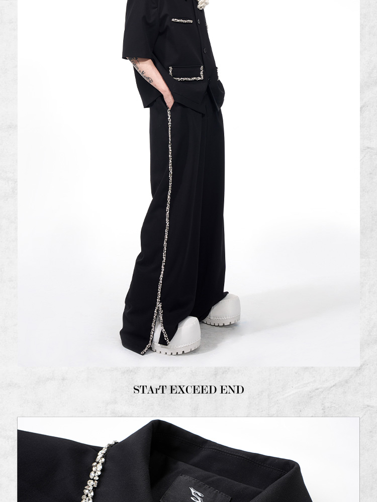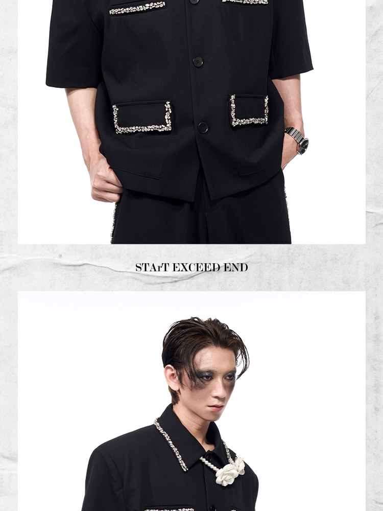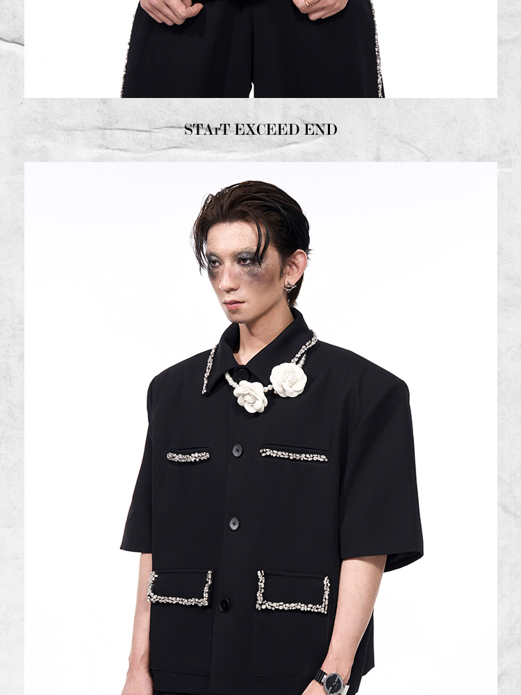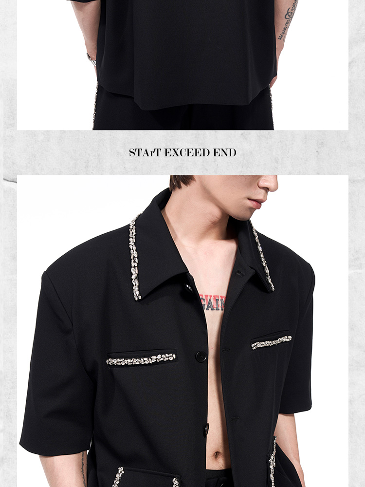 Rhinestone Short Sleeve Shirt Jacket & Rhinestone Slit Flare Trousers Setup WN16581