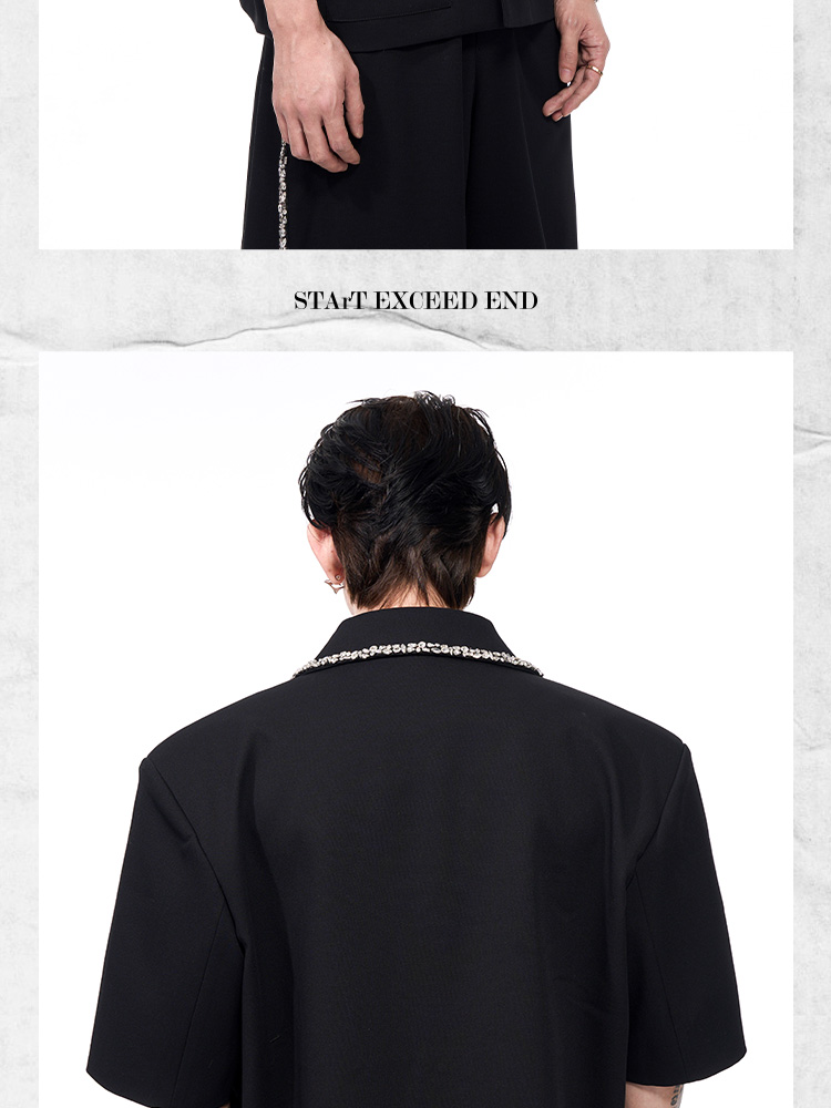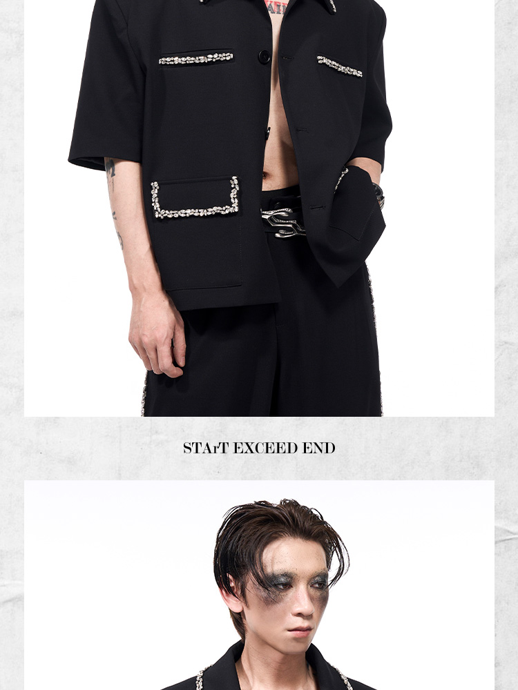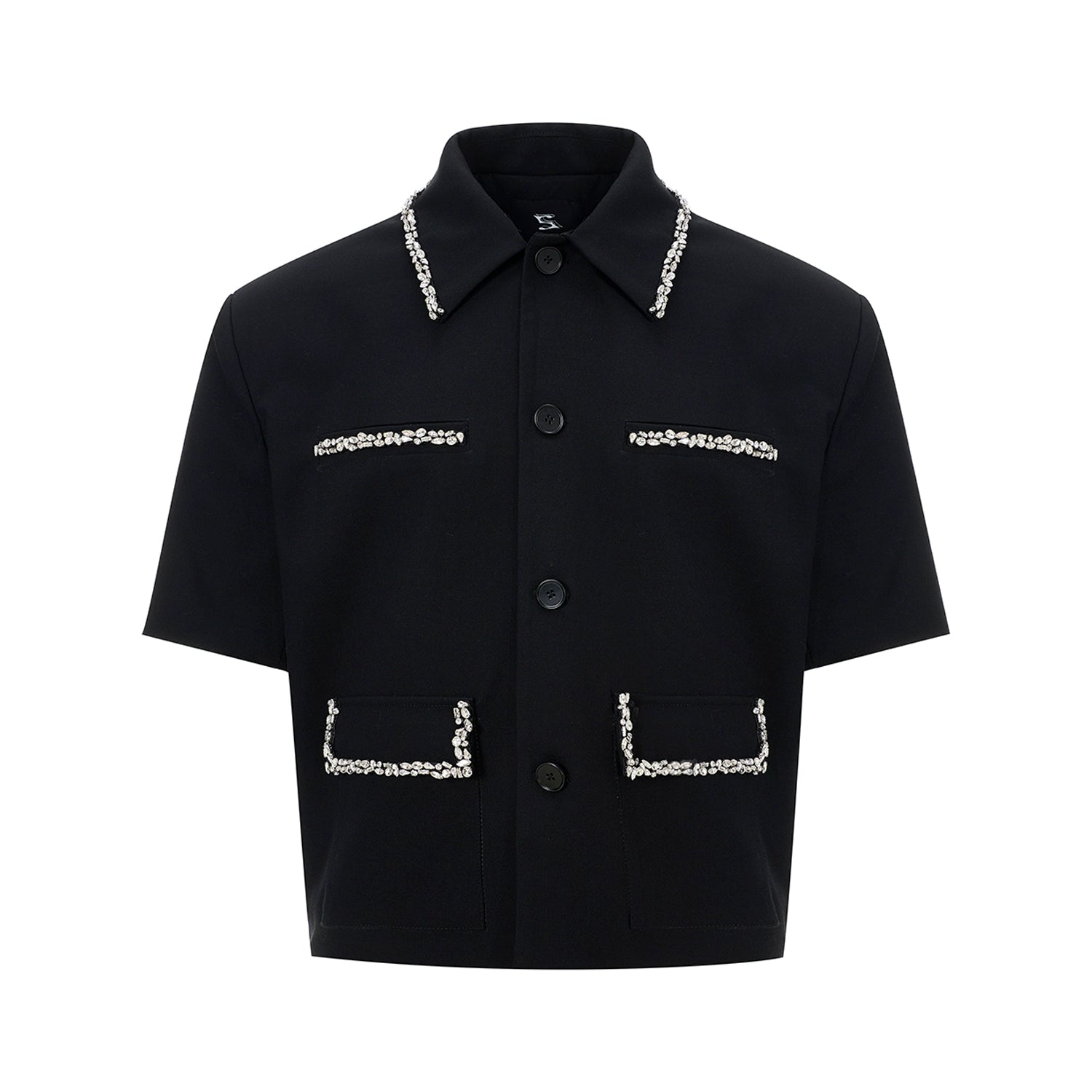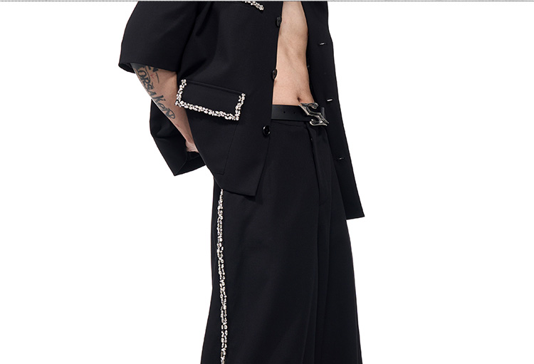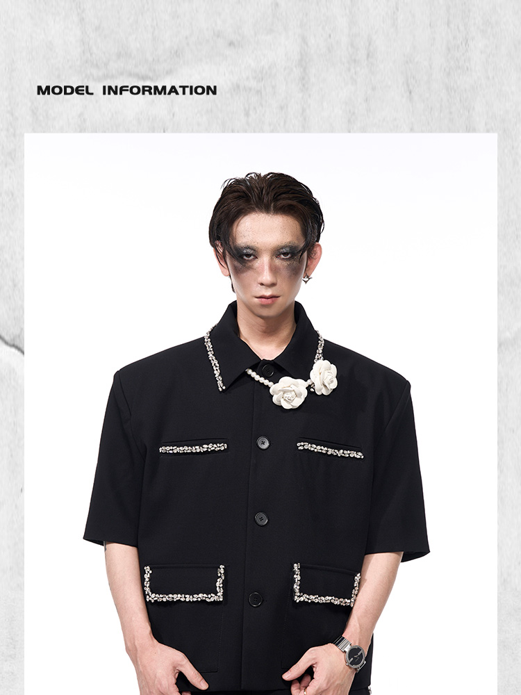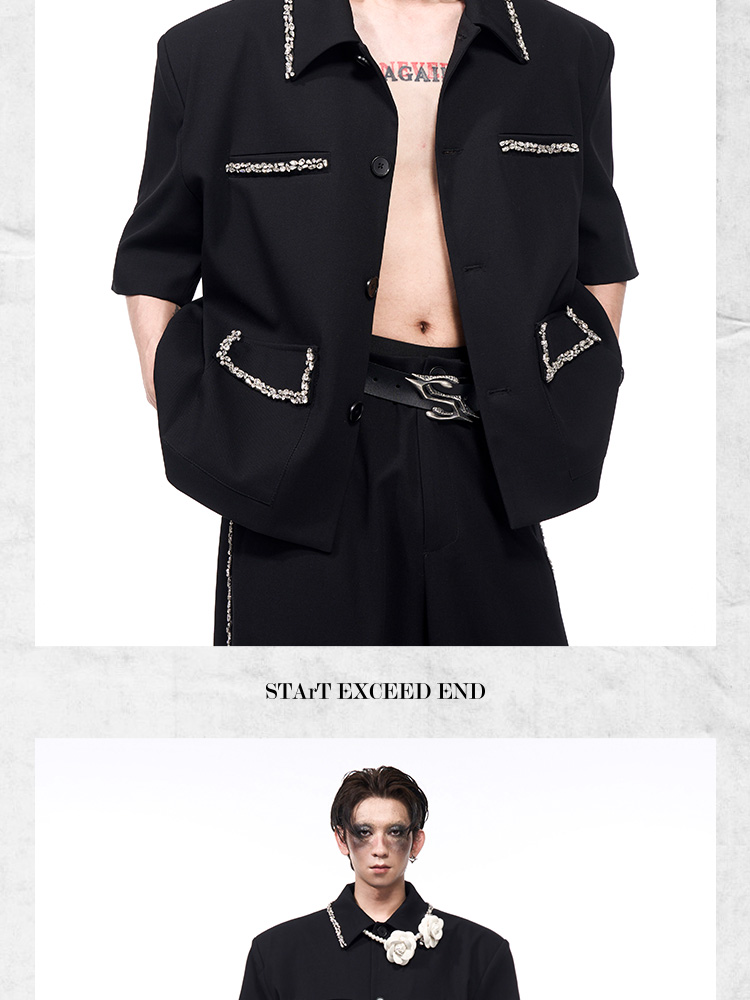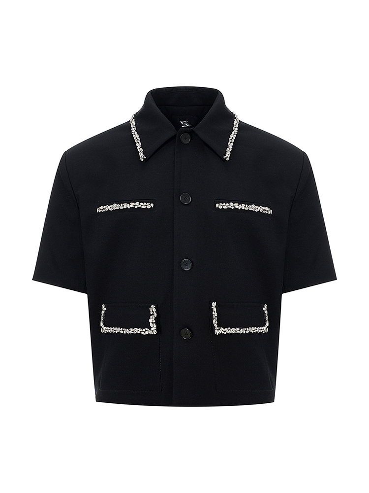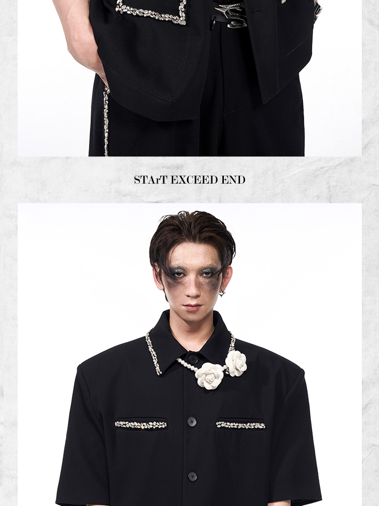 Rhinestone Short Sleeve Shirt Jacket & Rhinestone Slit Flare Trousers Setup WN16581