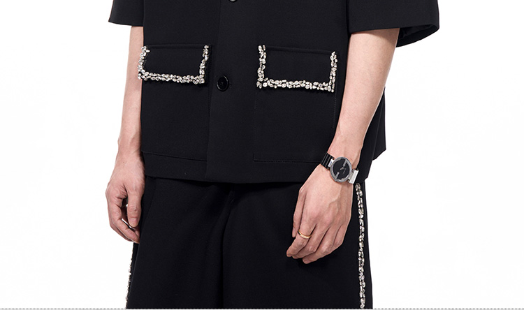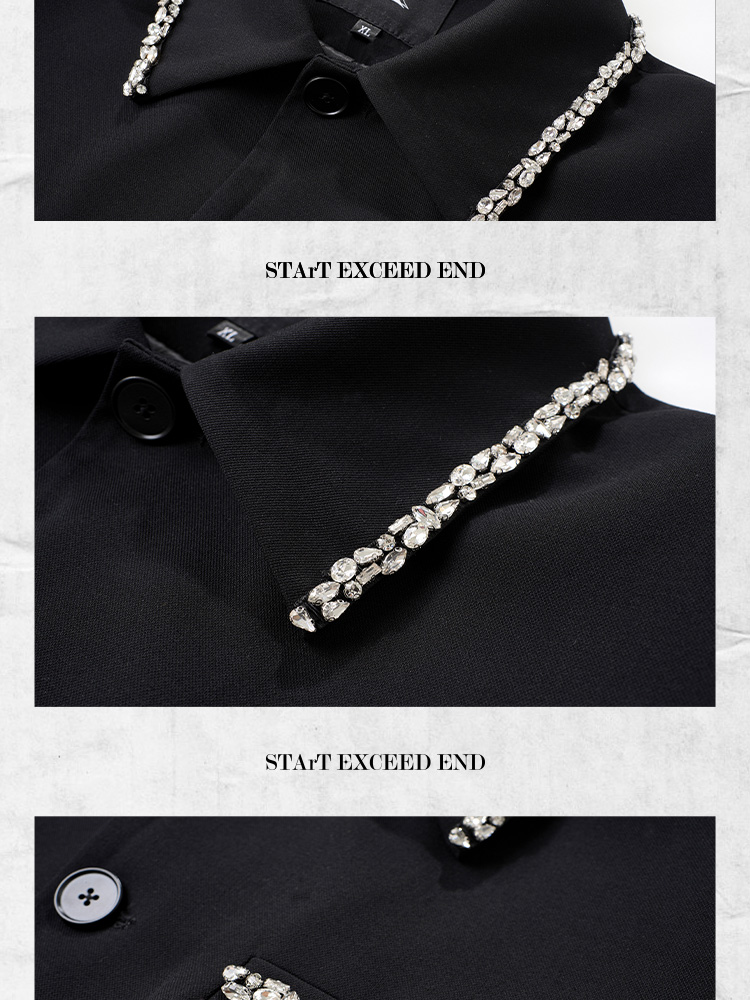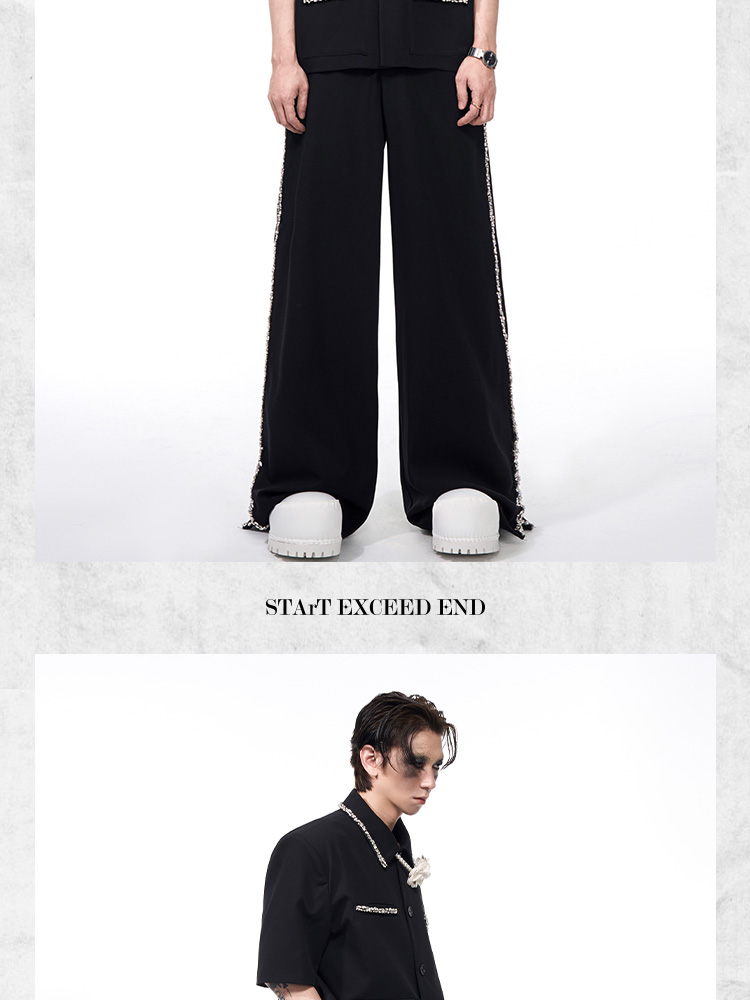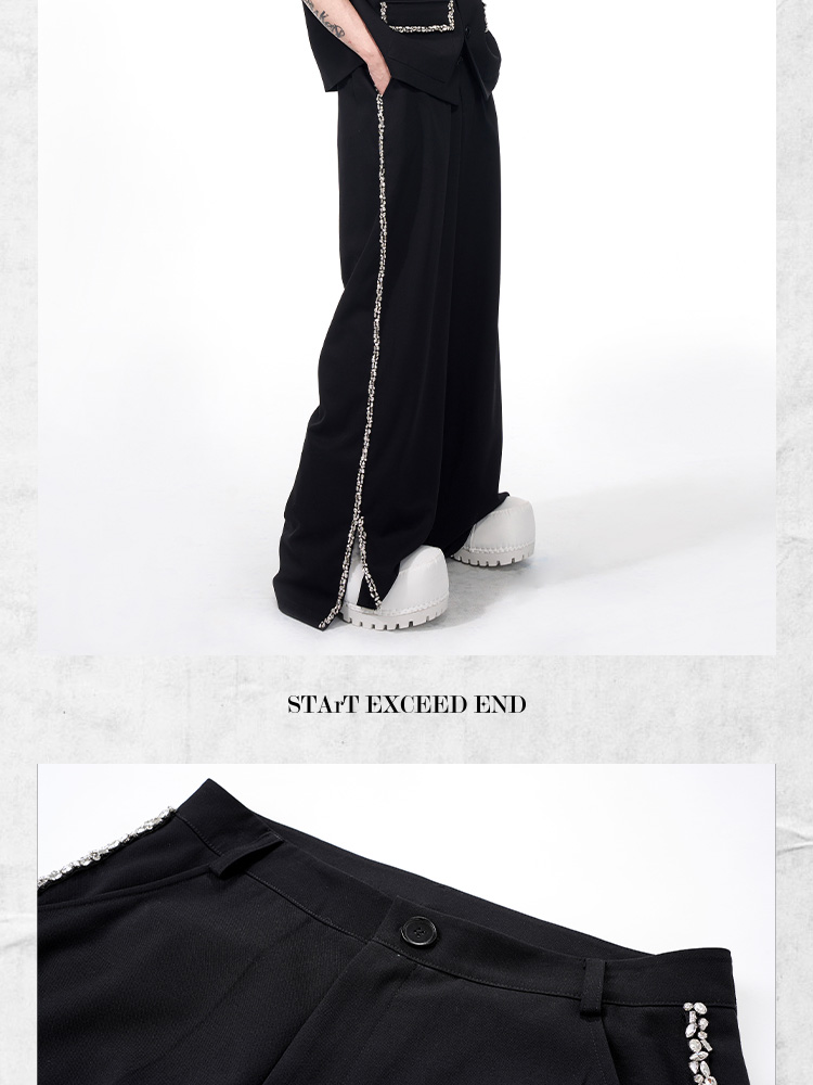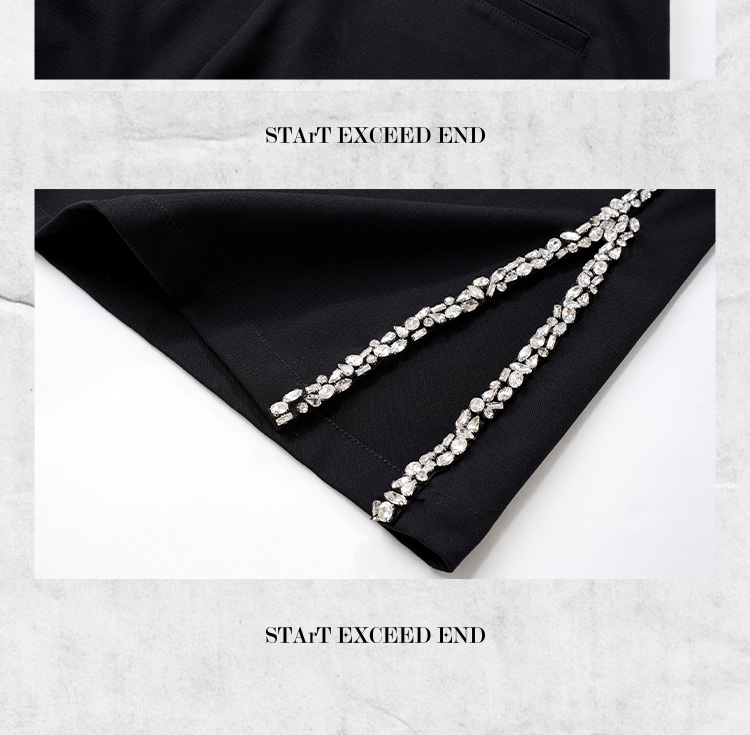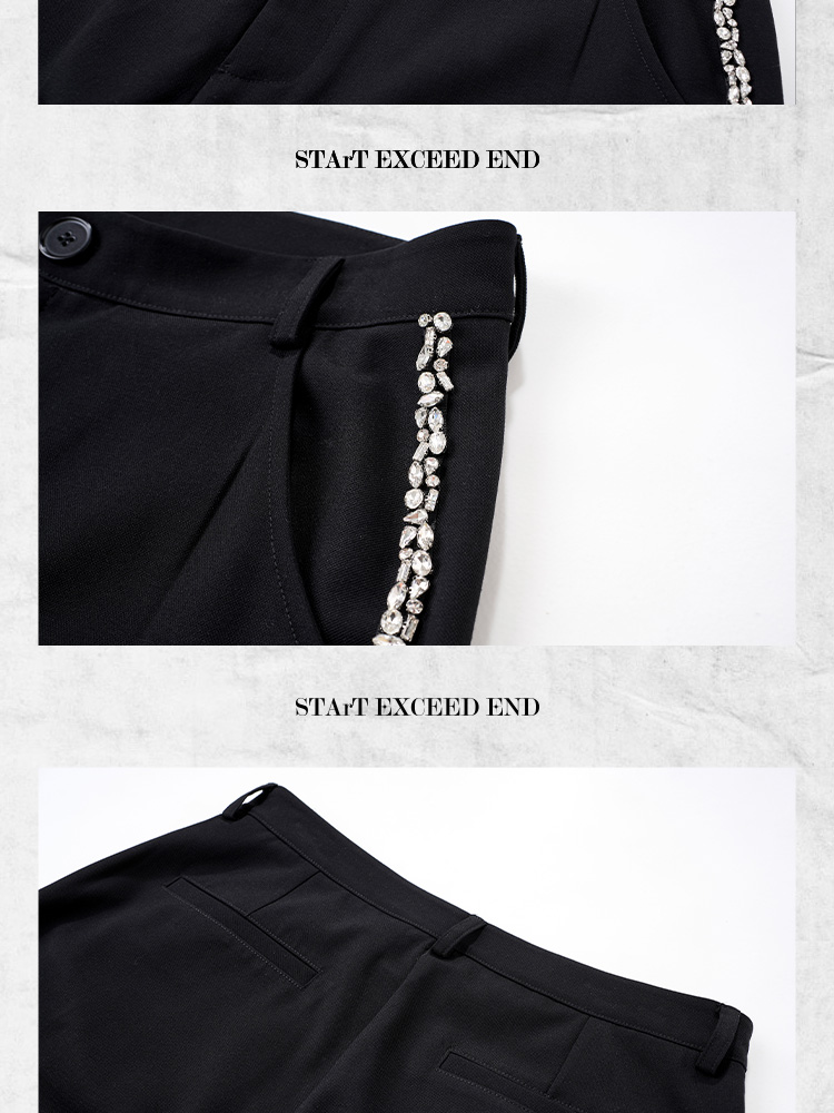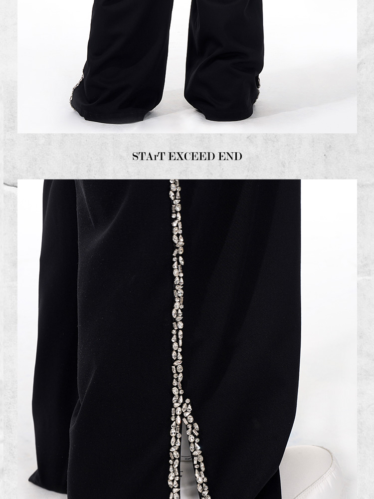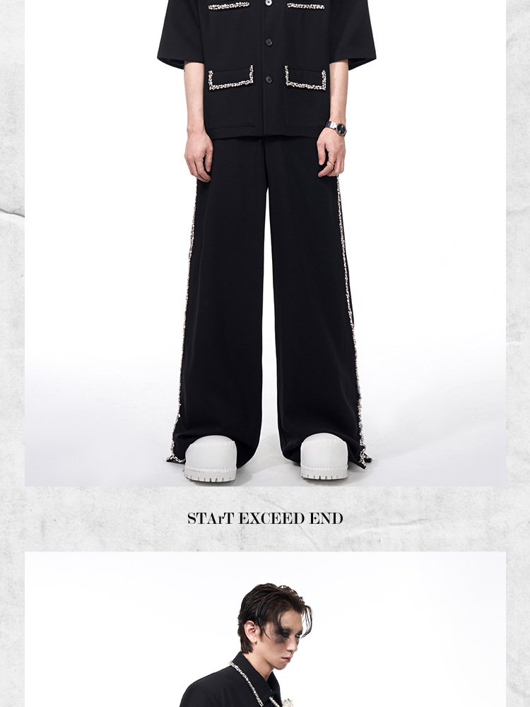 Rhinestone Short Sleeve Shirt Jacket & Rhinestone Slit Flare Trousers Setup WN16581