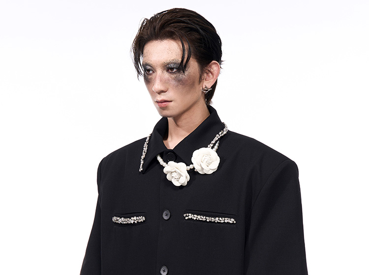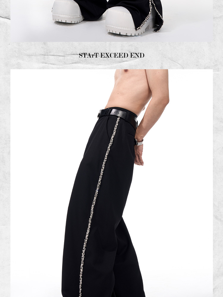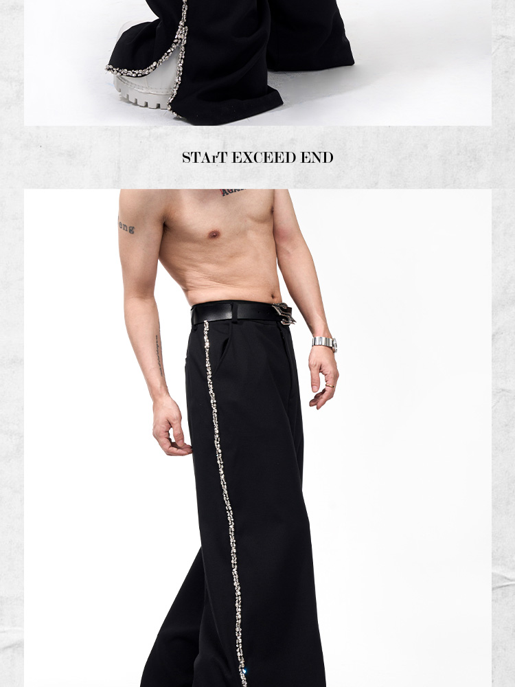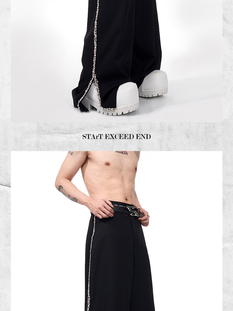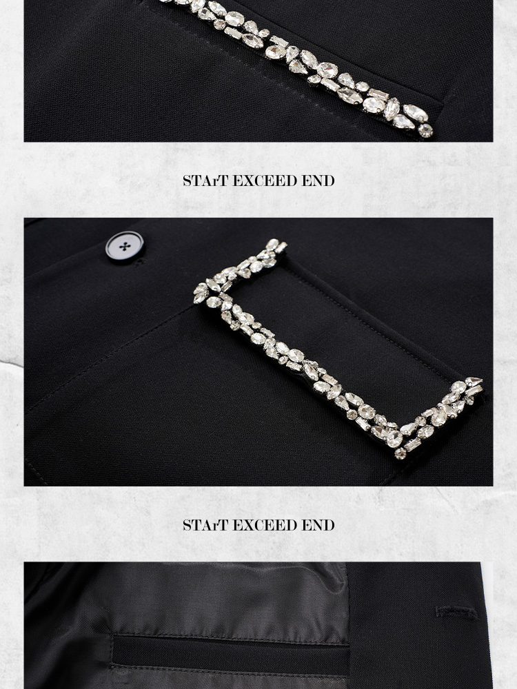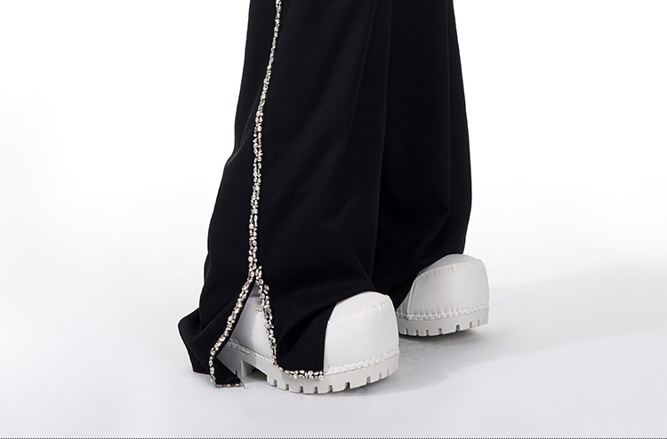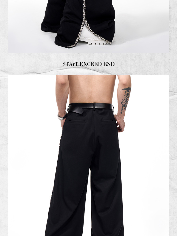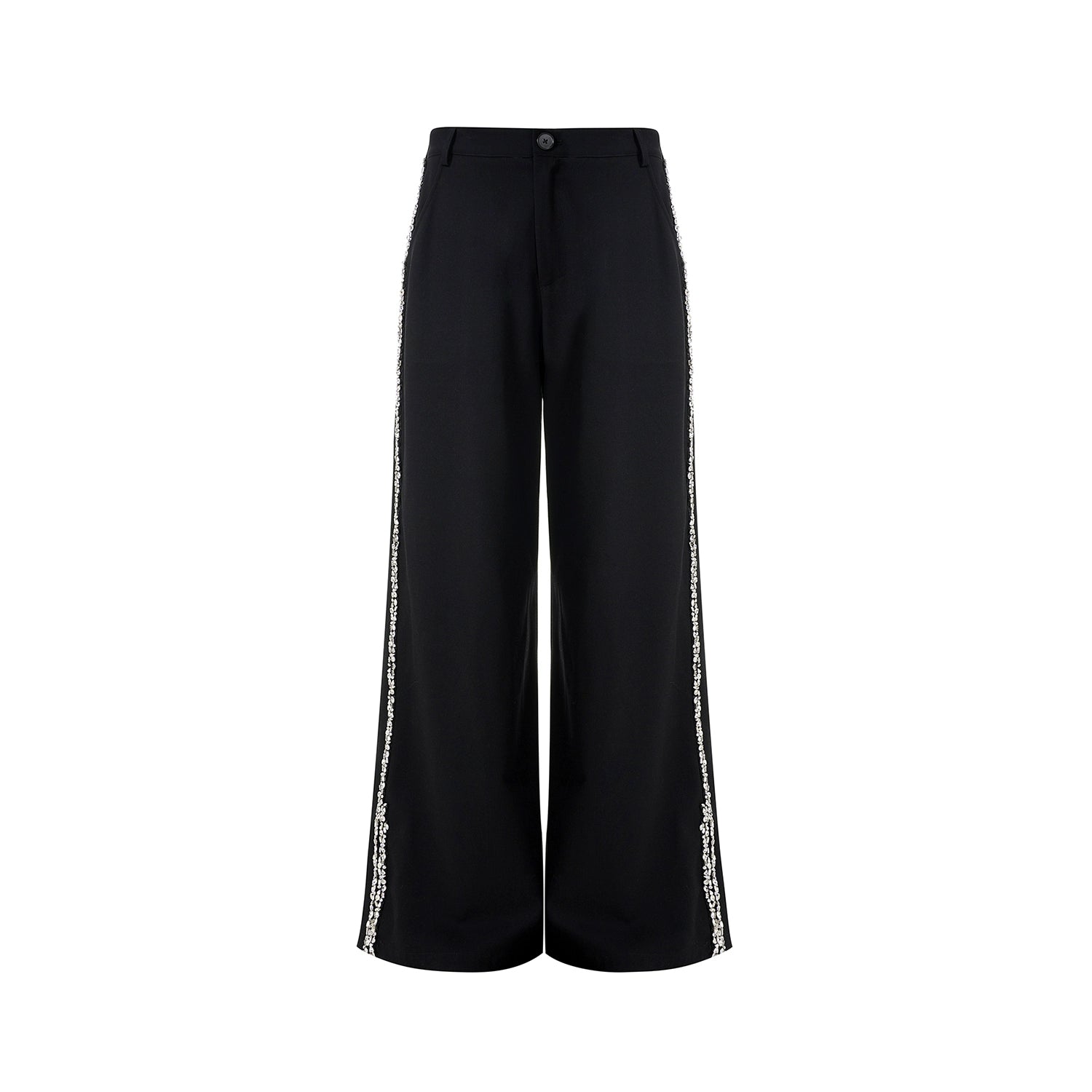 Rhinestone Short Sleeve Shirt Jacket & Rhinestone Slit Flare Trousers Setup WN16581