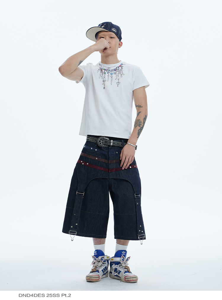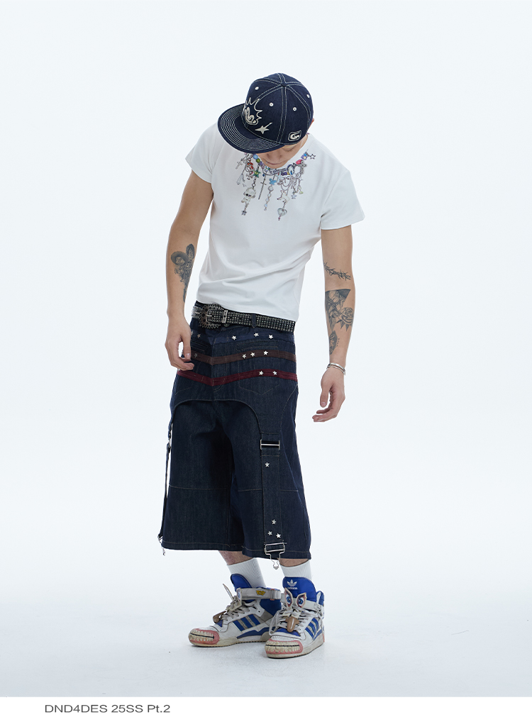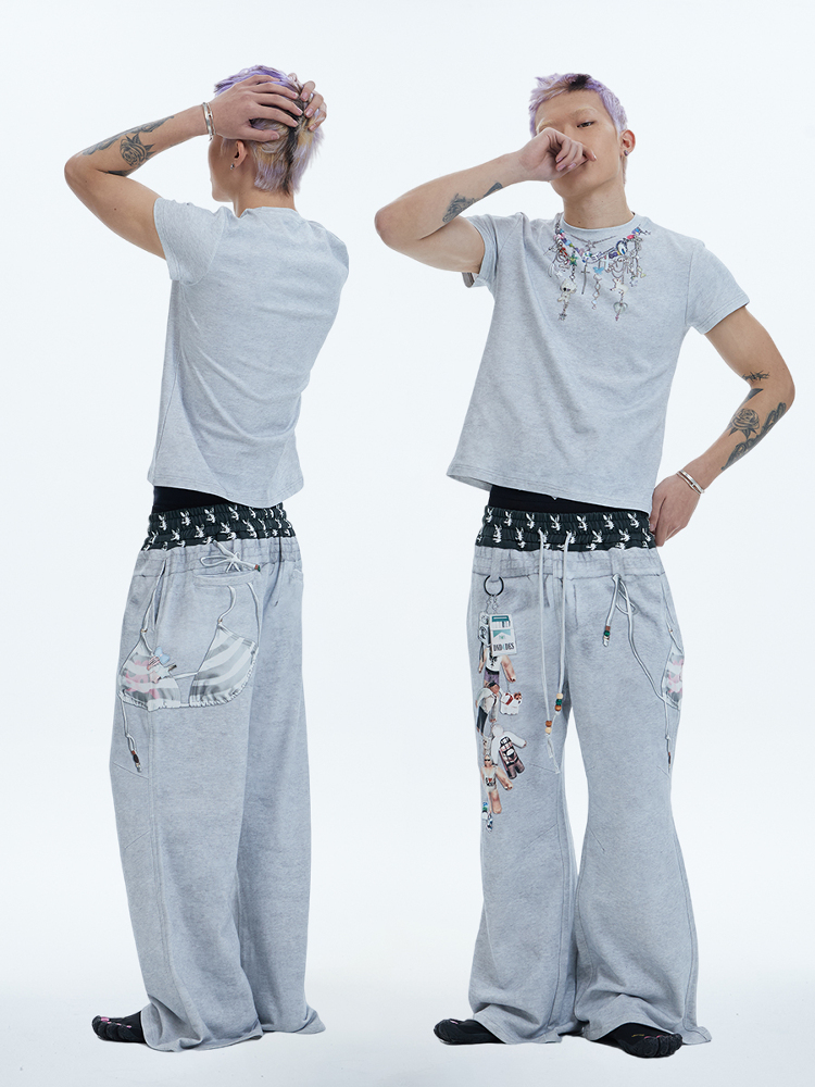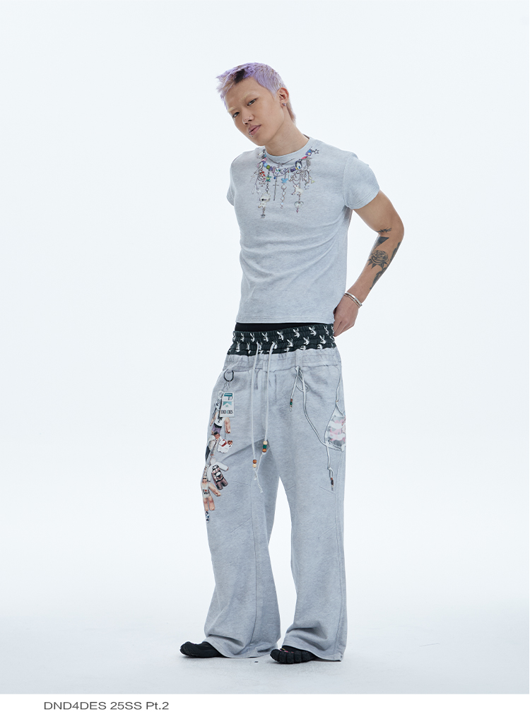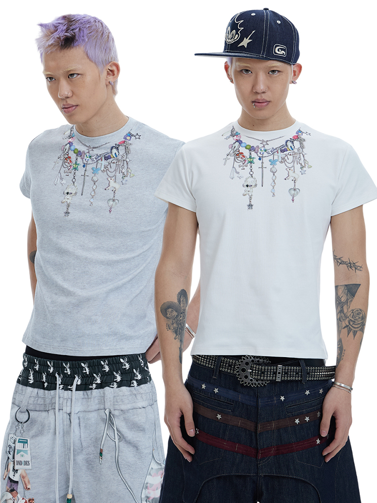 Cartoon Chain Print Stretch Short Sleeve T-Shirt WN17077