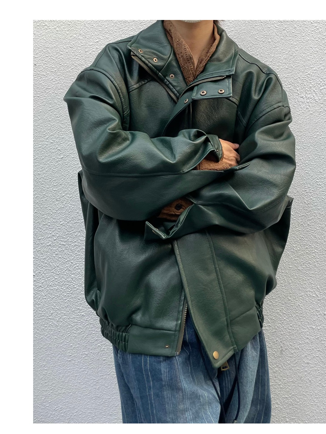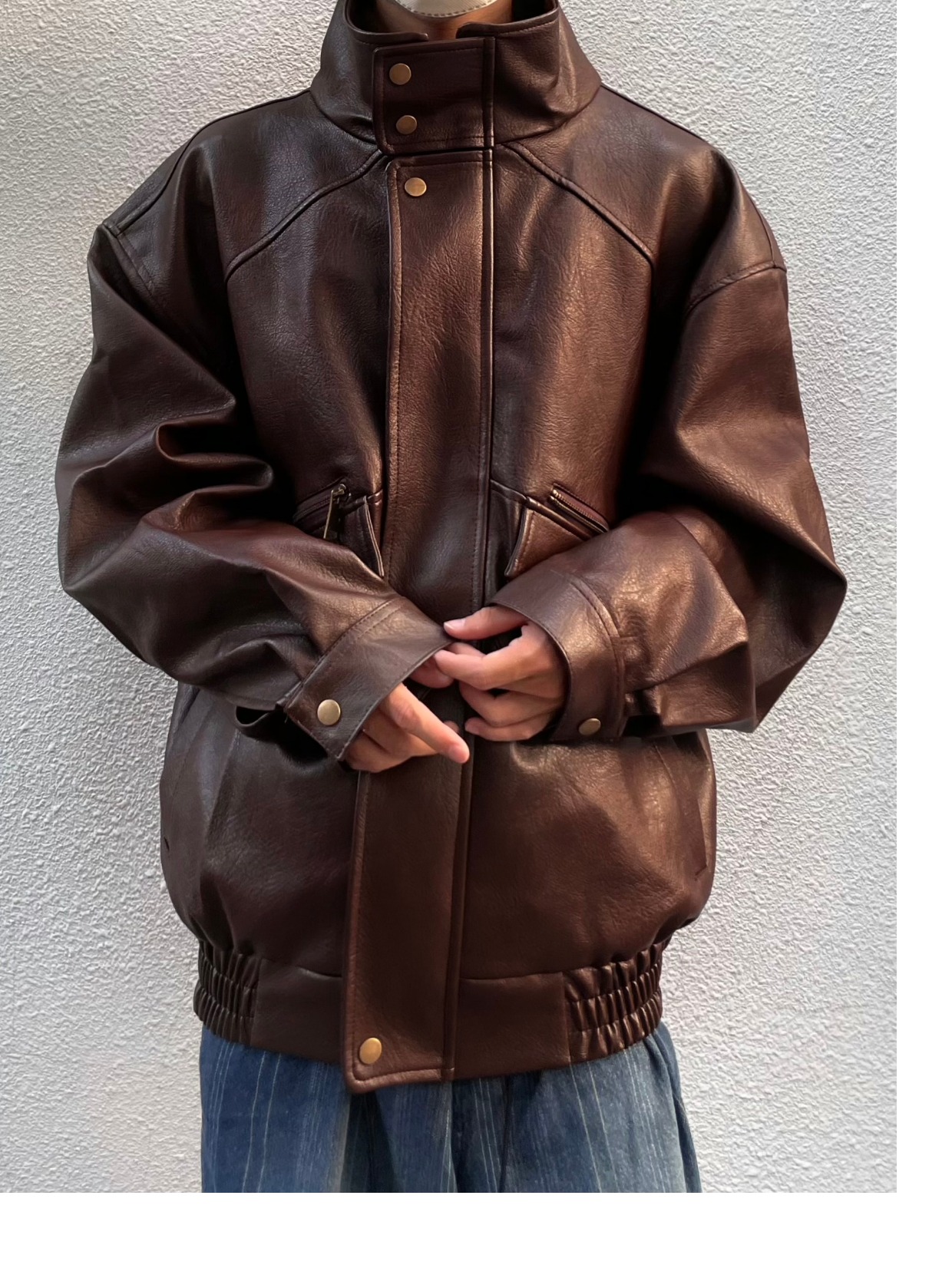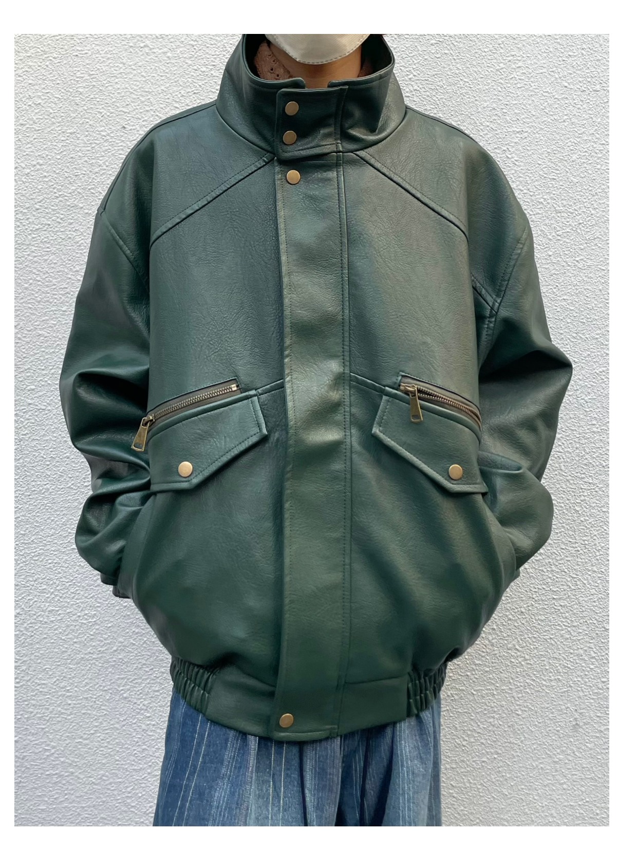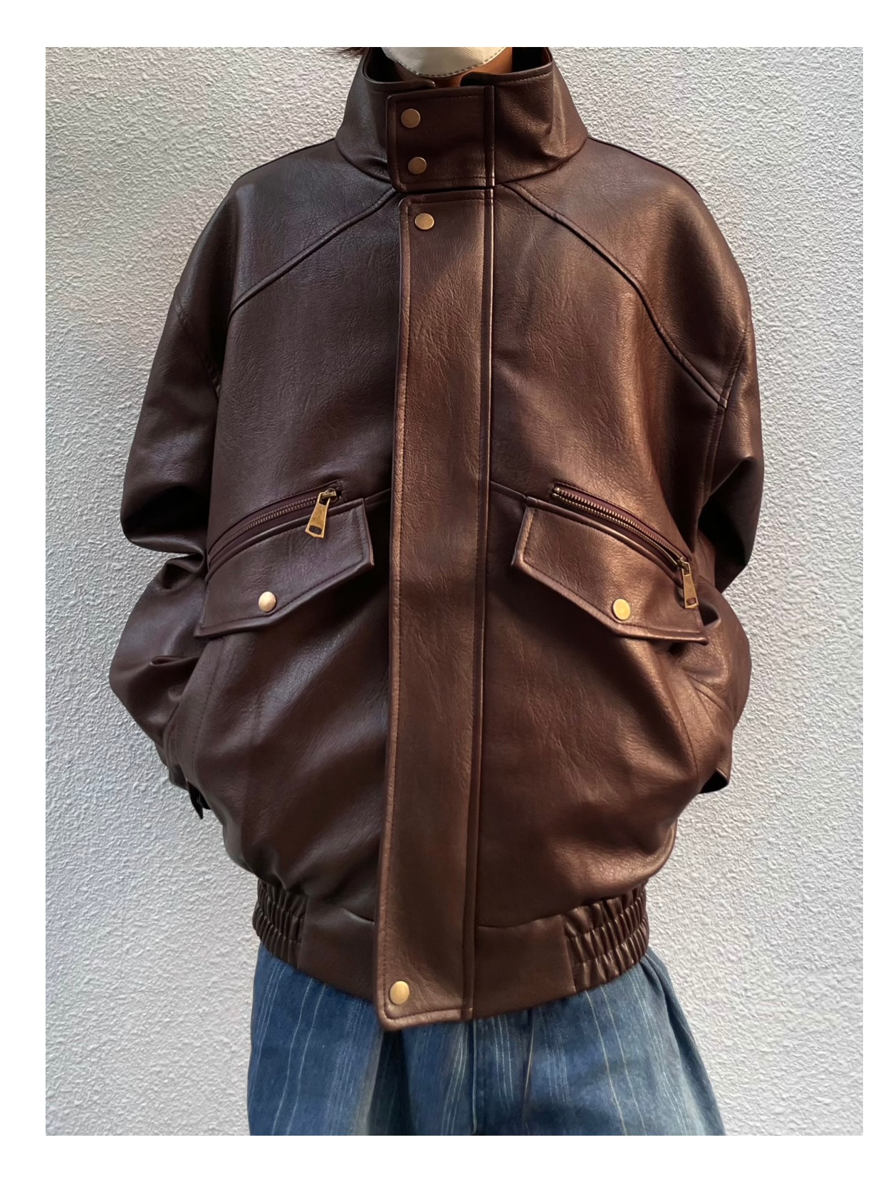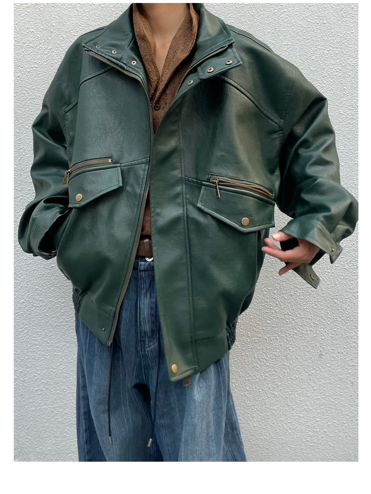 Stand Neck Oversize Windproof PU Leather Jacket WN19987