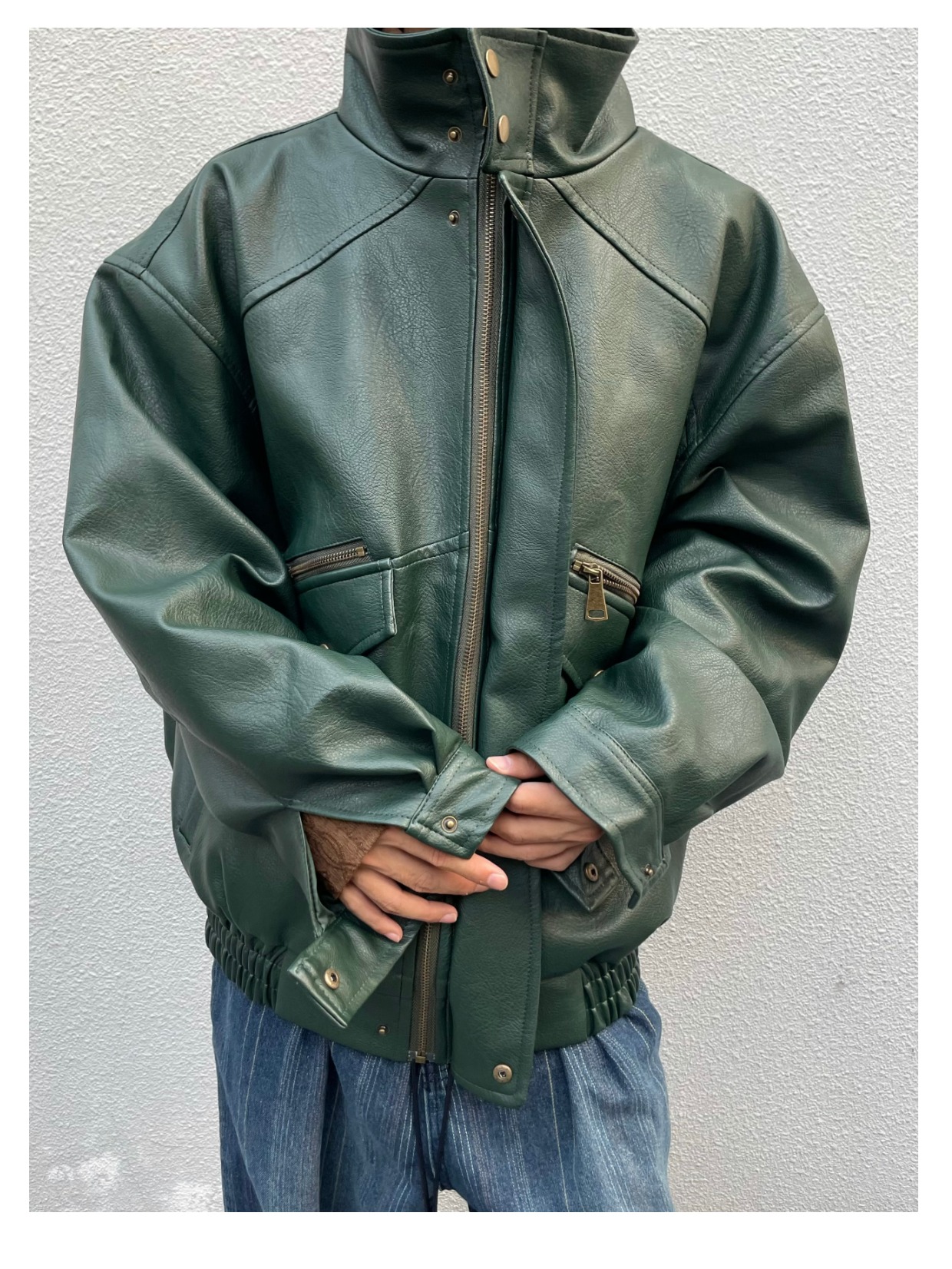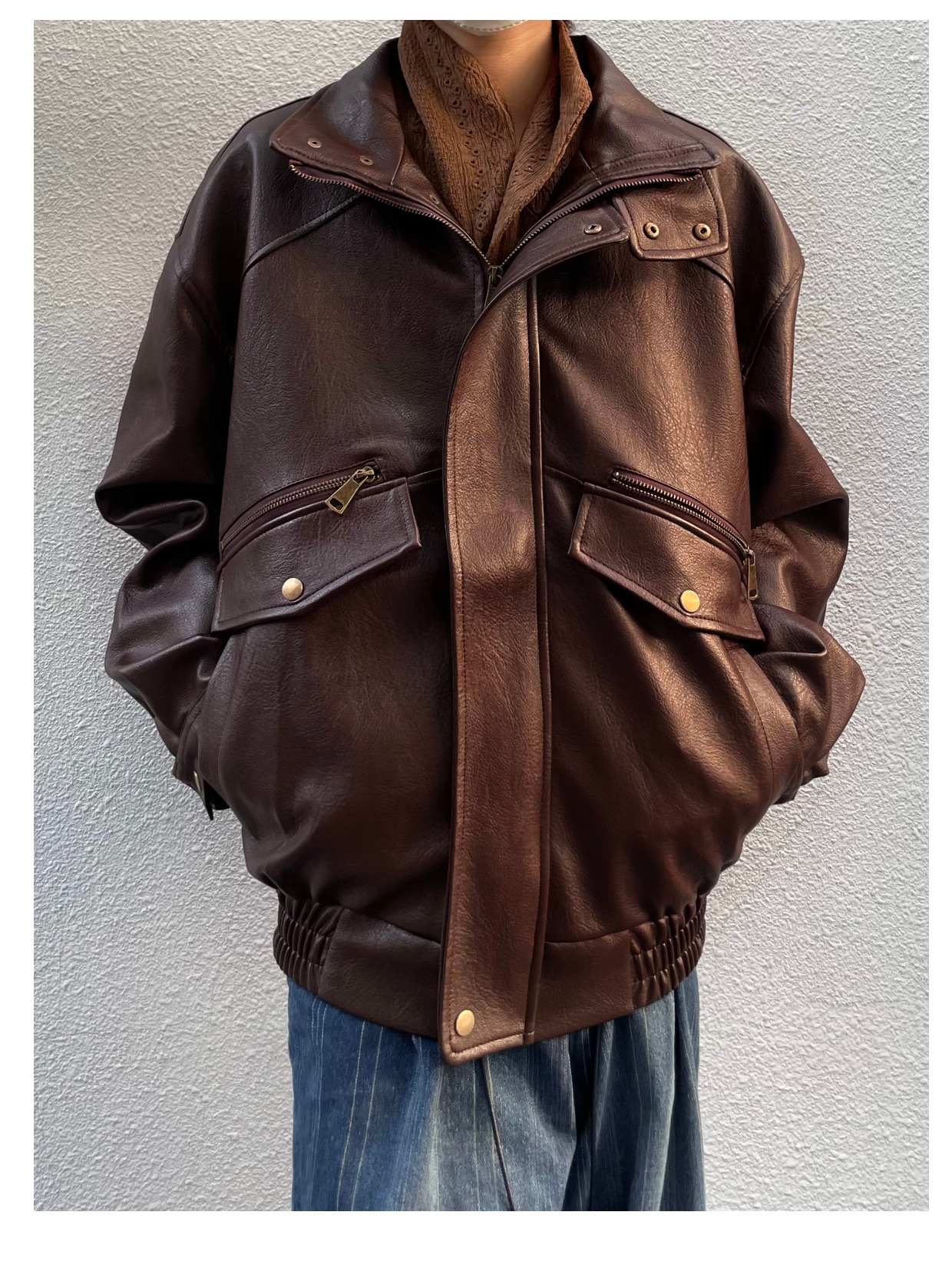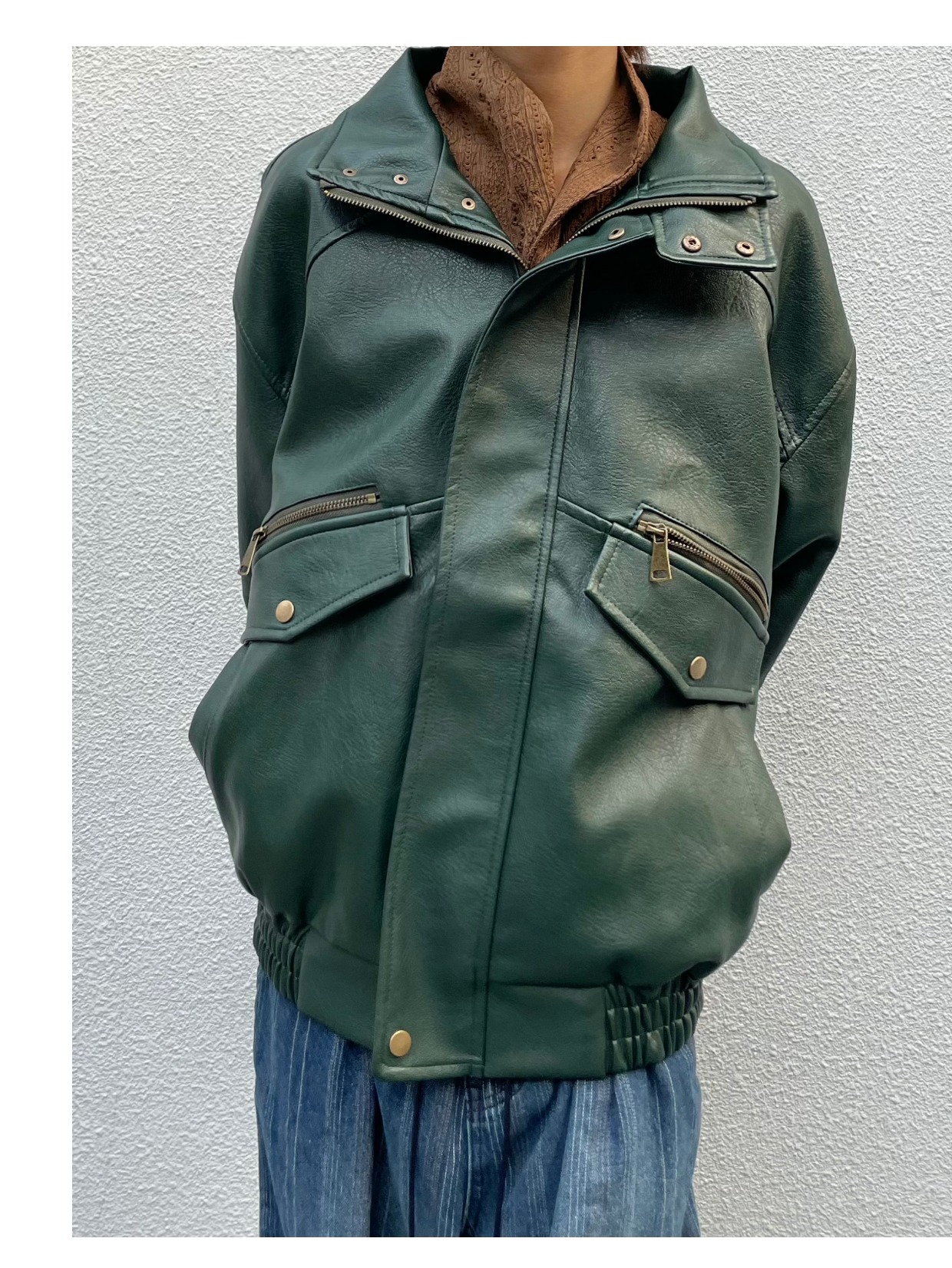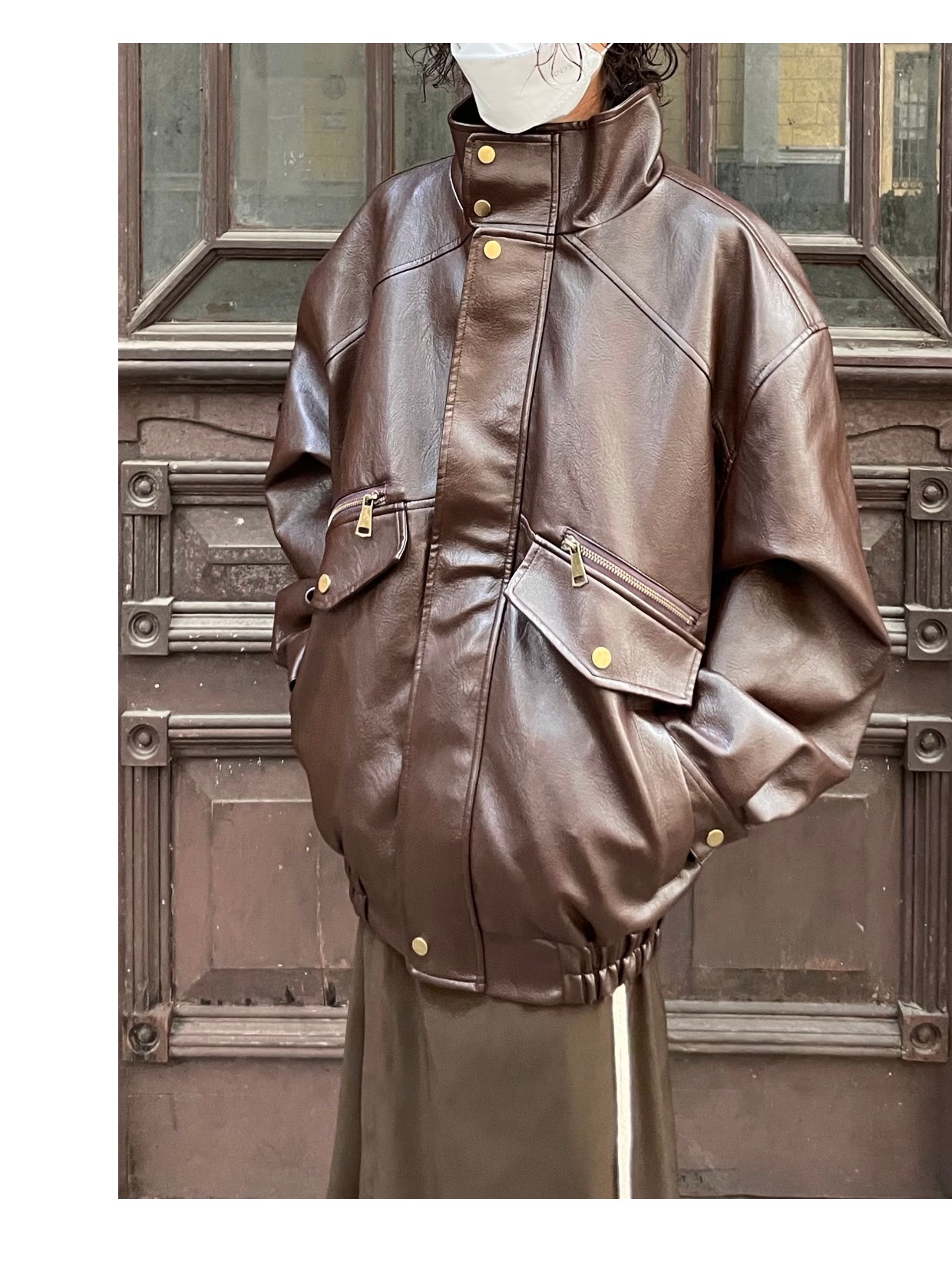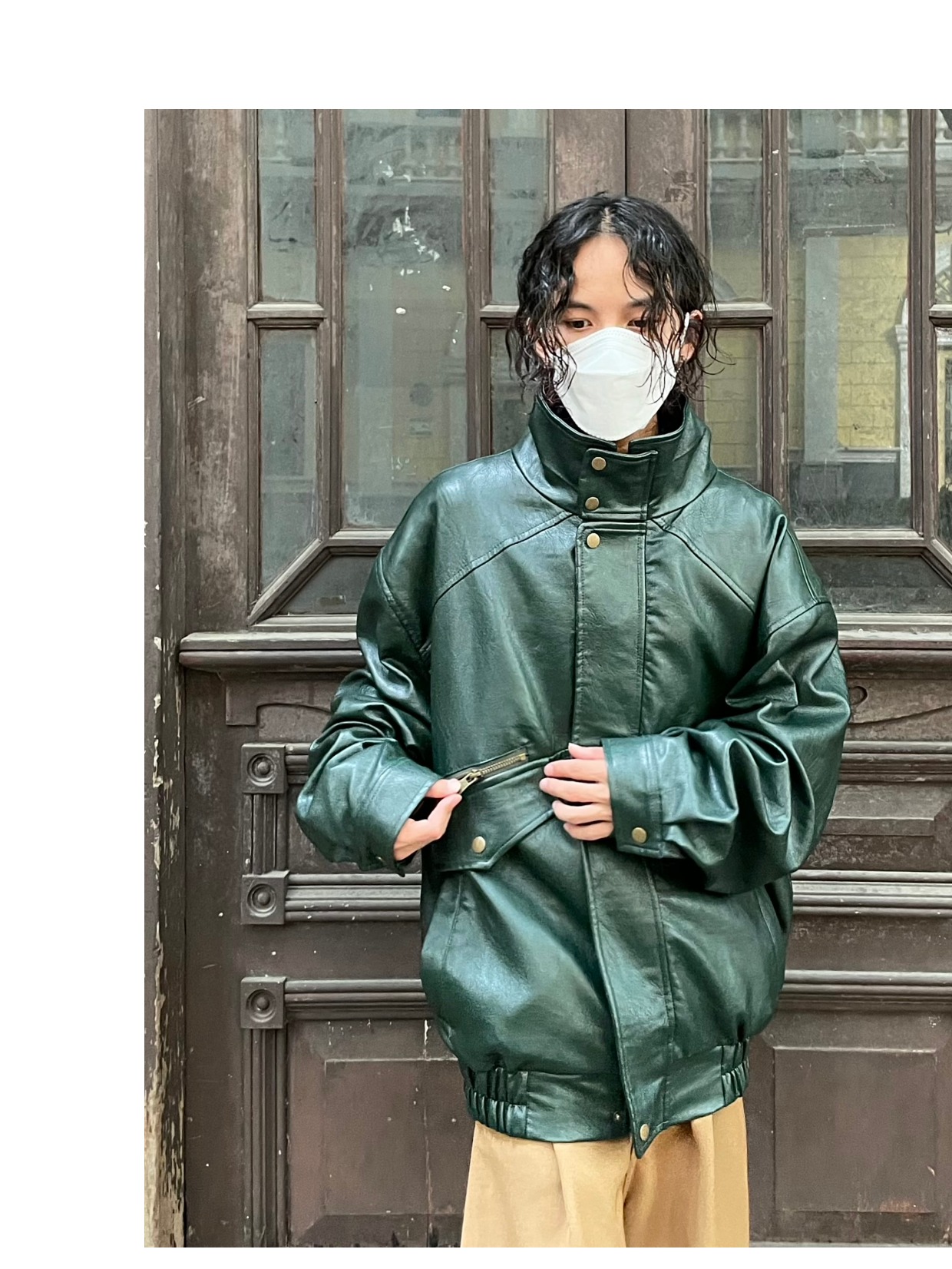 Stand Neck Oversize Windproof PU Leather Jacket WN19987
