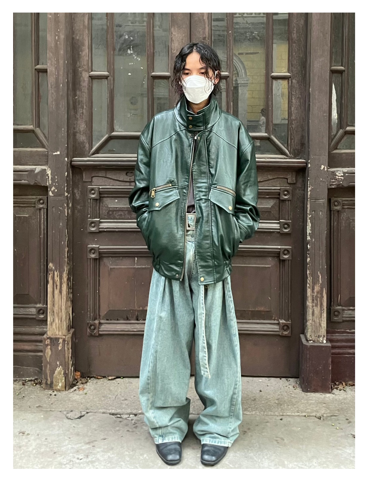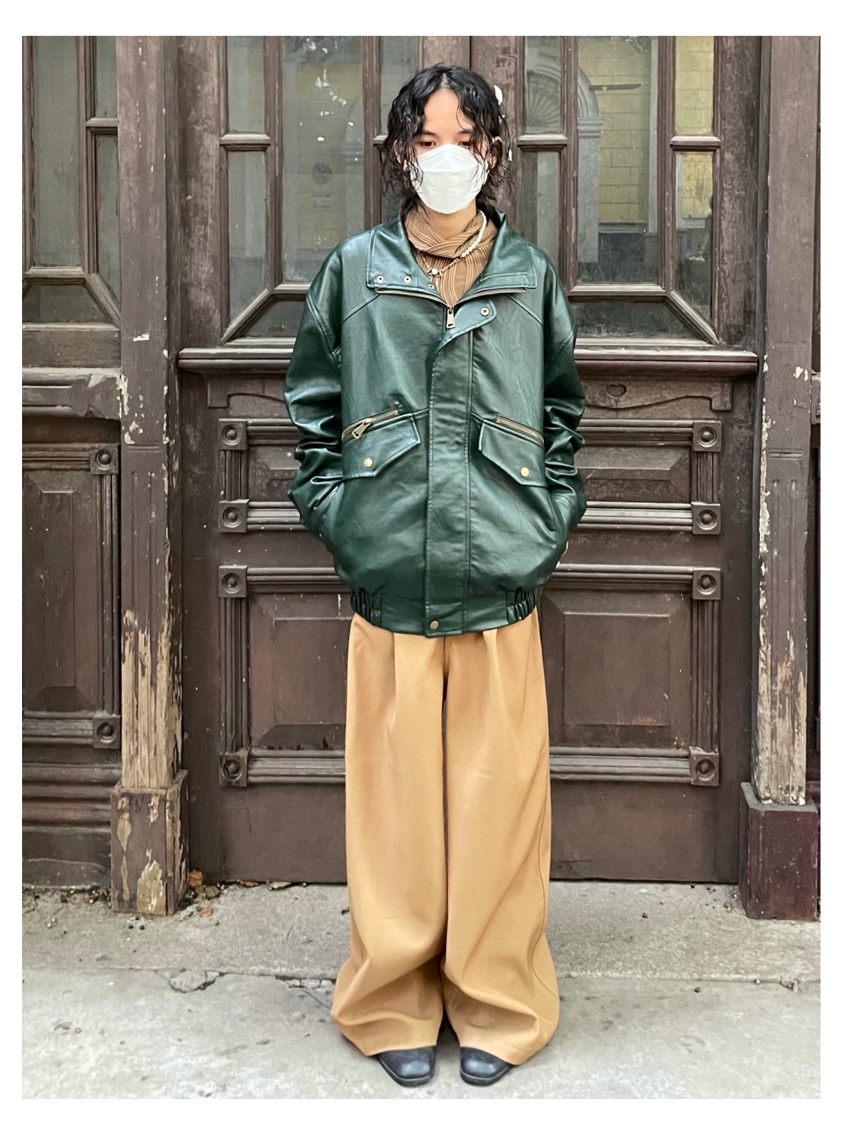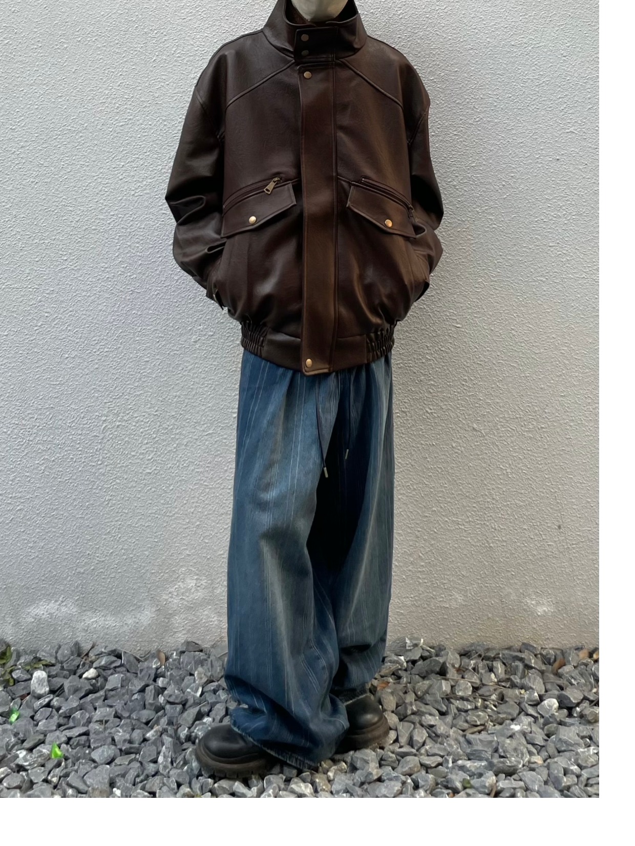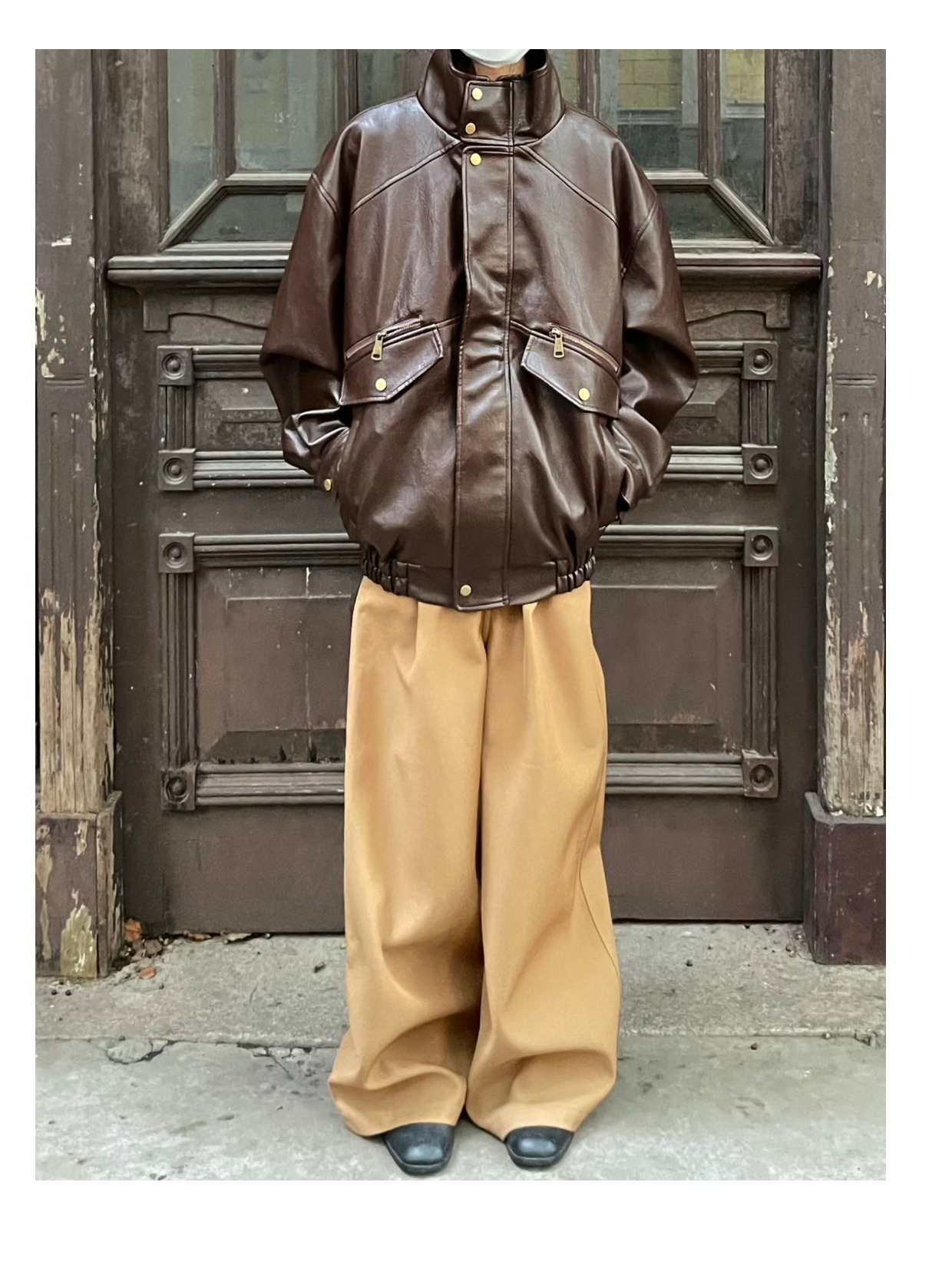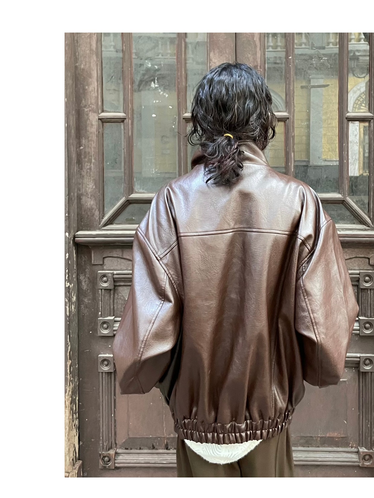 Stand Neck Oversize Windproof PU Leather Jacket WN19987