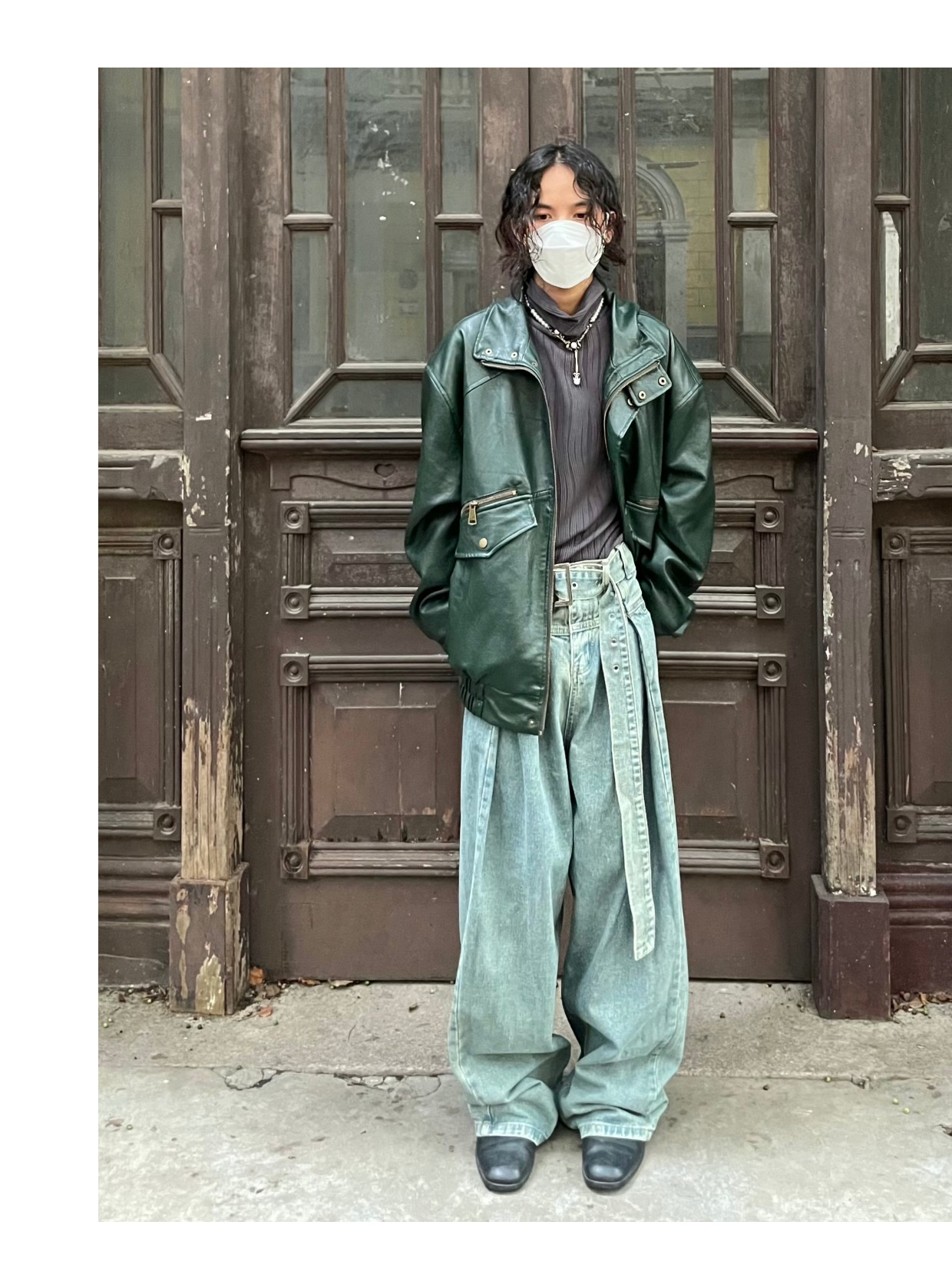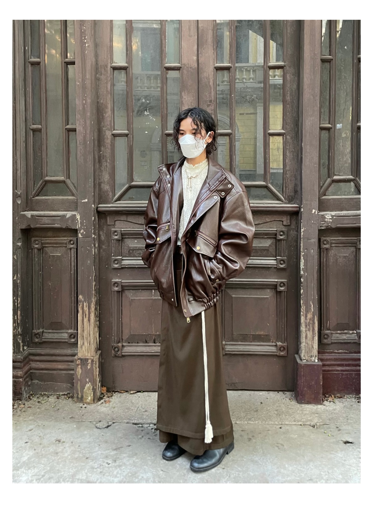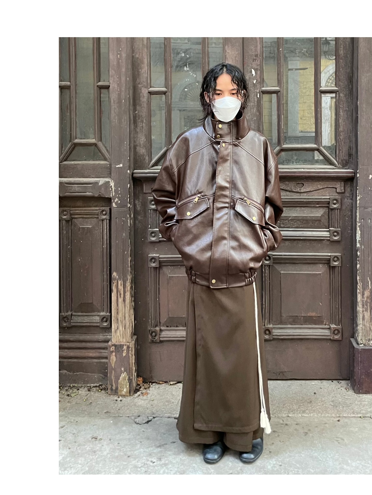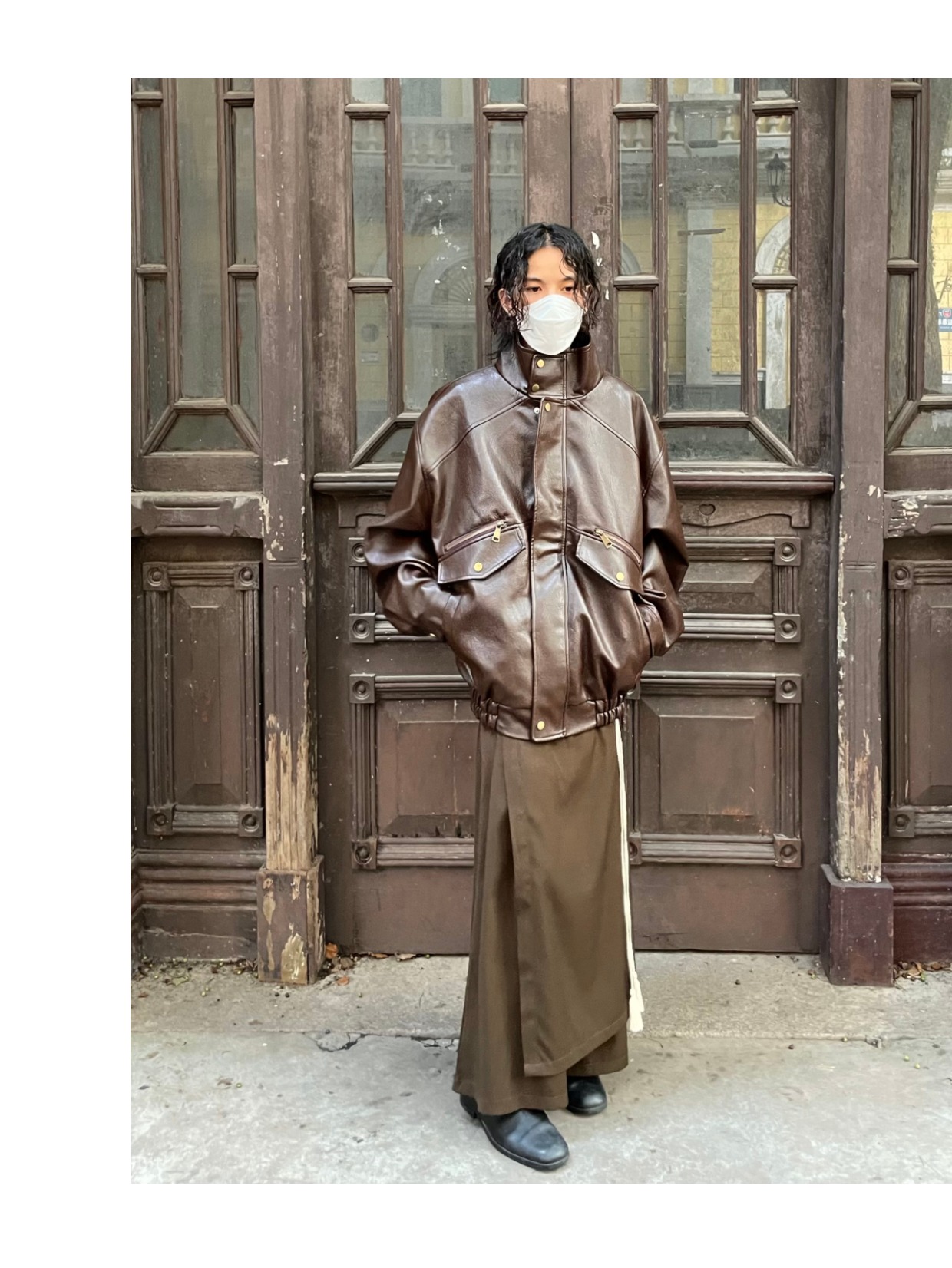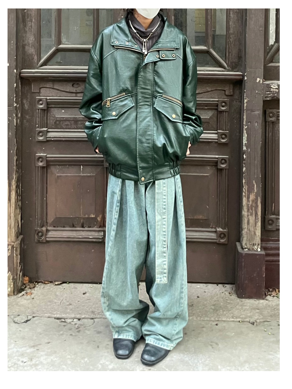 Stand Neck Oversize Windproof PU Leather Jacket WN19987