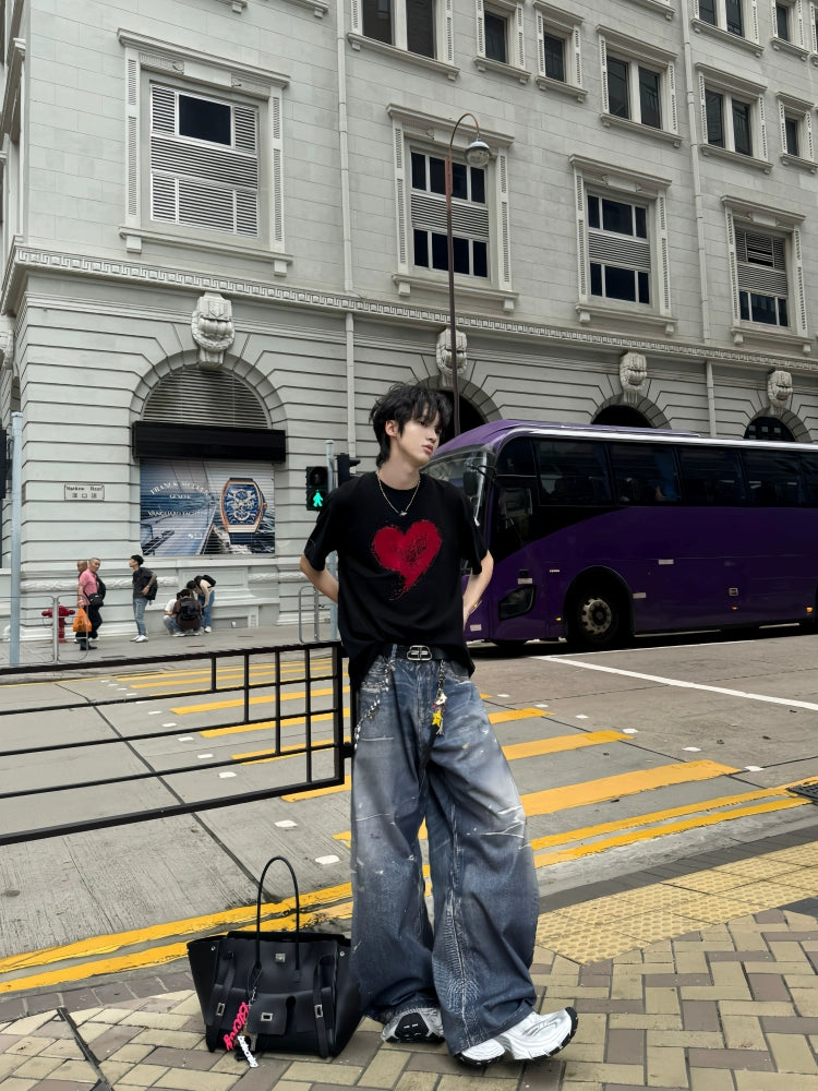3D Print Wash Wide Leg Denim Jeans WN20741