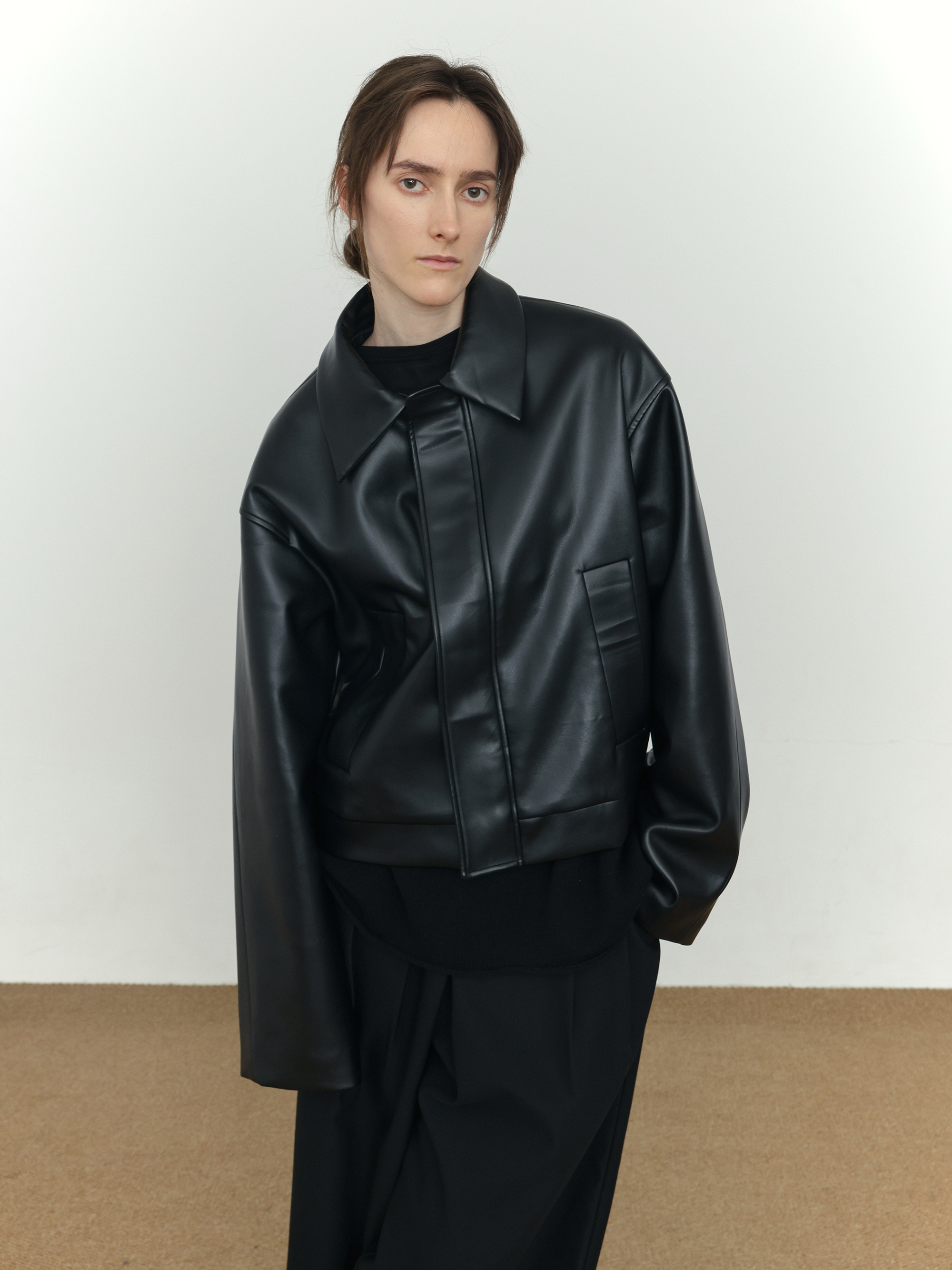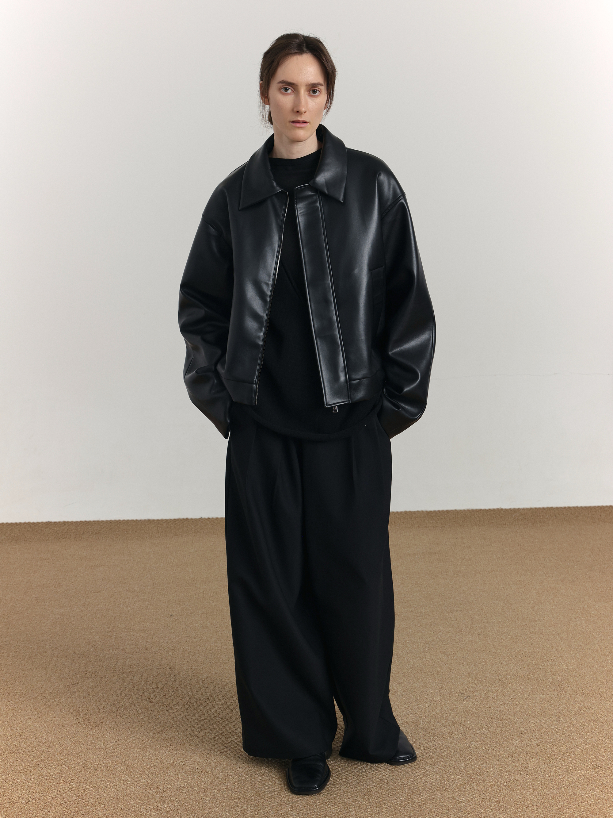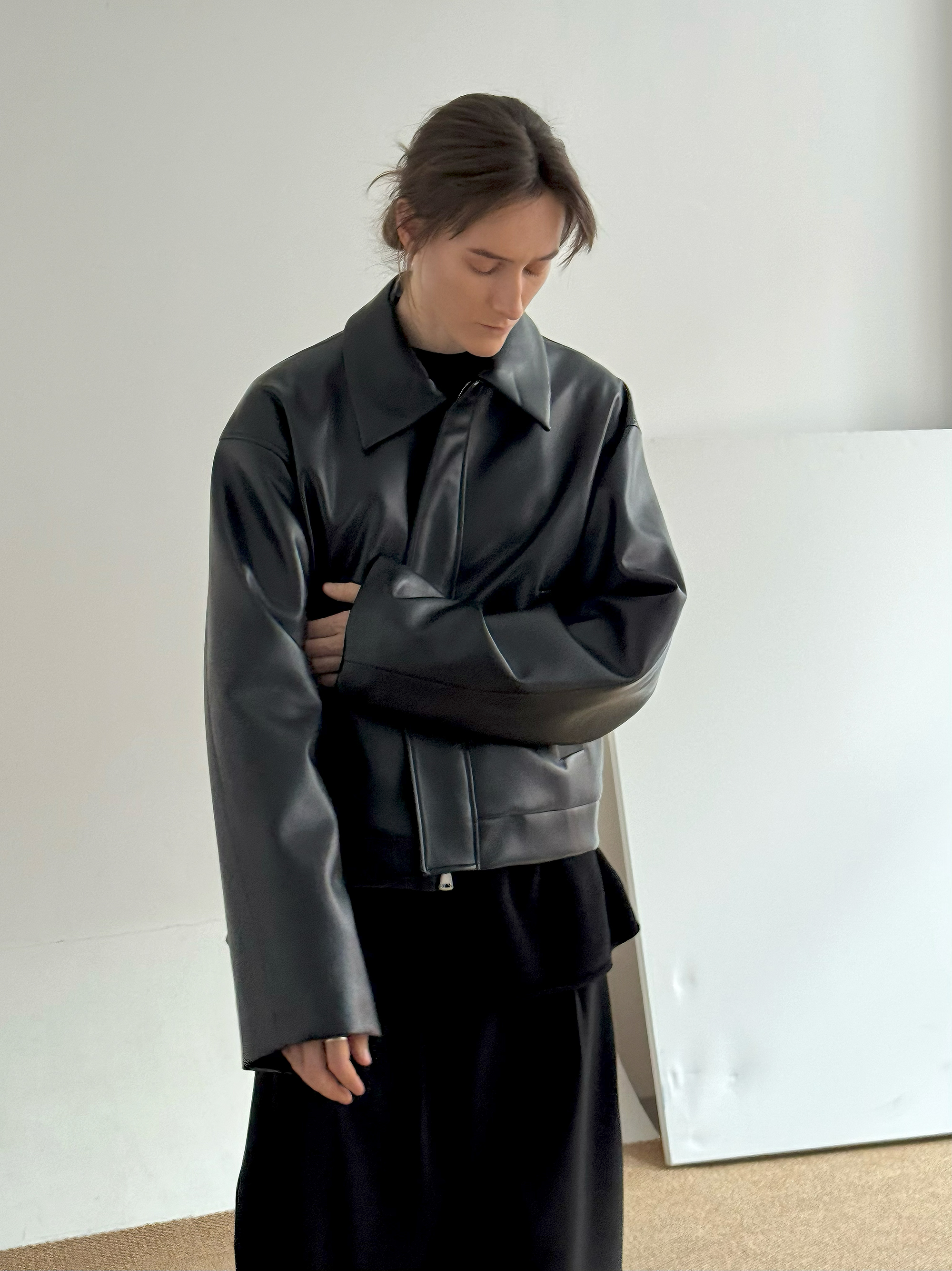 Short PU Leather Zipper jacket WN21514