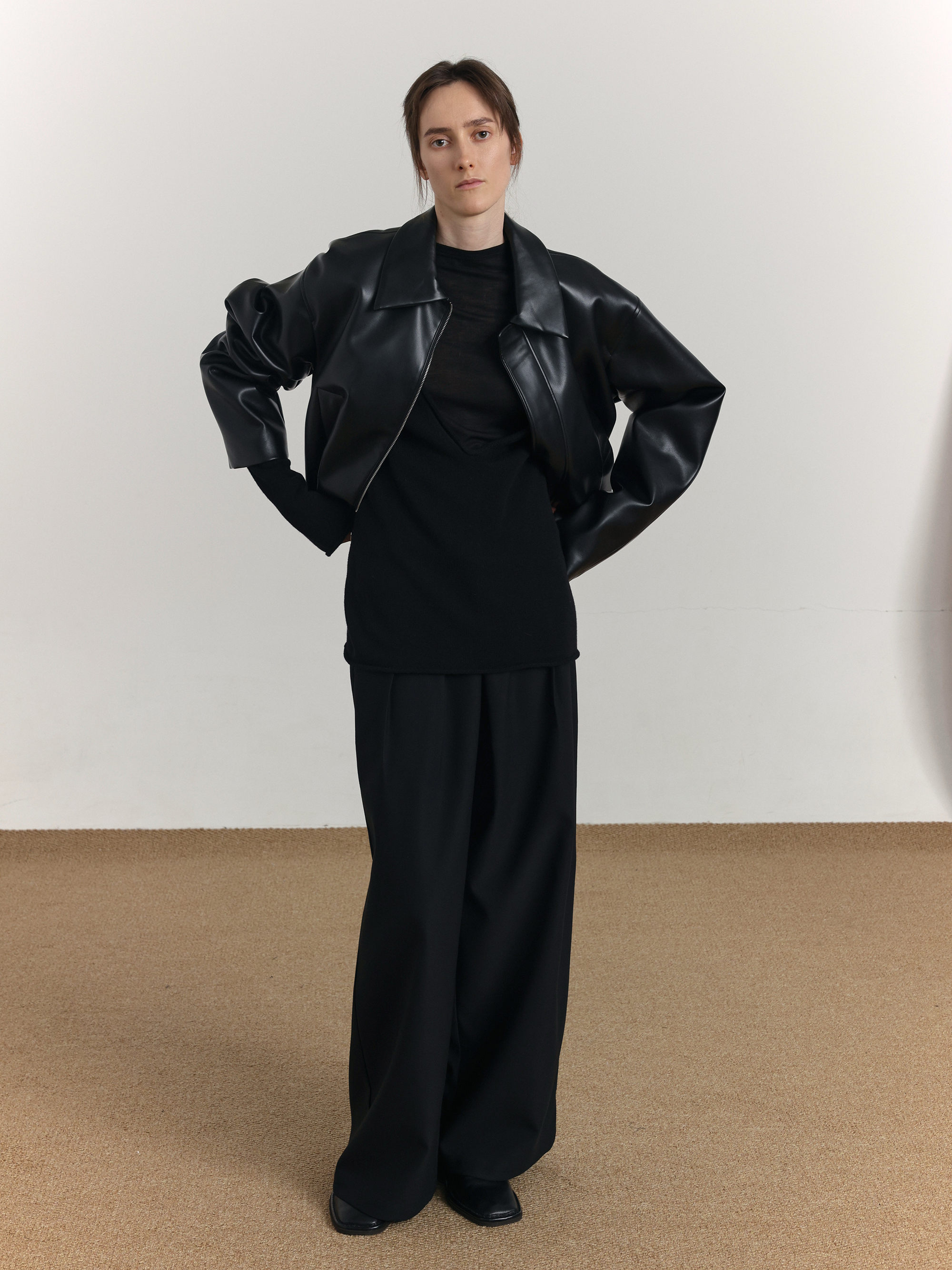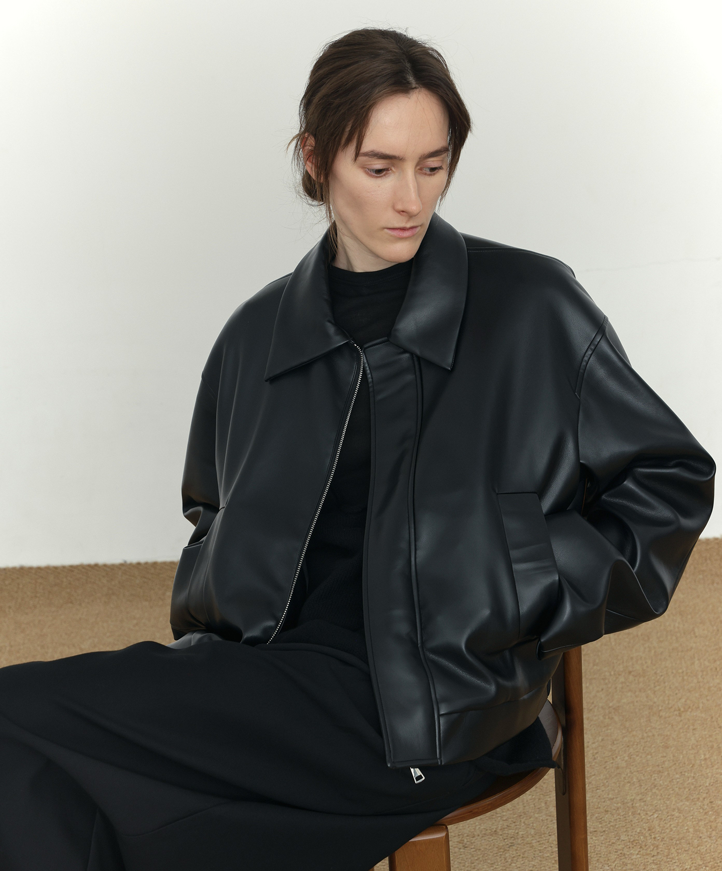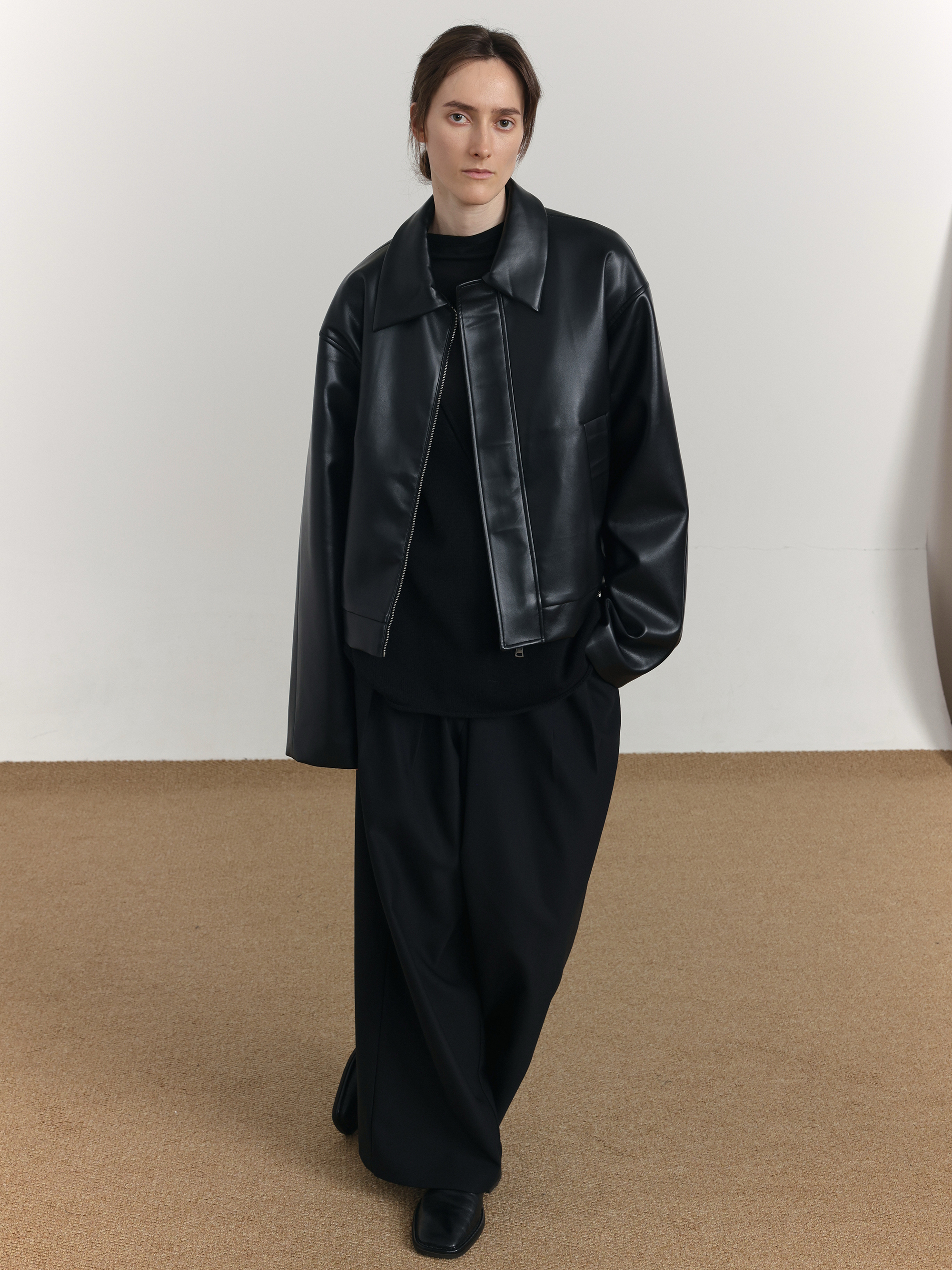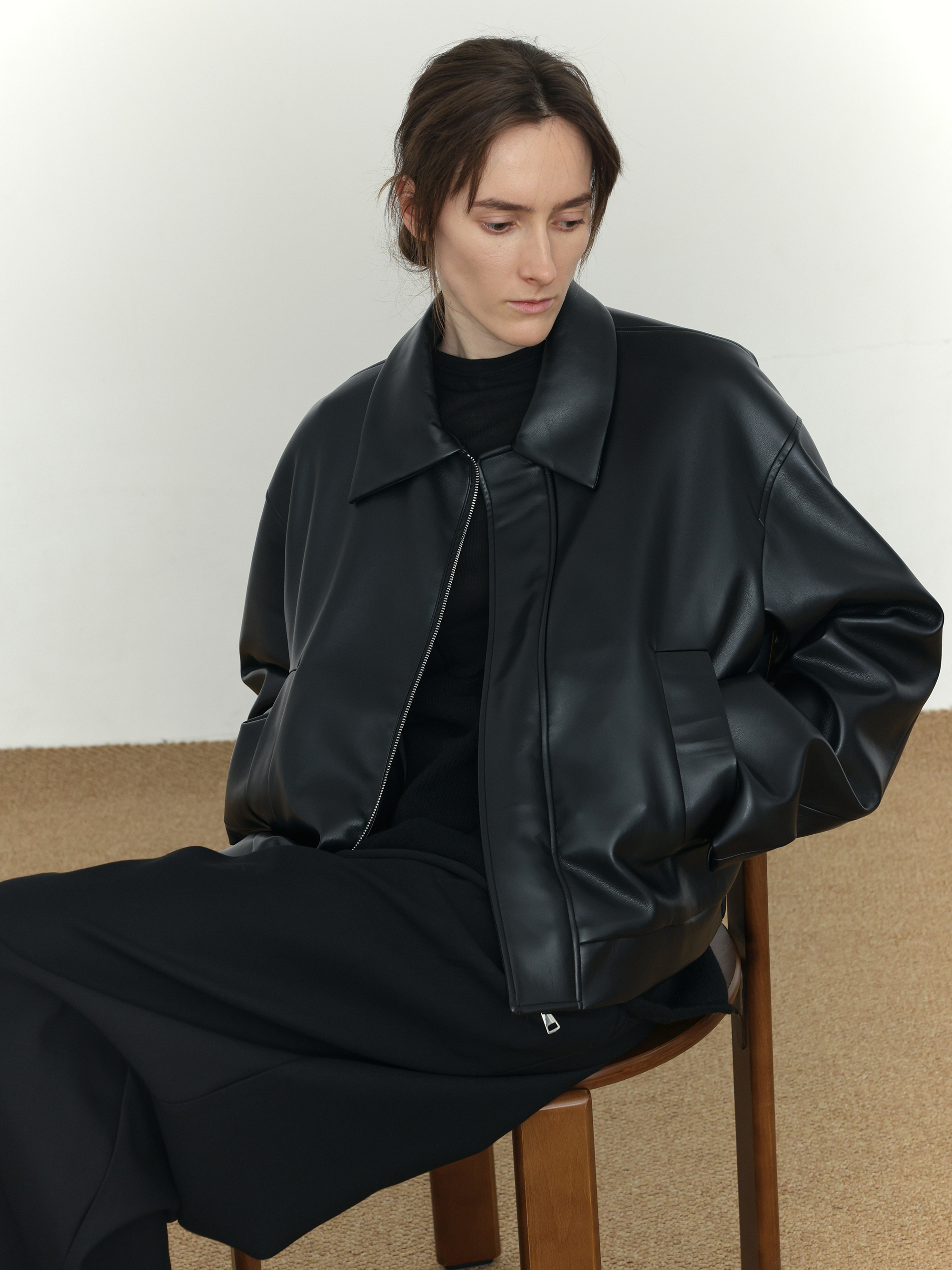 Short PU Leather Zipper jacket WN21514