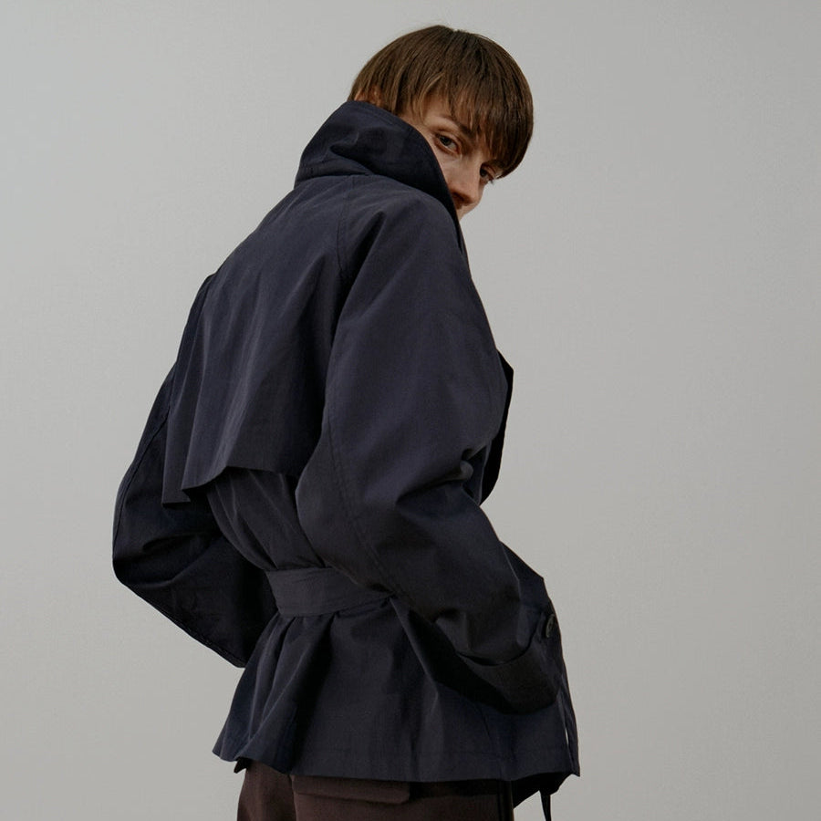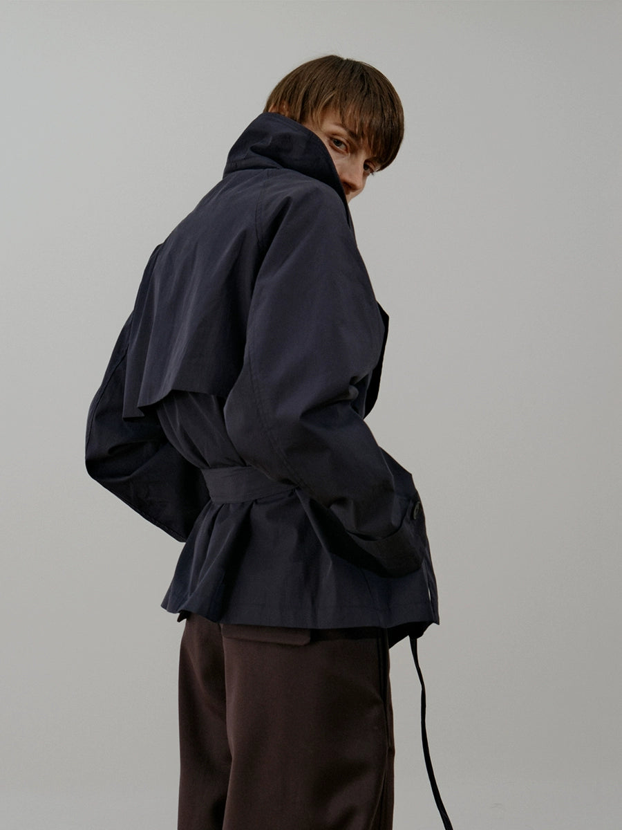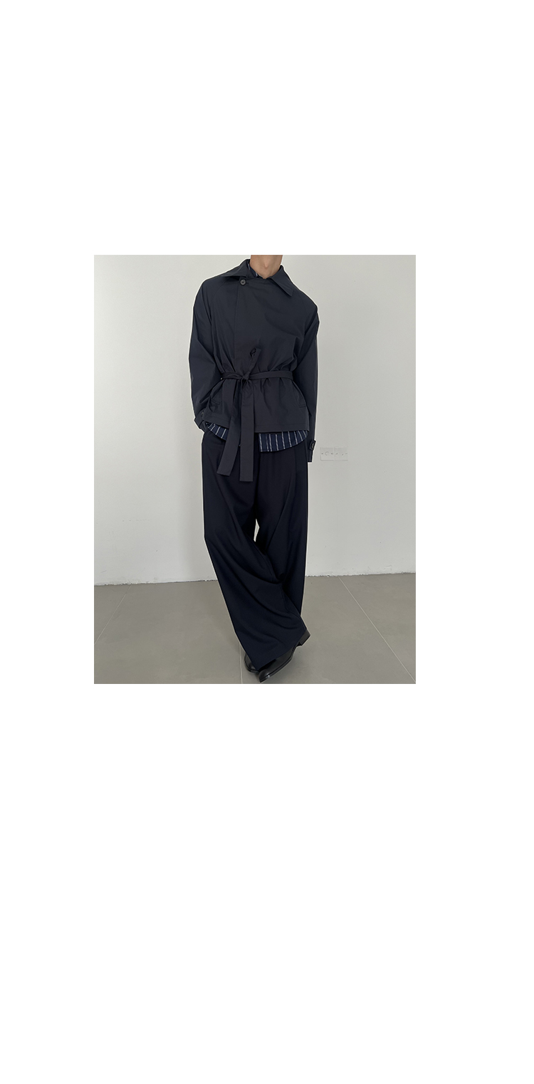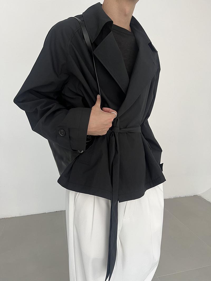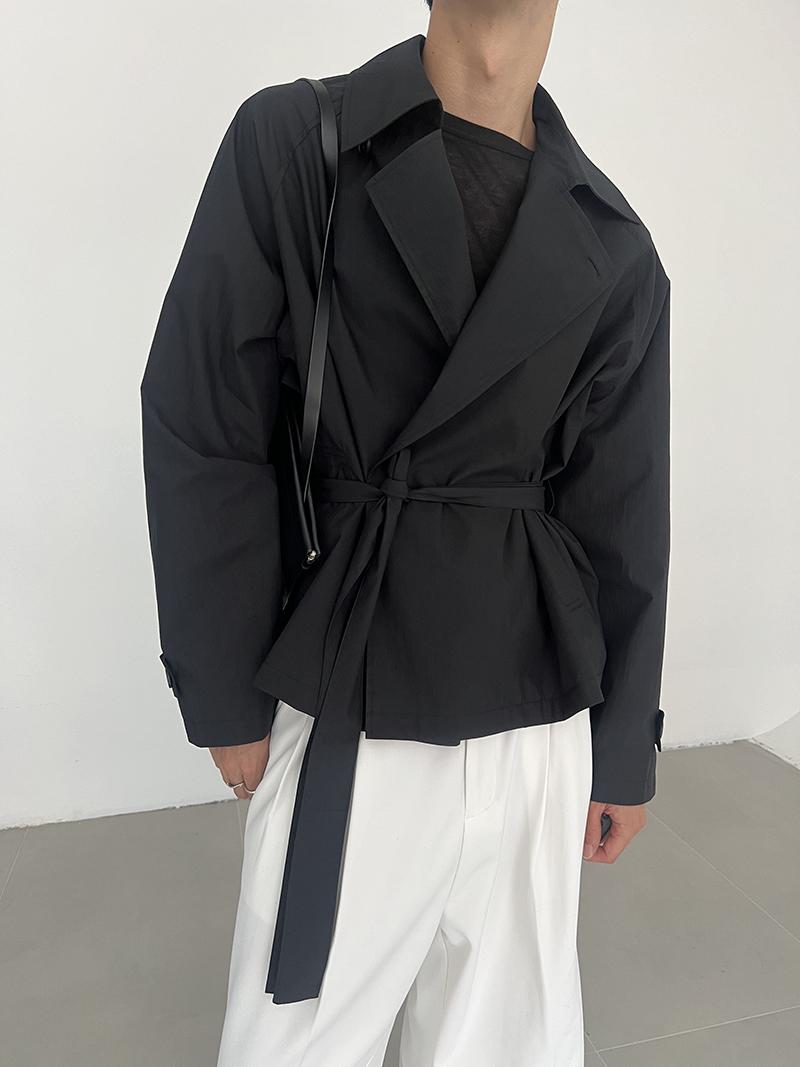 Solid Color Lace-Up Spread Collar Short Jacket WN21589