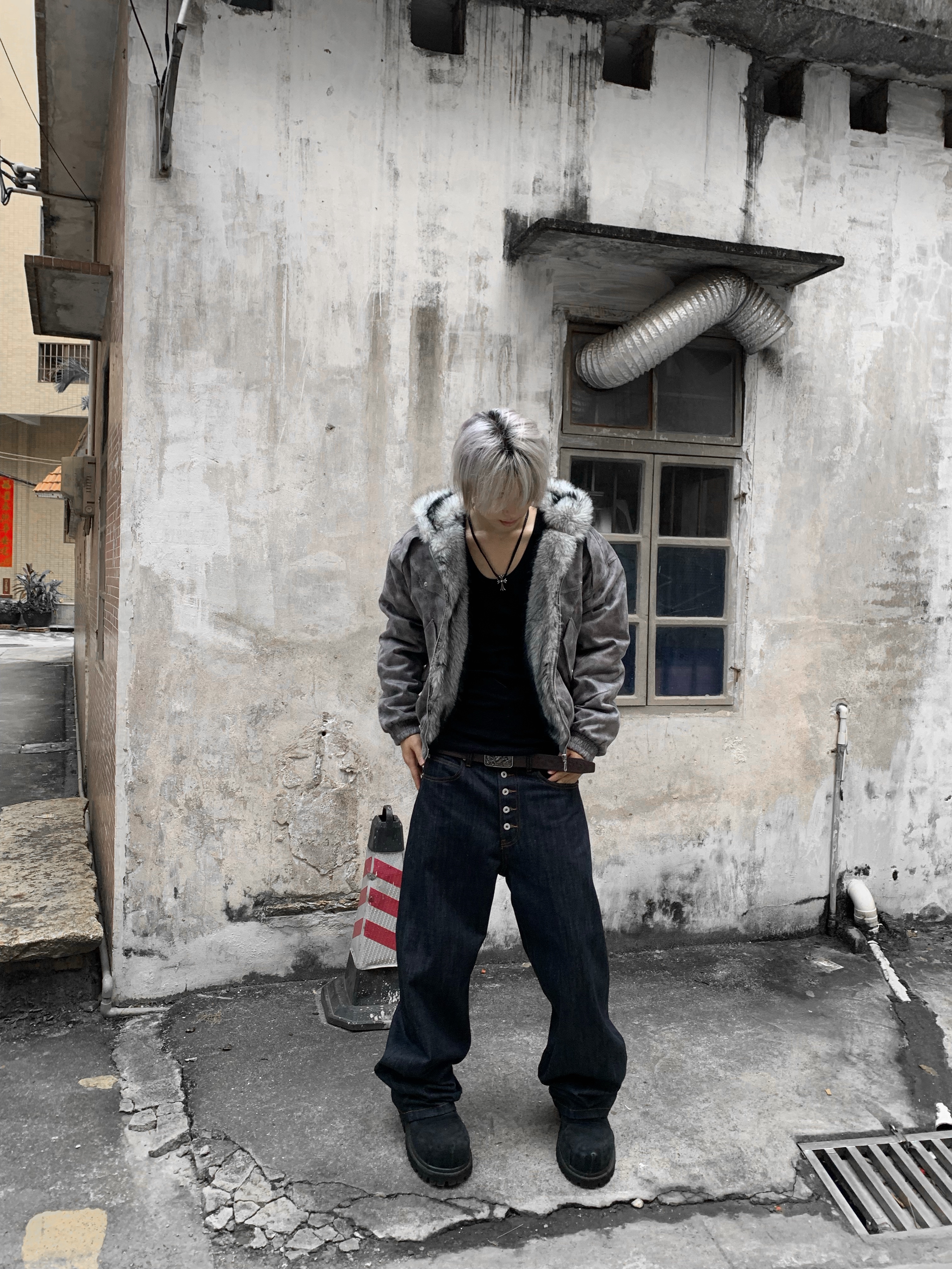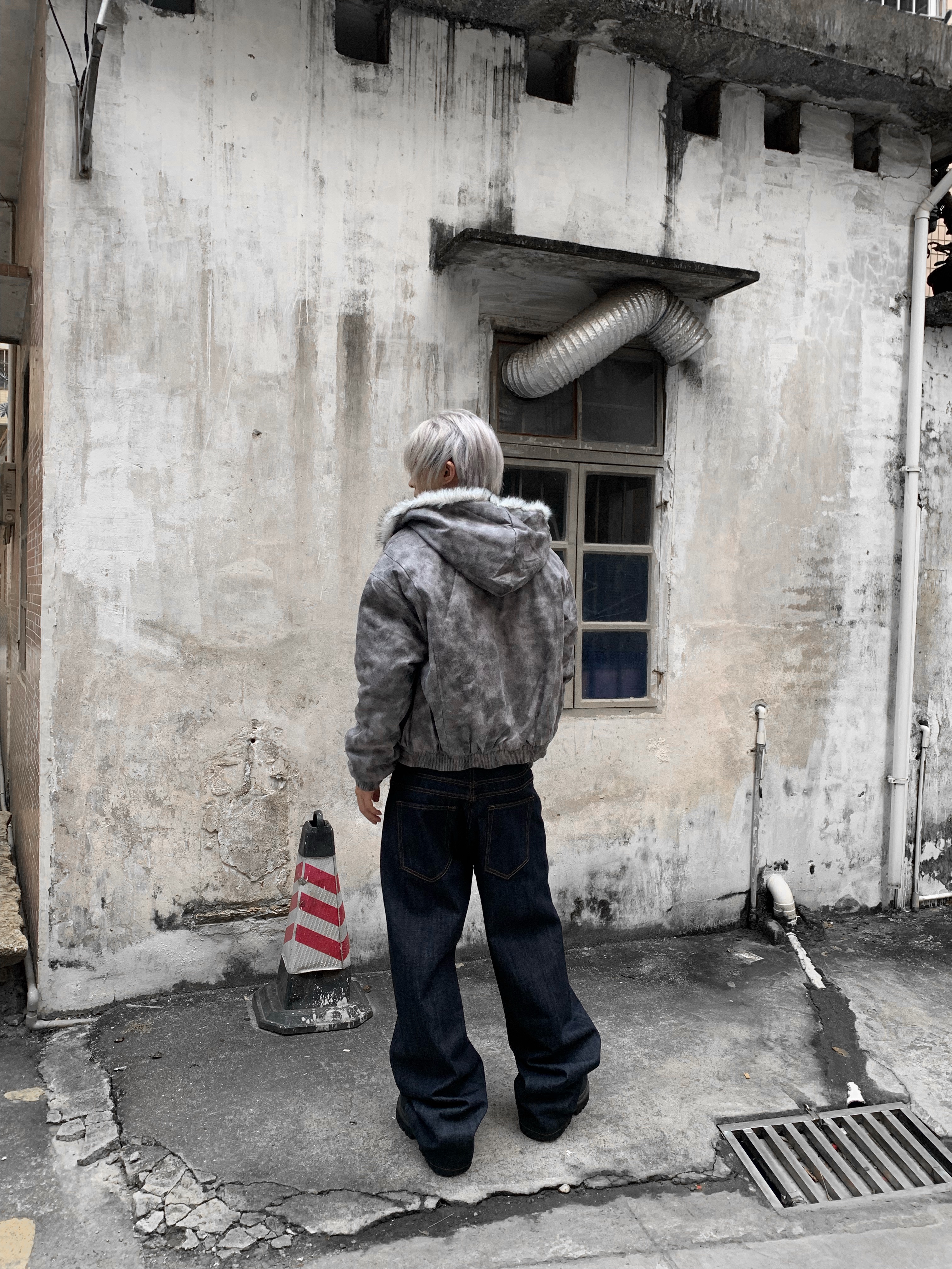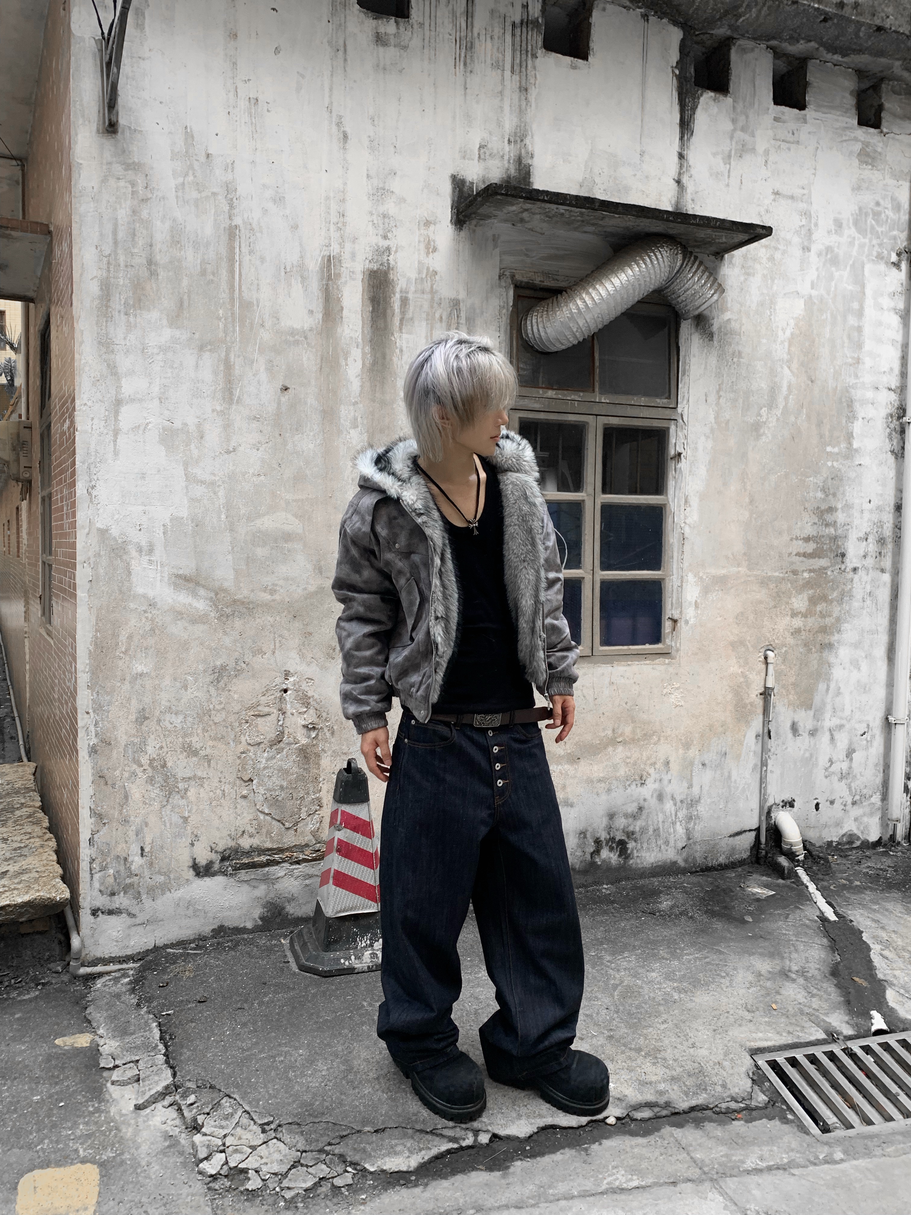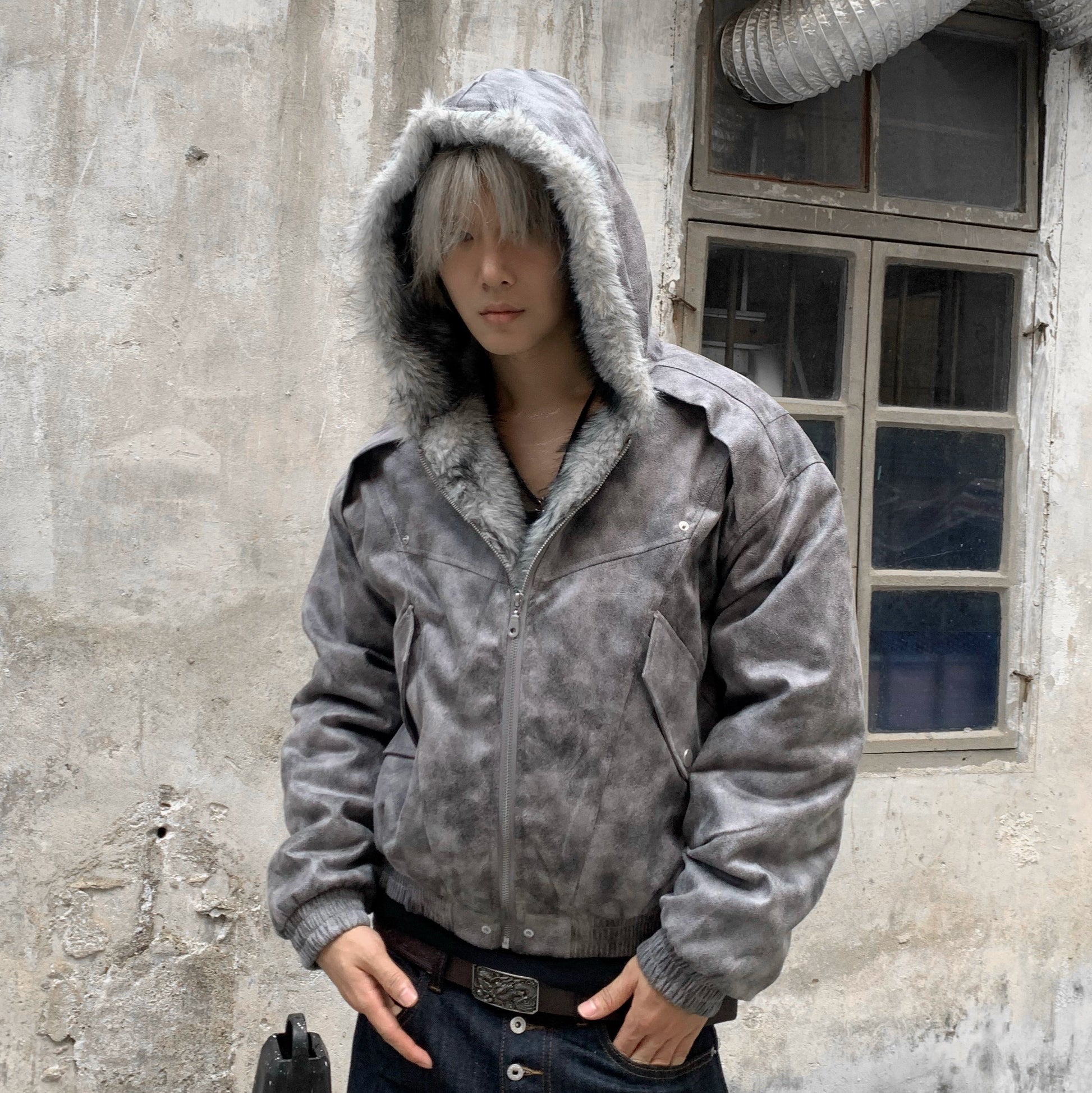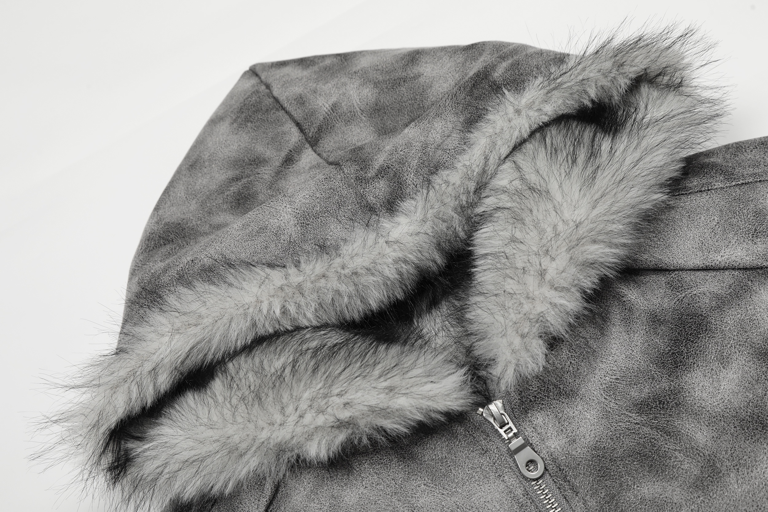 Washed Fake Fur-Collar Hooded Jacket WN22219