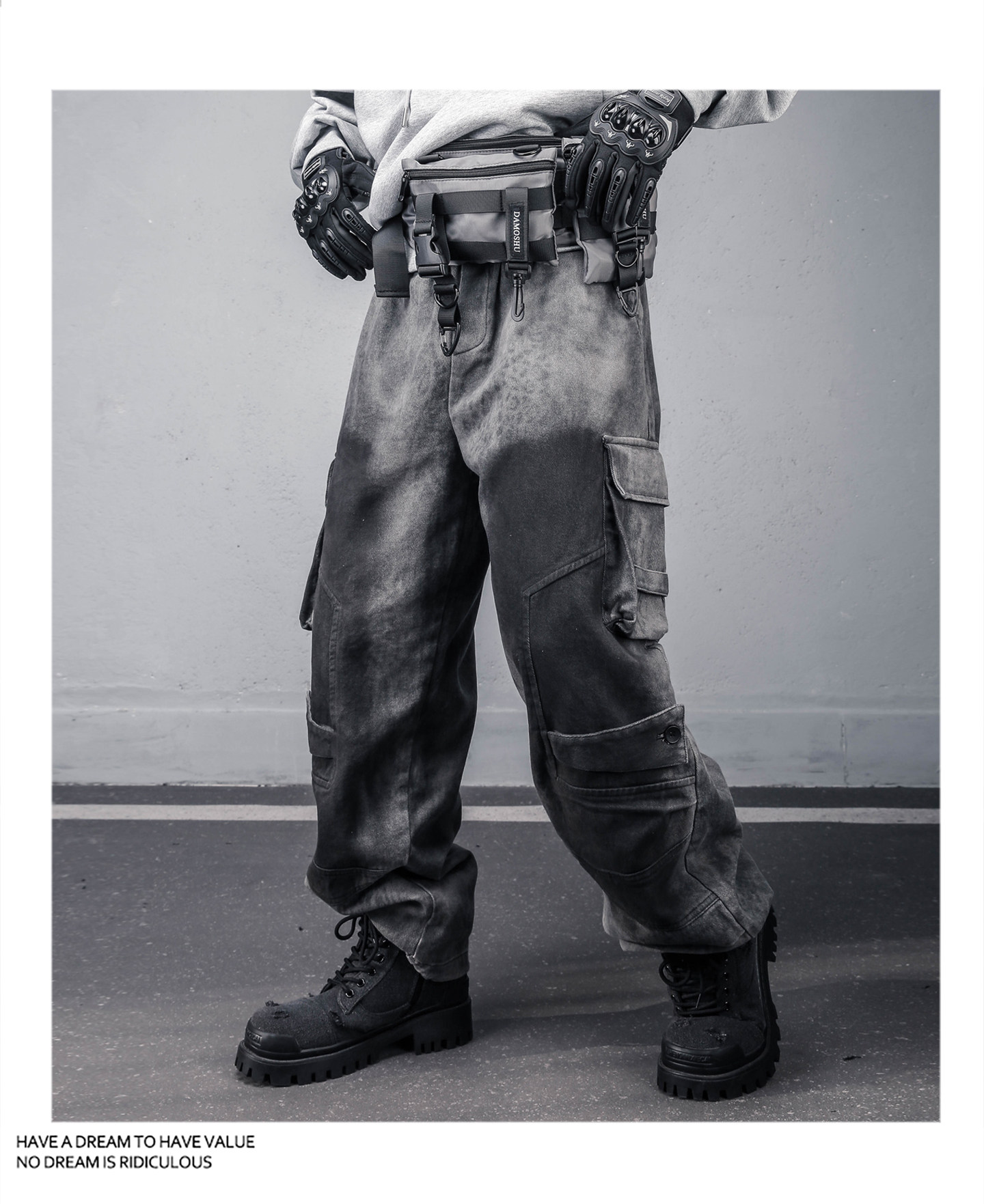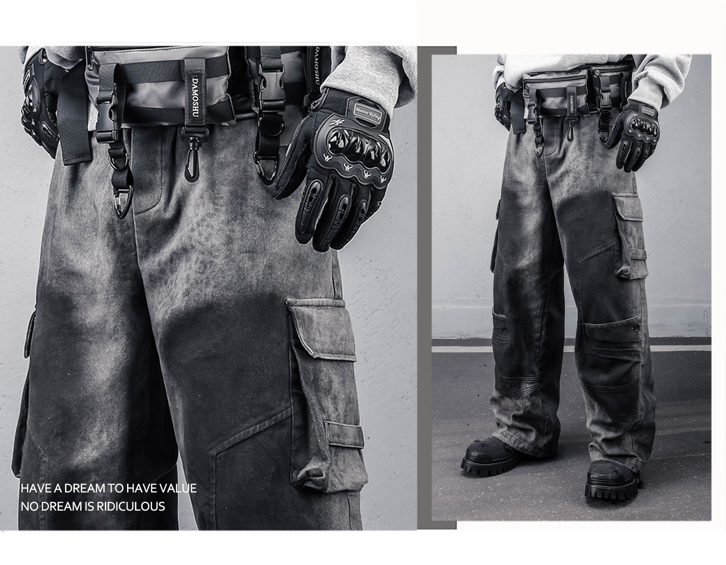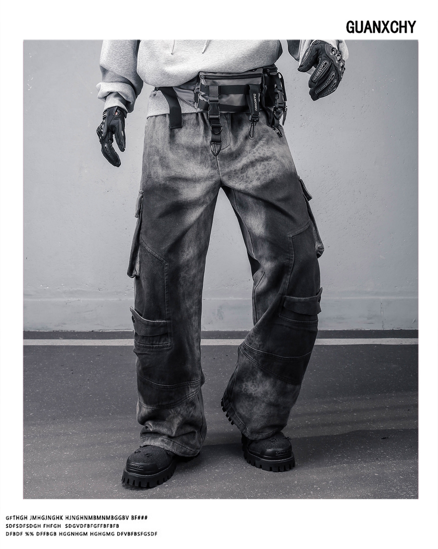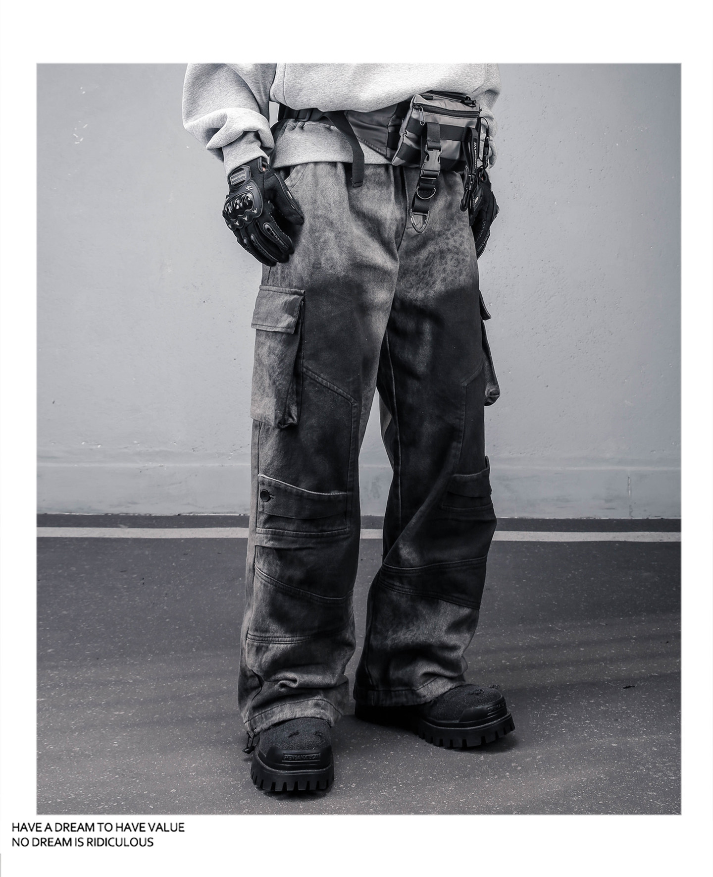 Leopard Wash Multi Pocket Wide Leg Denim Jeans WN22389