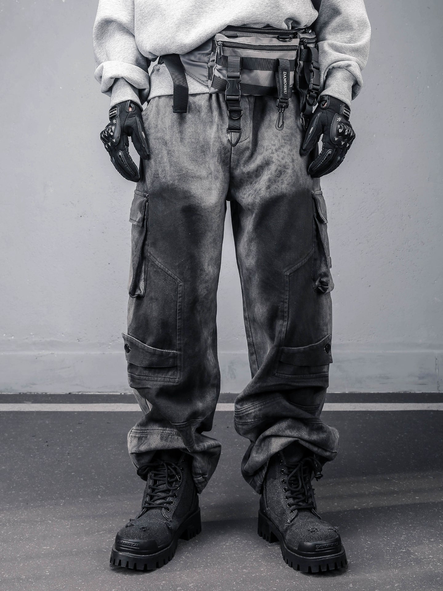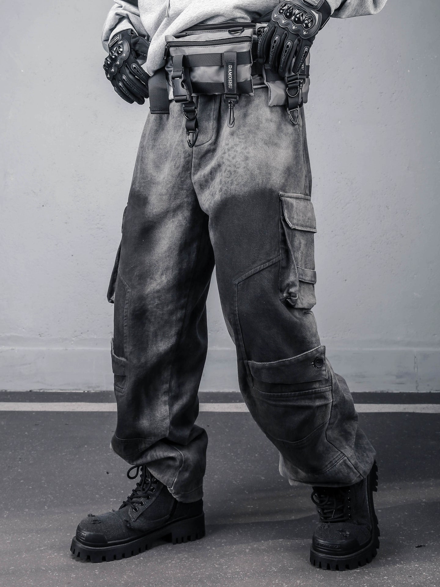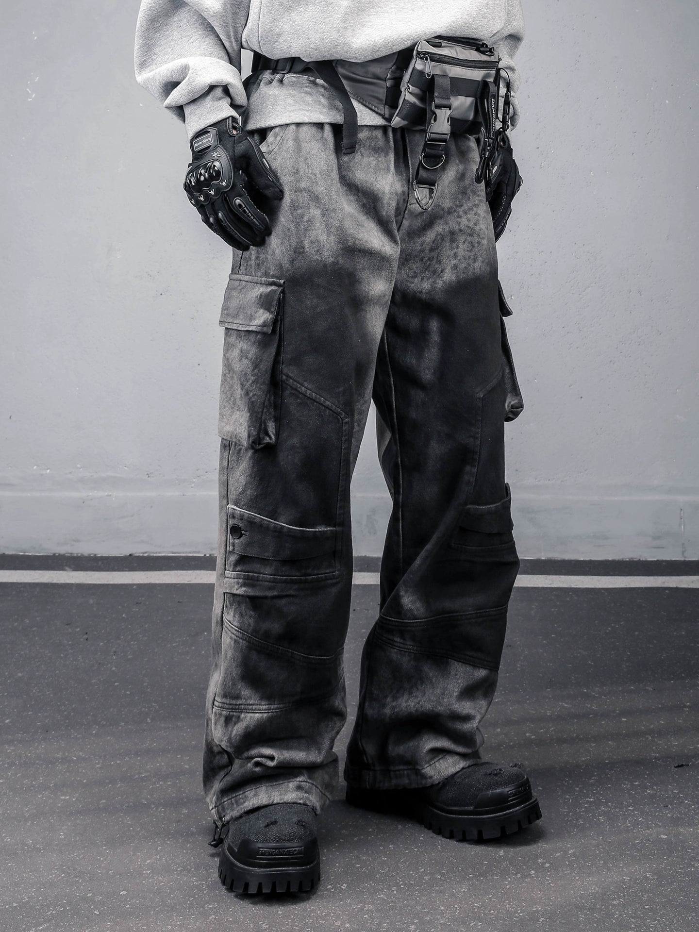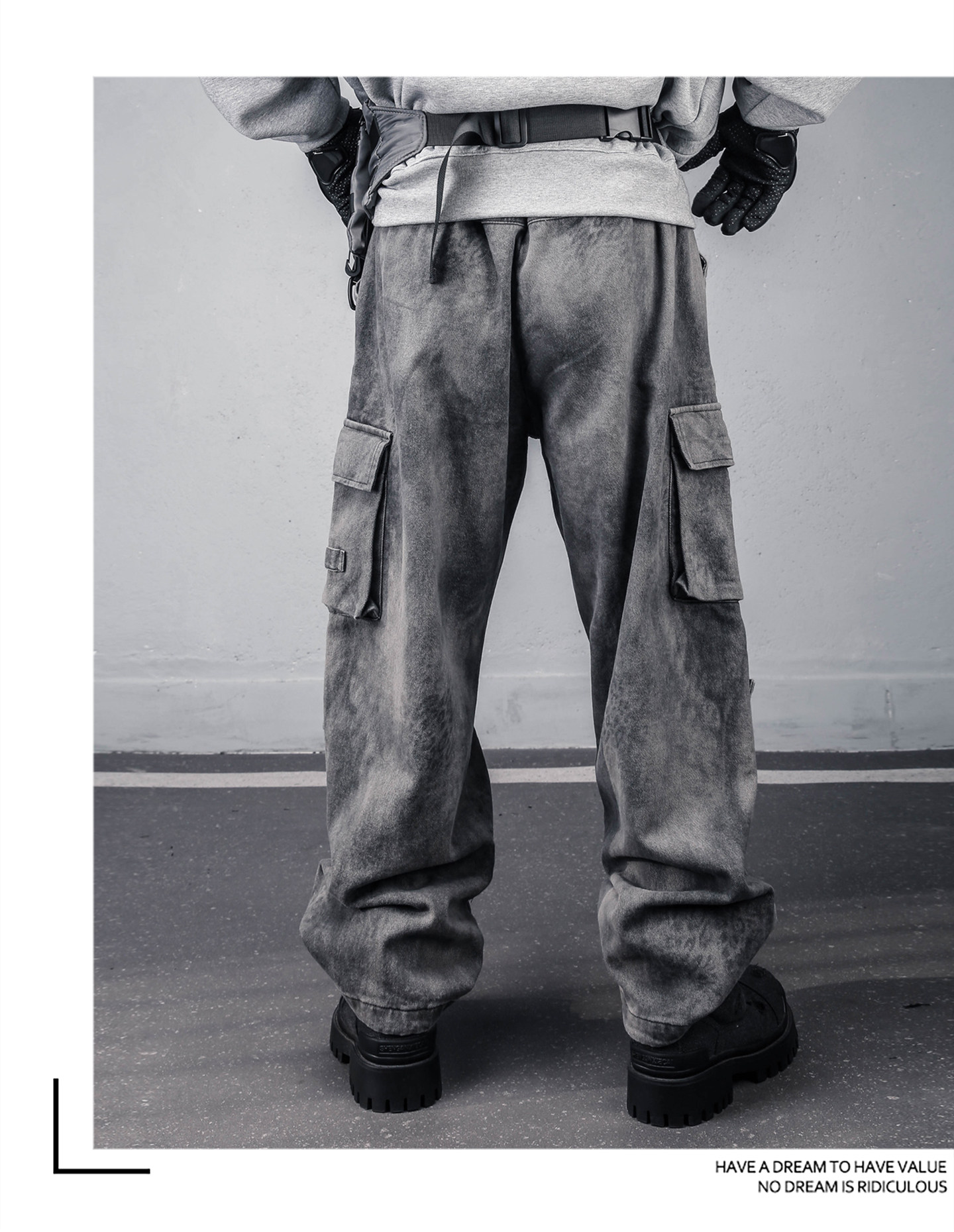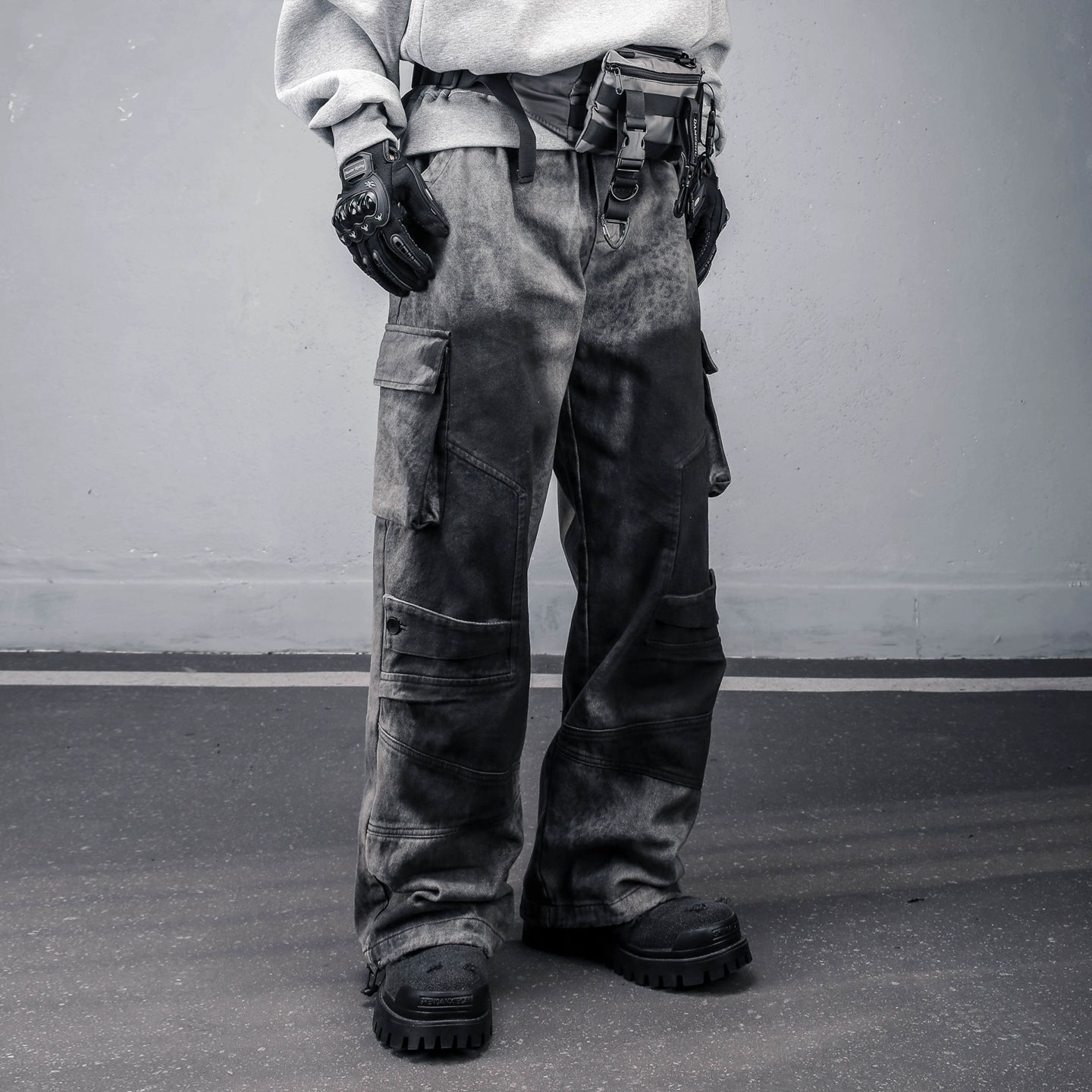 Leopard Wash Multi Pocket Wide Leg Denim Jeans WN22389