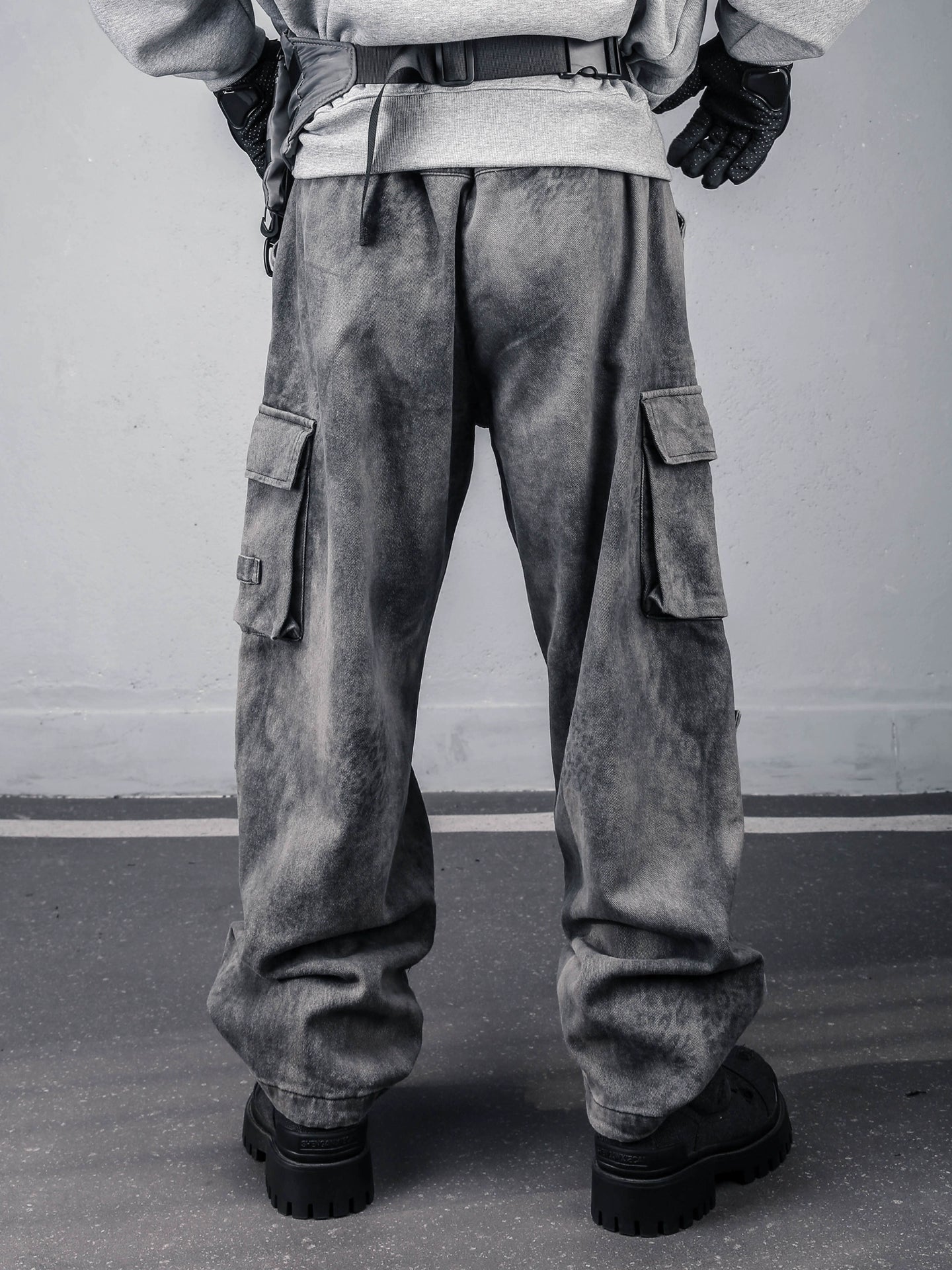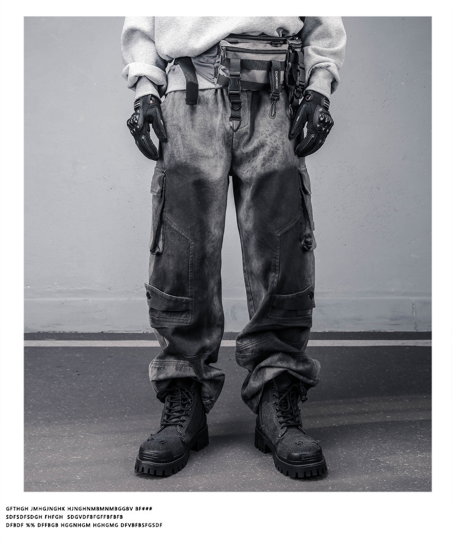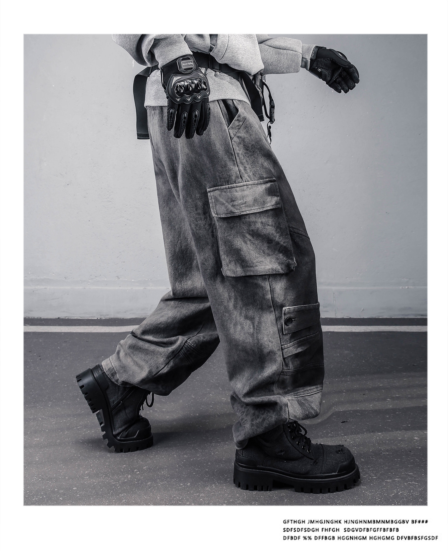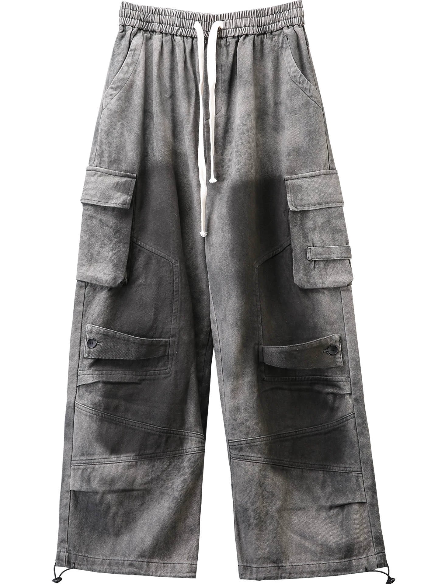 Leopard Wash Multi Pocket Wide Leg Denim Jeans WN22389