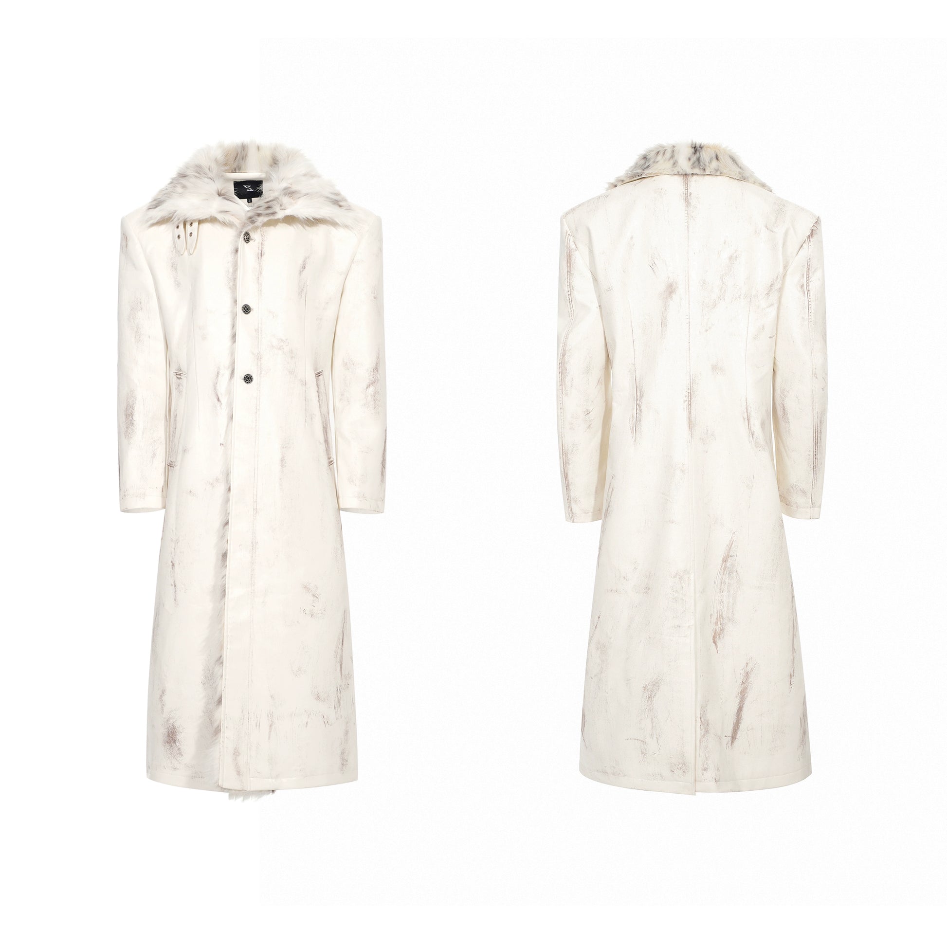 Paint Damage Stand Neck Fake Fur Coat WN22640