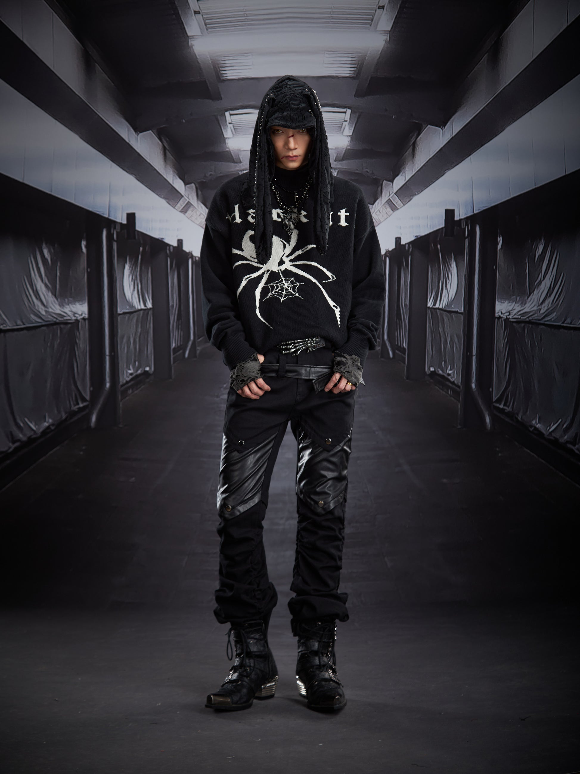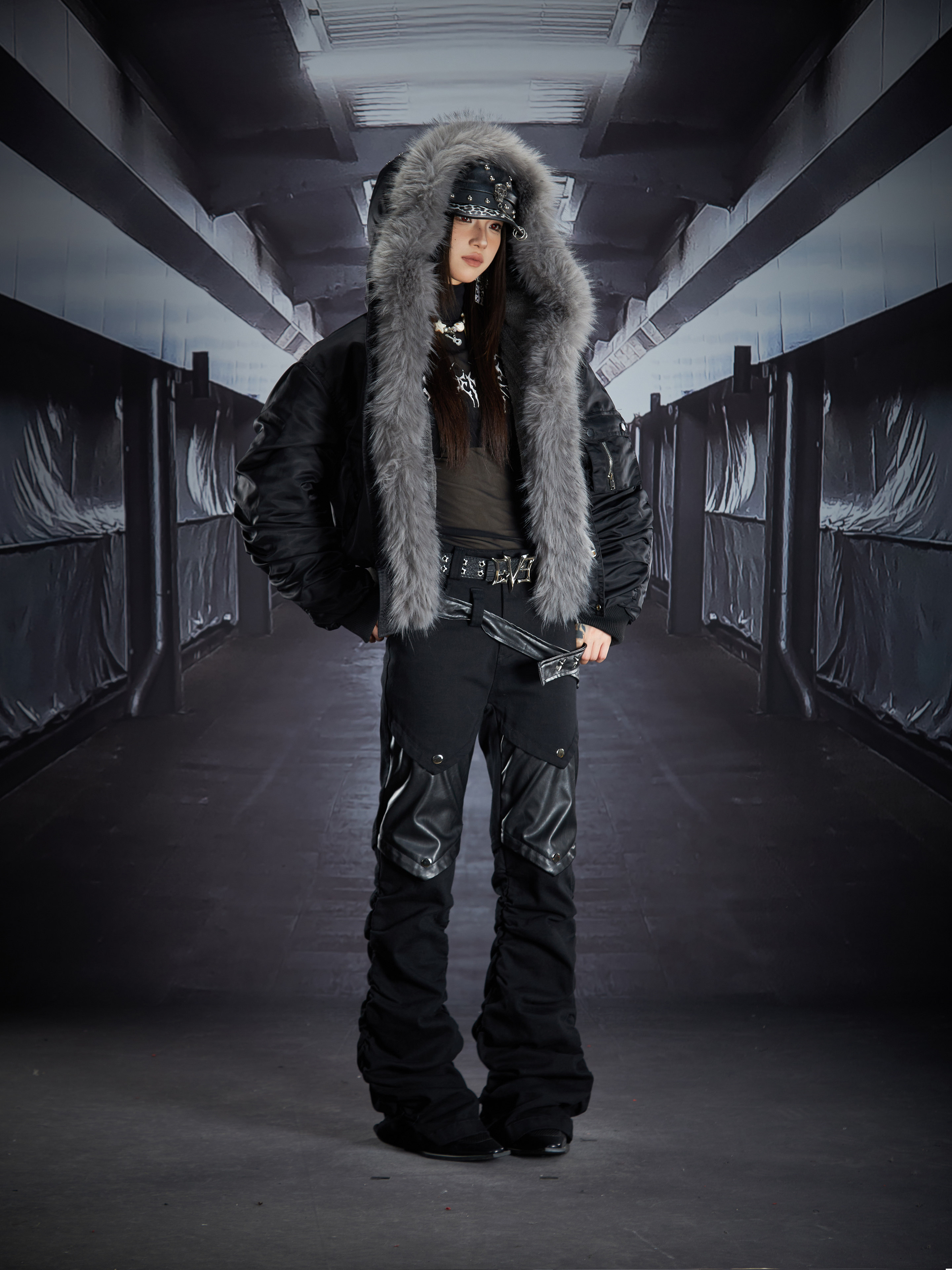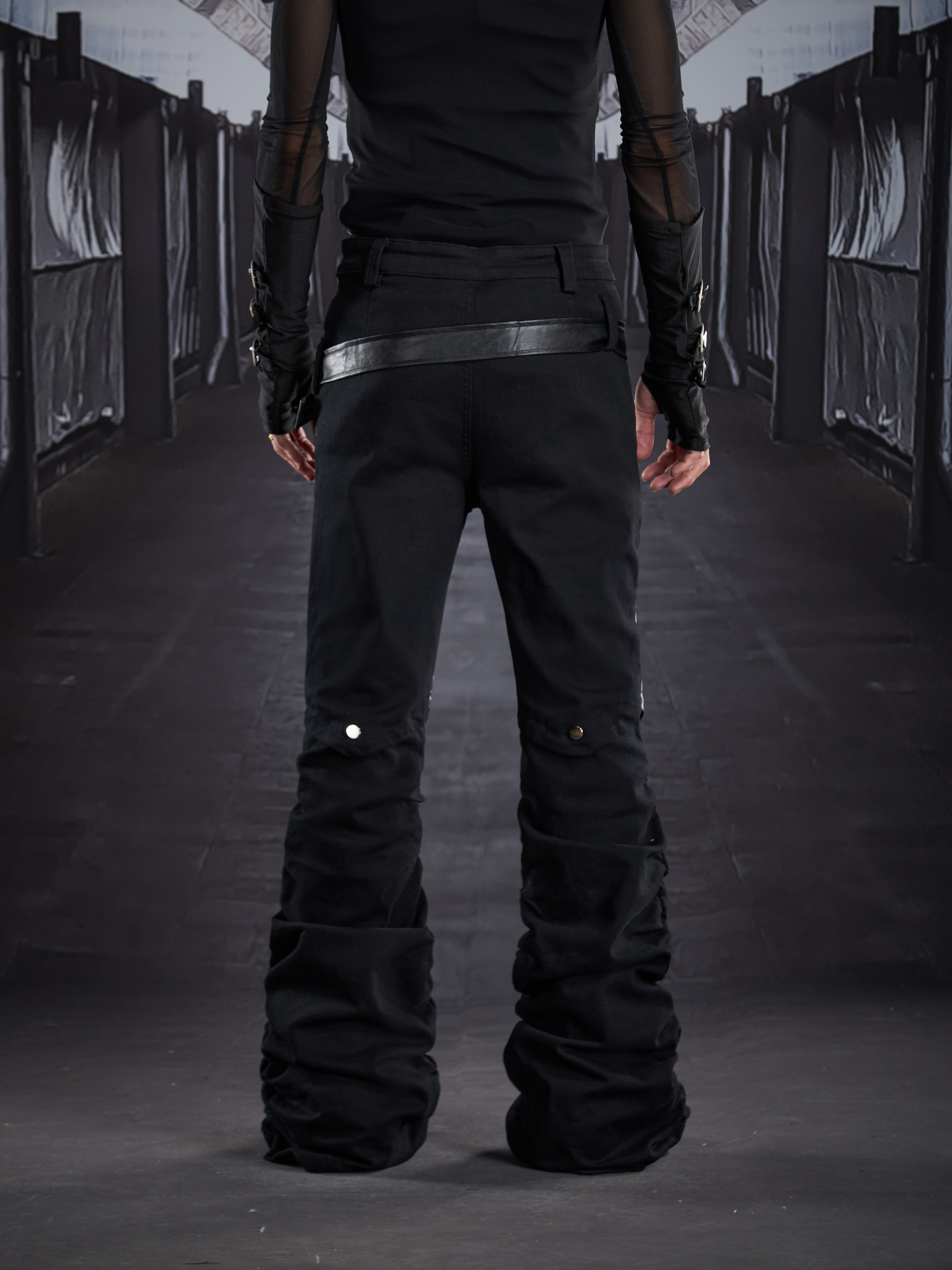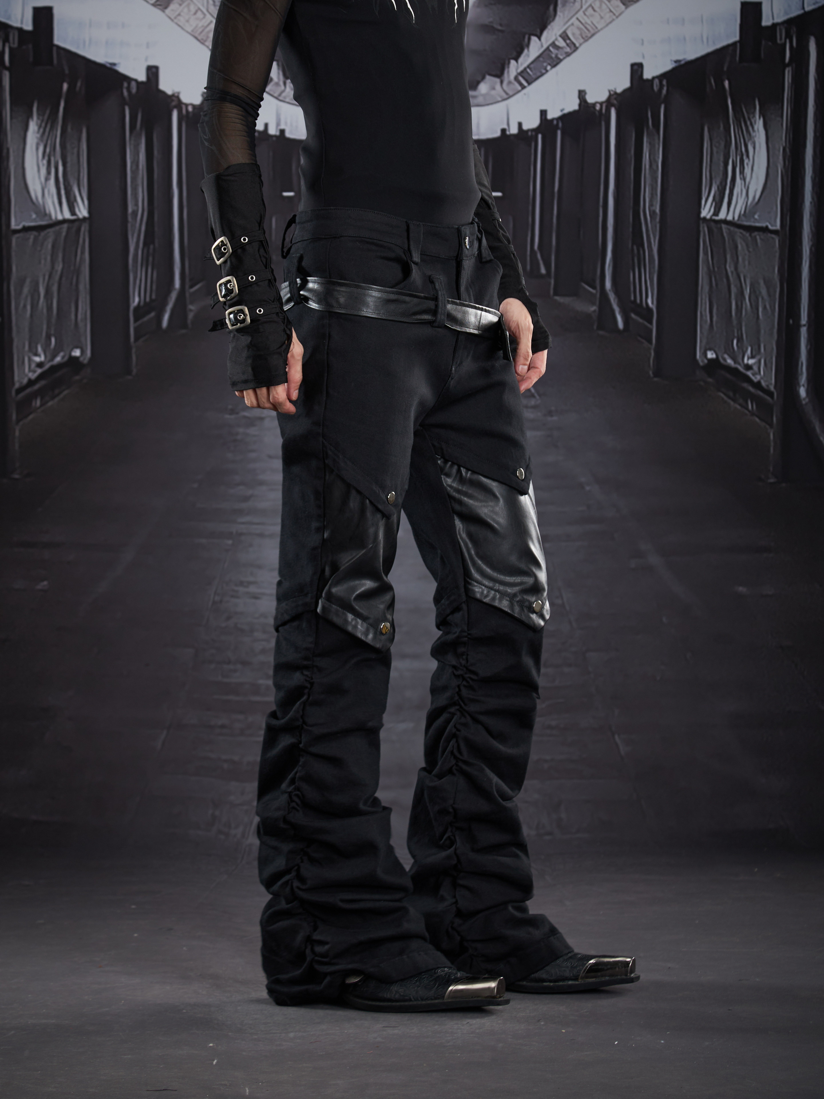 Metal Detail PU Leather Stretch Flare Denim Jeans WN22790