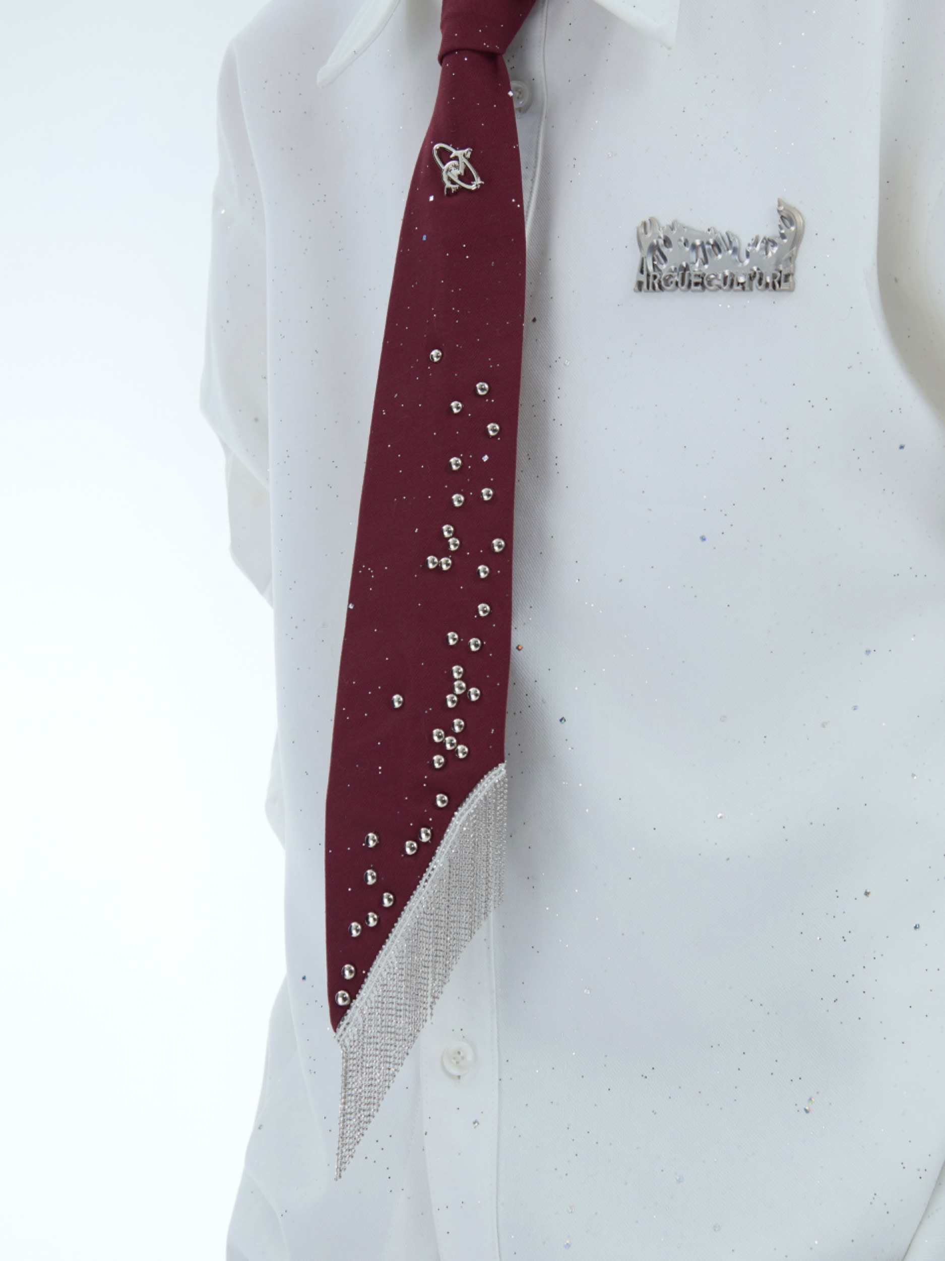 Metal Studded Fringe Bow Tie Accessory WN10872