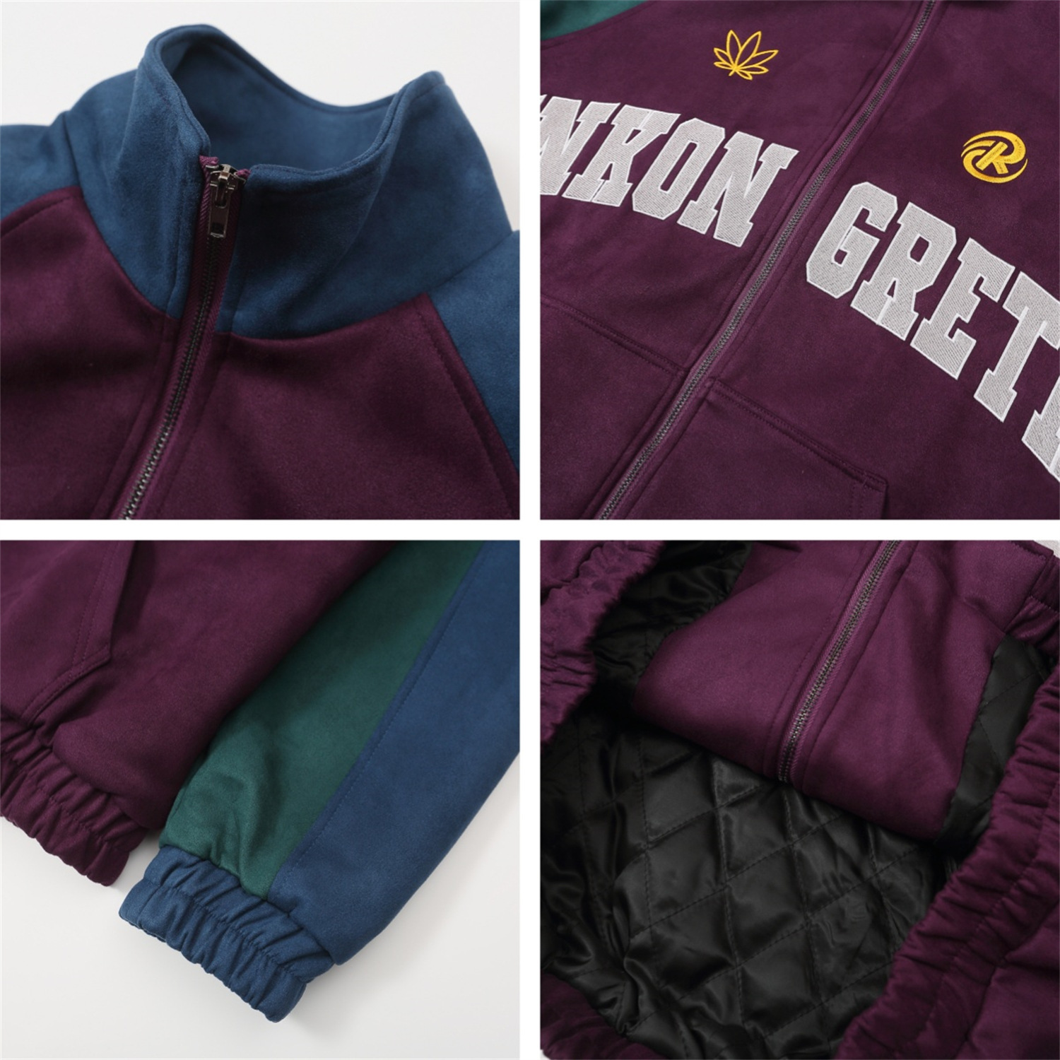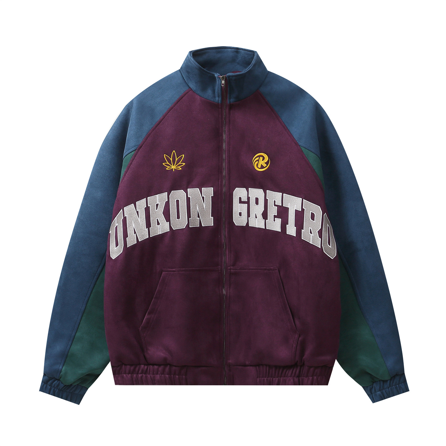 Color-Block Stand Neck Oversize Suede Jacket WN11121