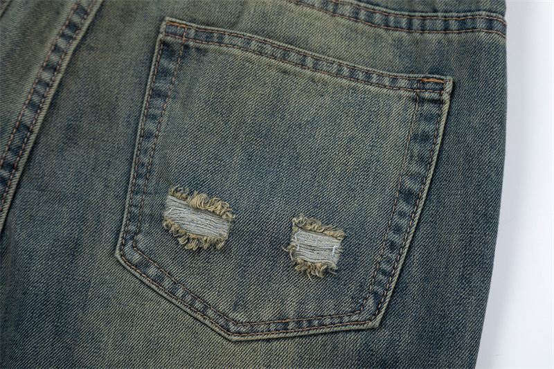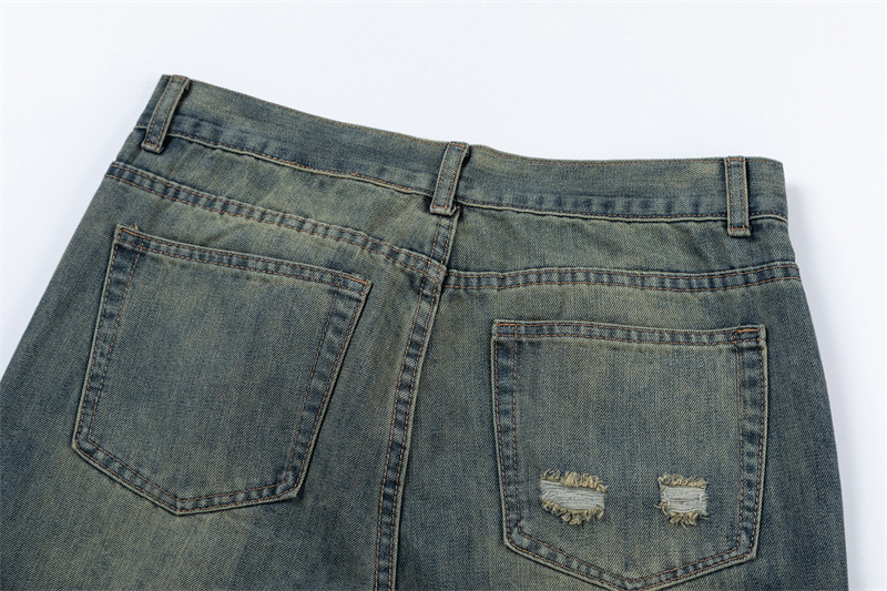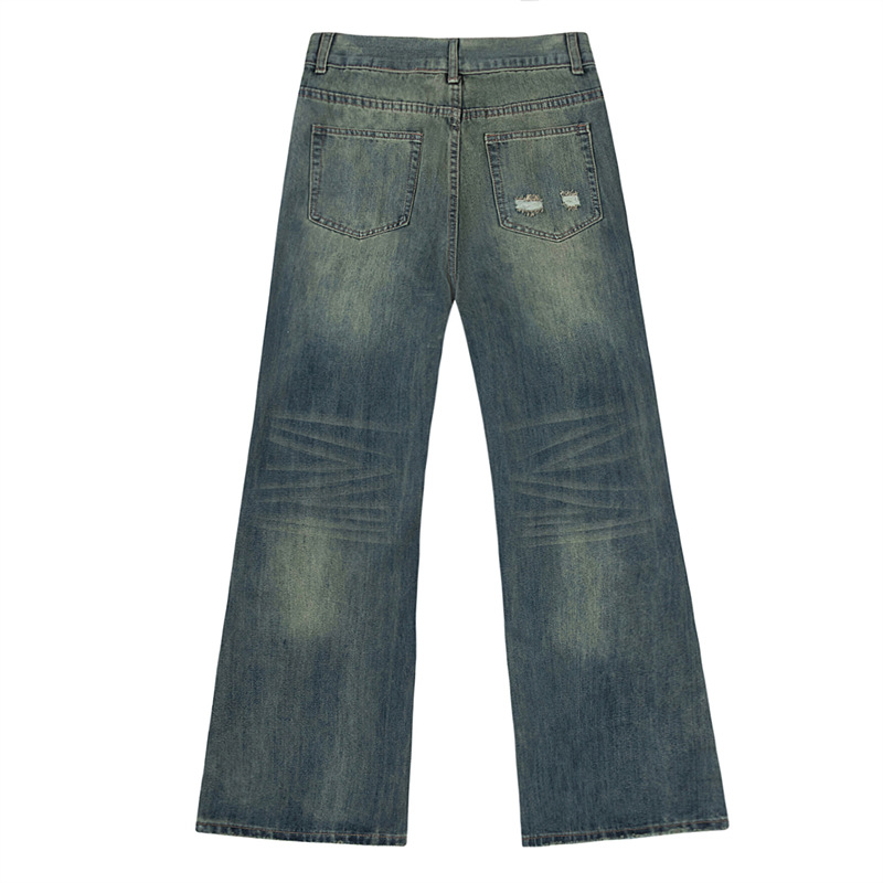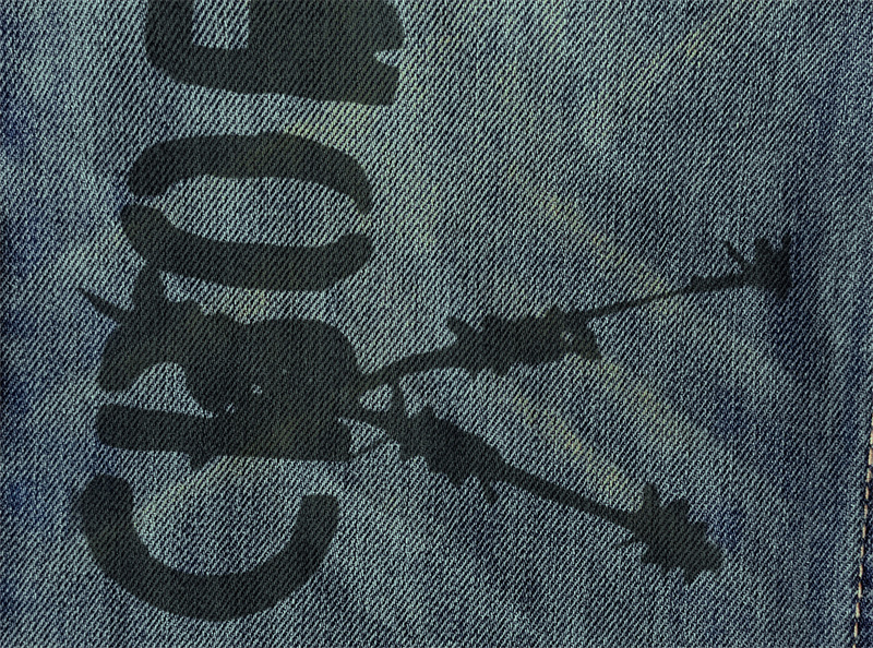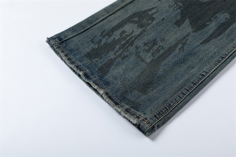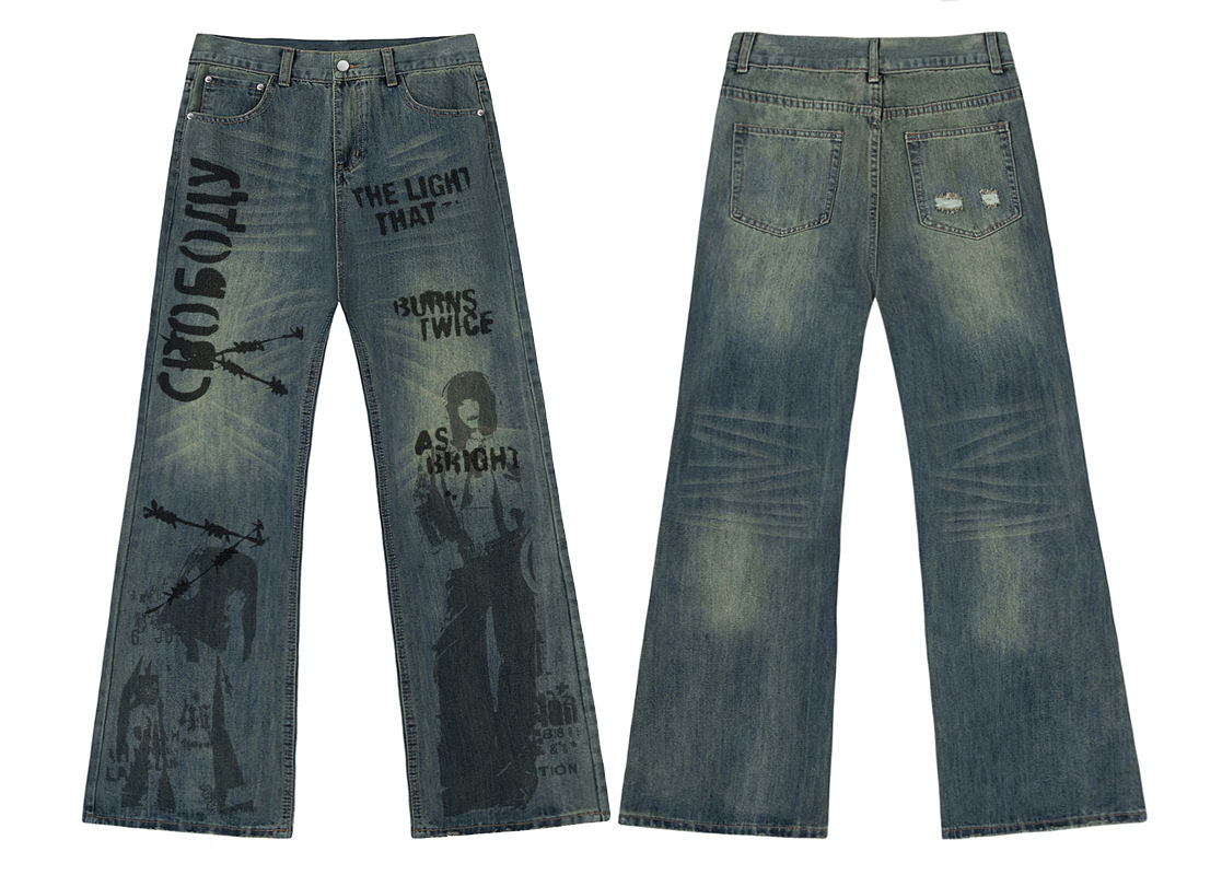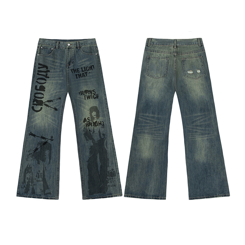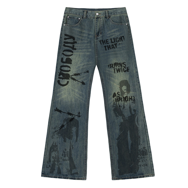 Graffiti Print Damage Wide-Leg Straight Denim Jeans WN11154
