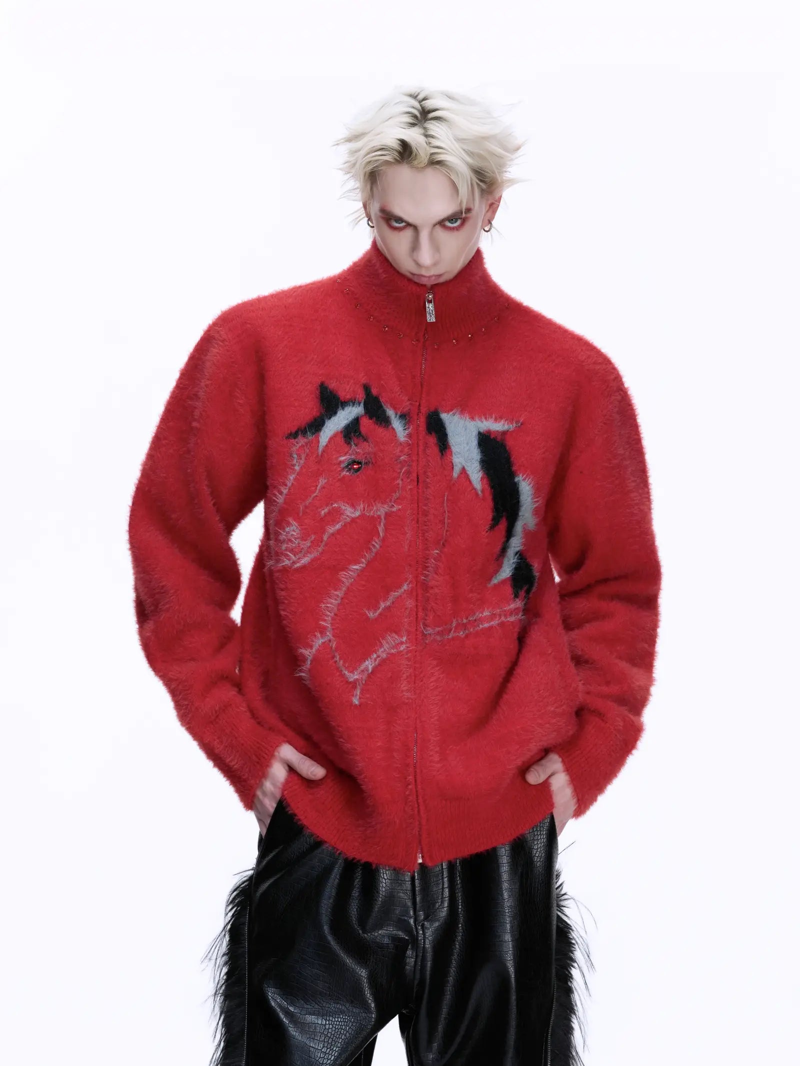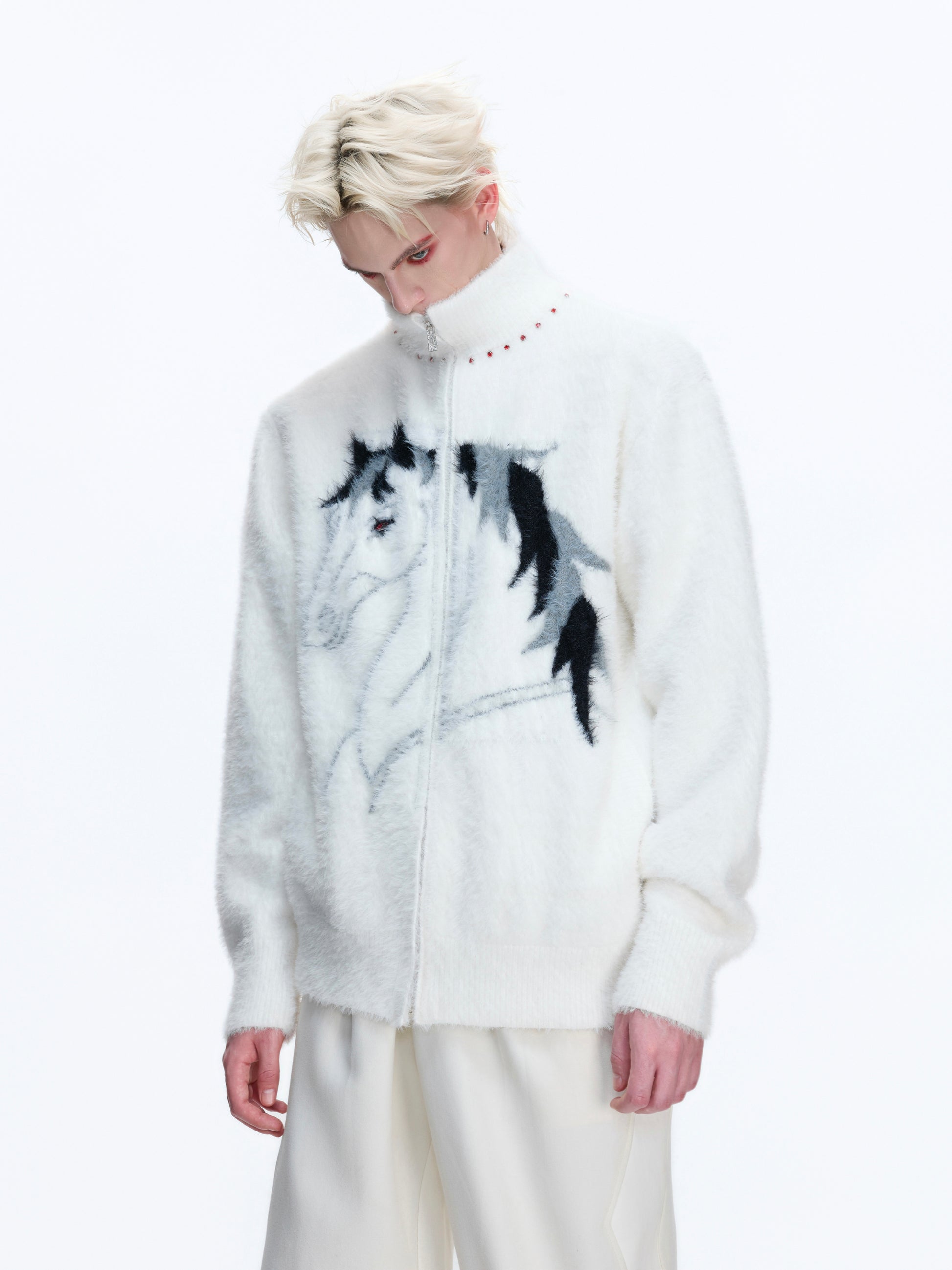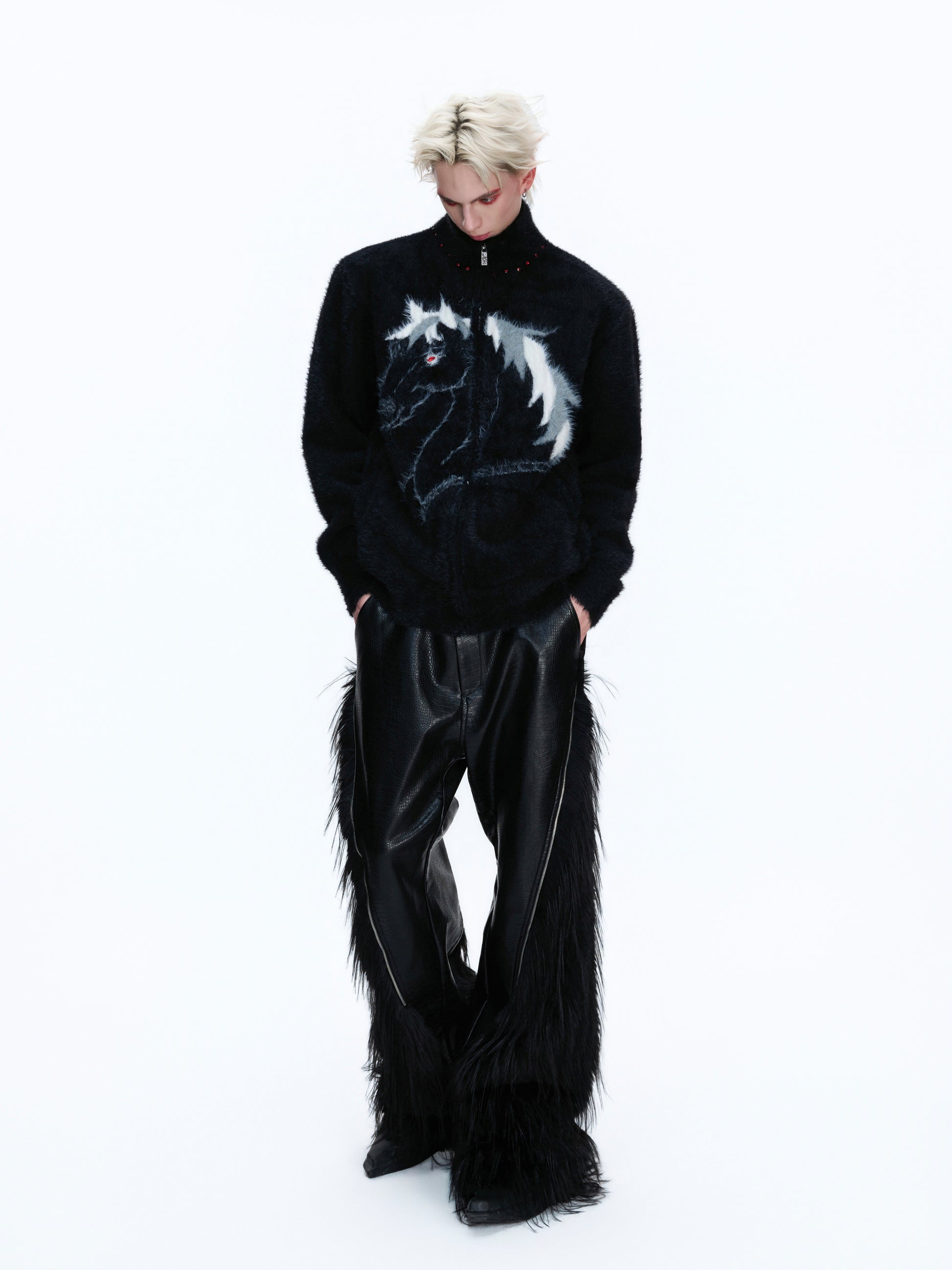 Fake Mink Turtleneck Zipper Knit Cardigan WN22672