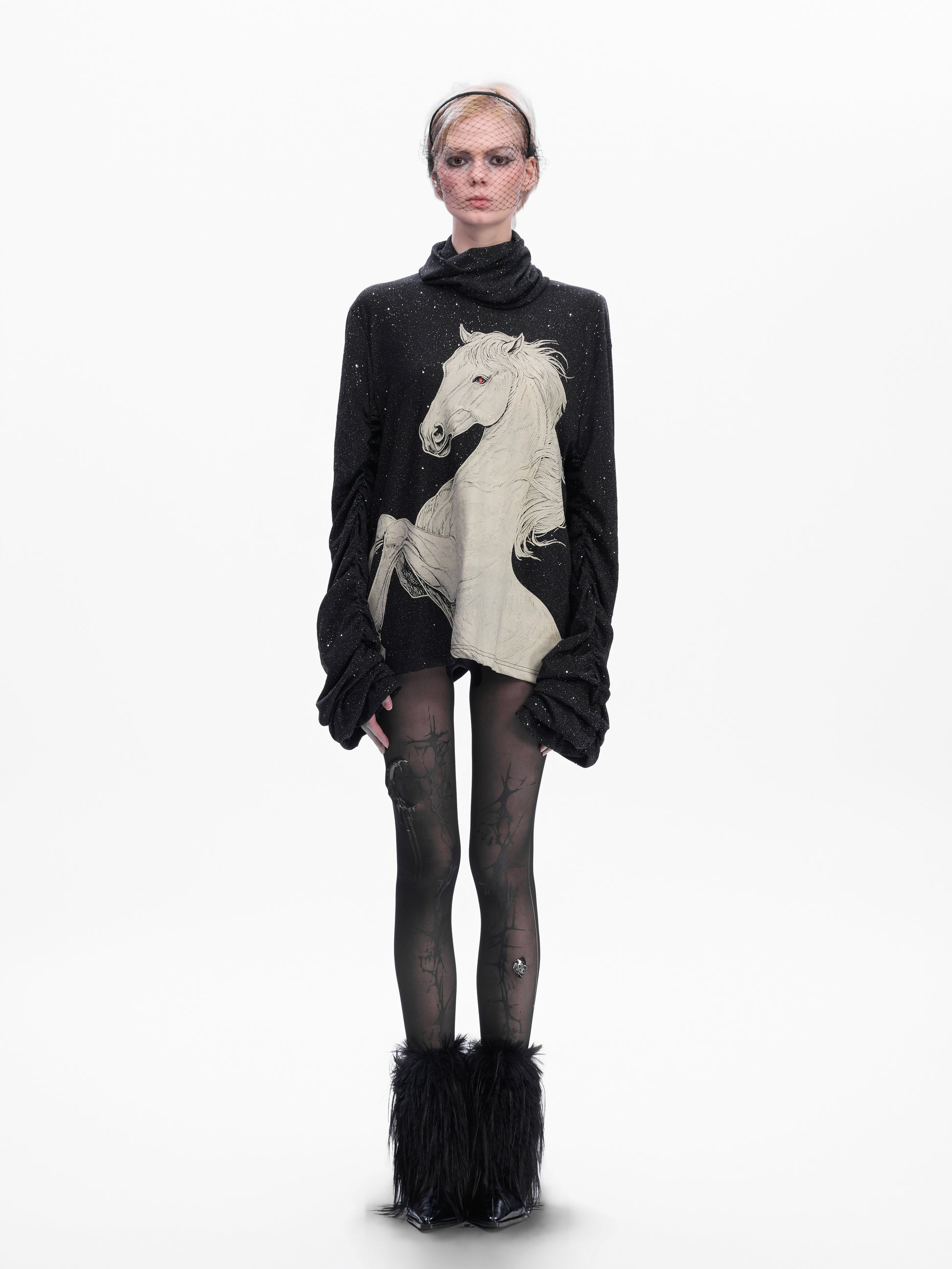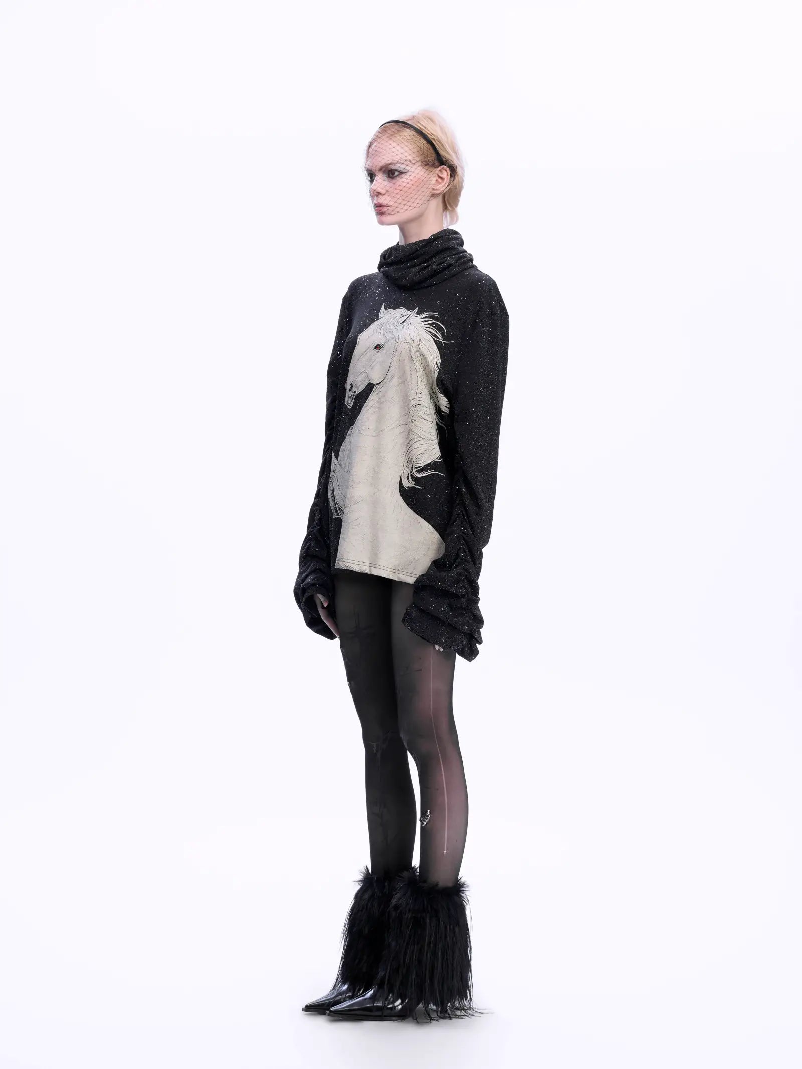 Glitter High-neck Oversize Long-sleeve T-shirt WN22675