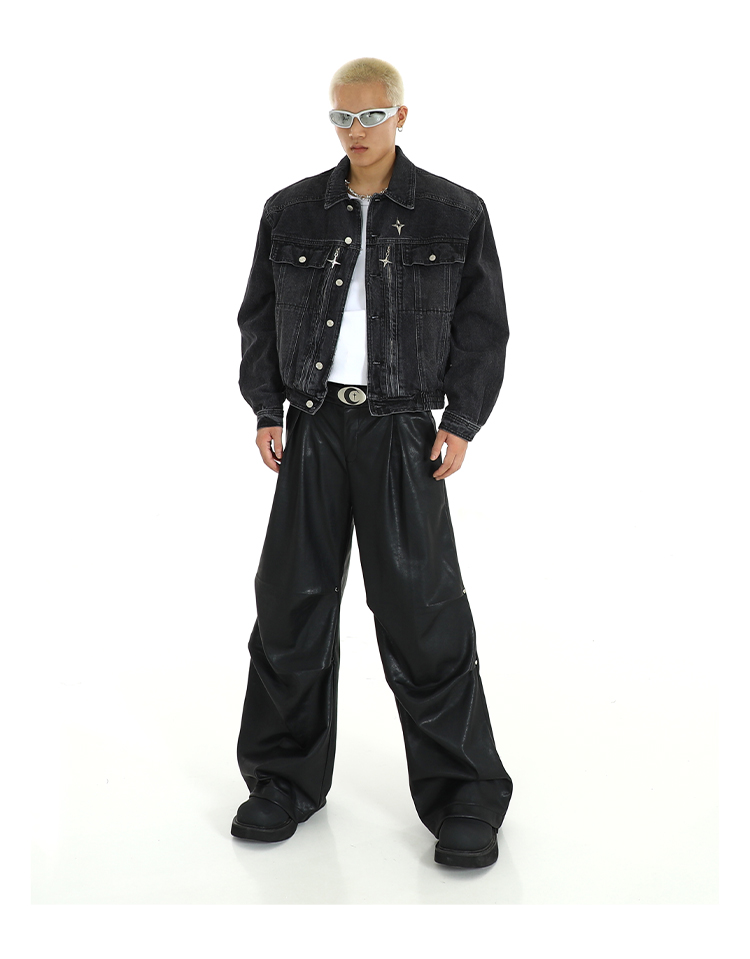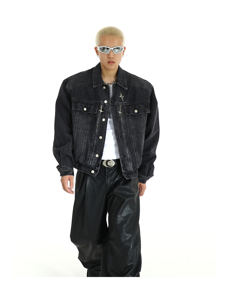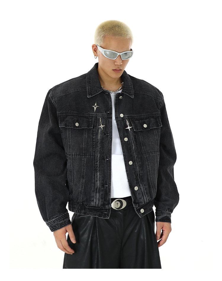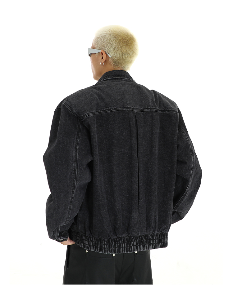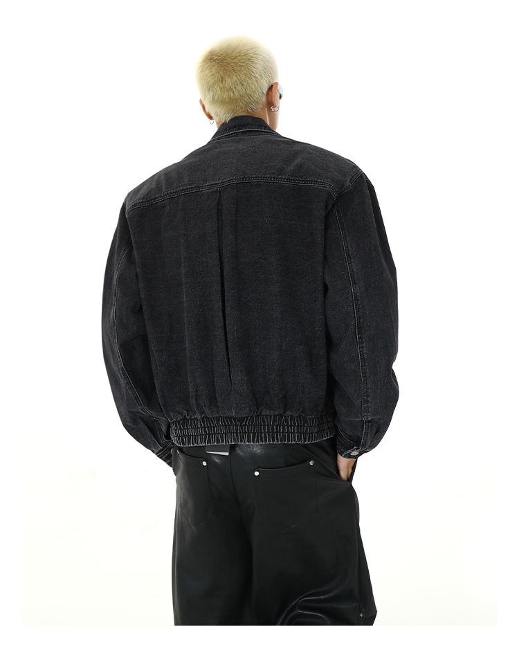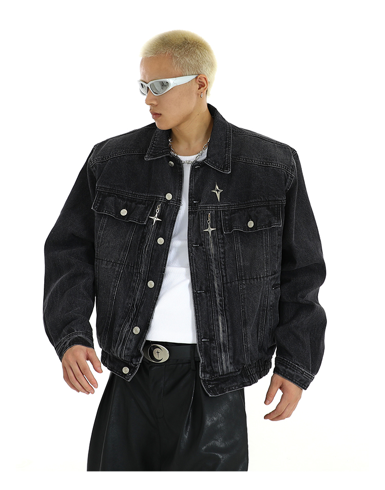 Metal Zipper Design Washed Short Denim Jacket WN5753