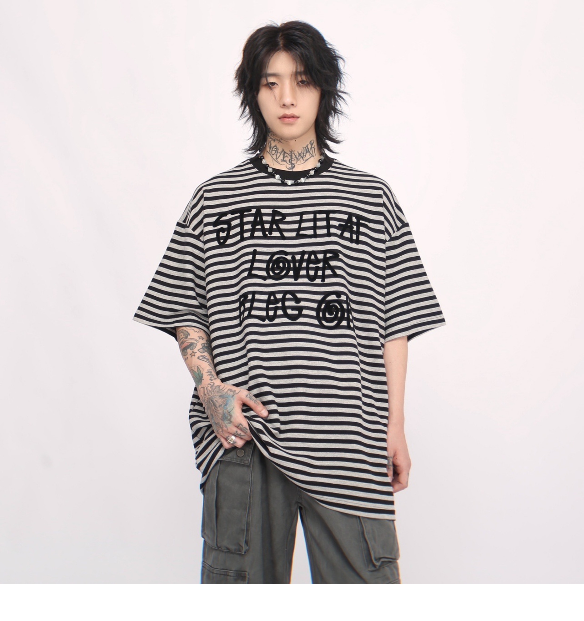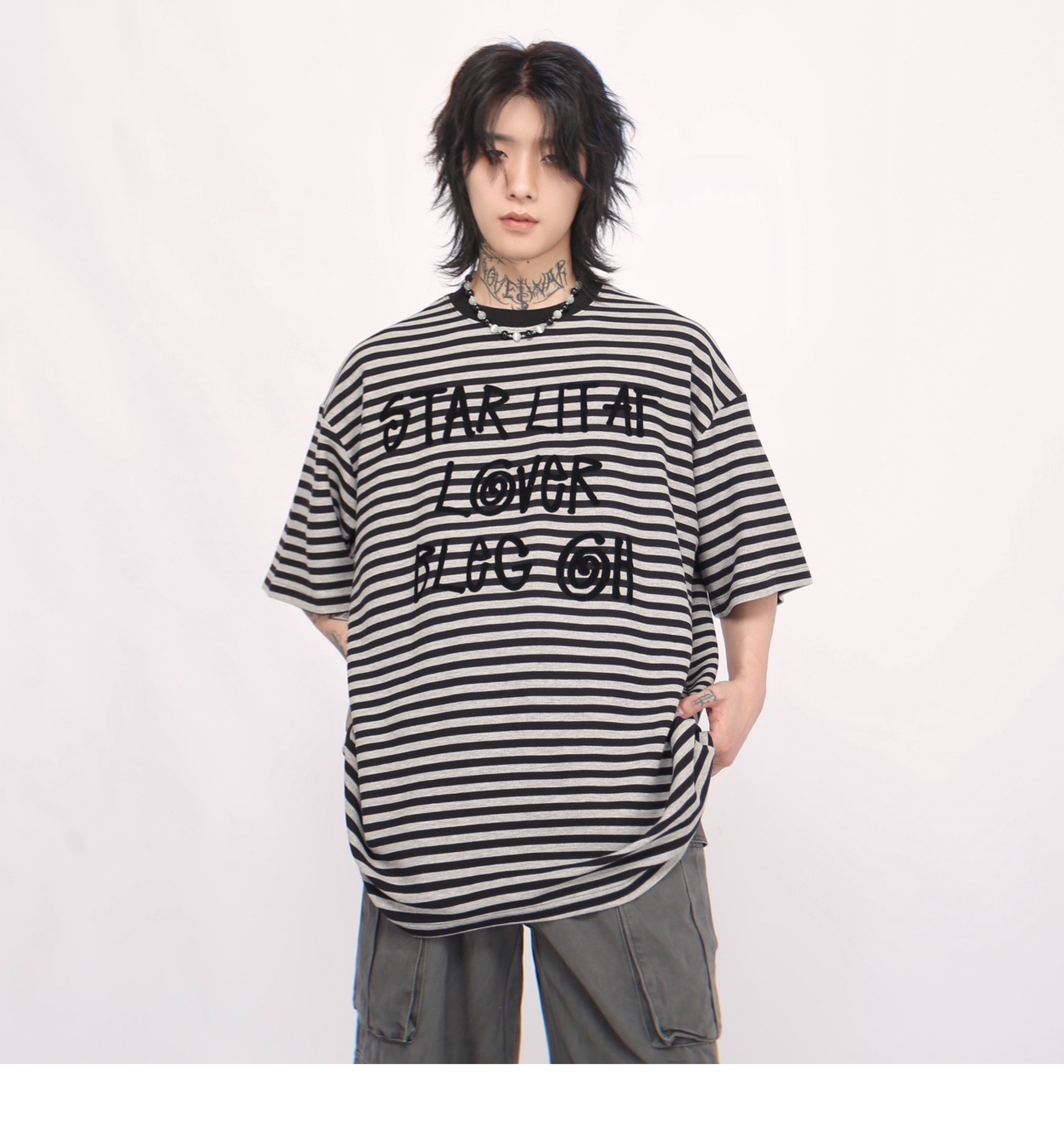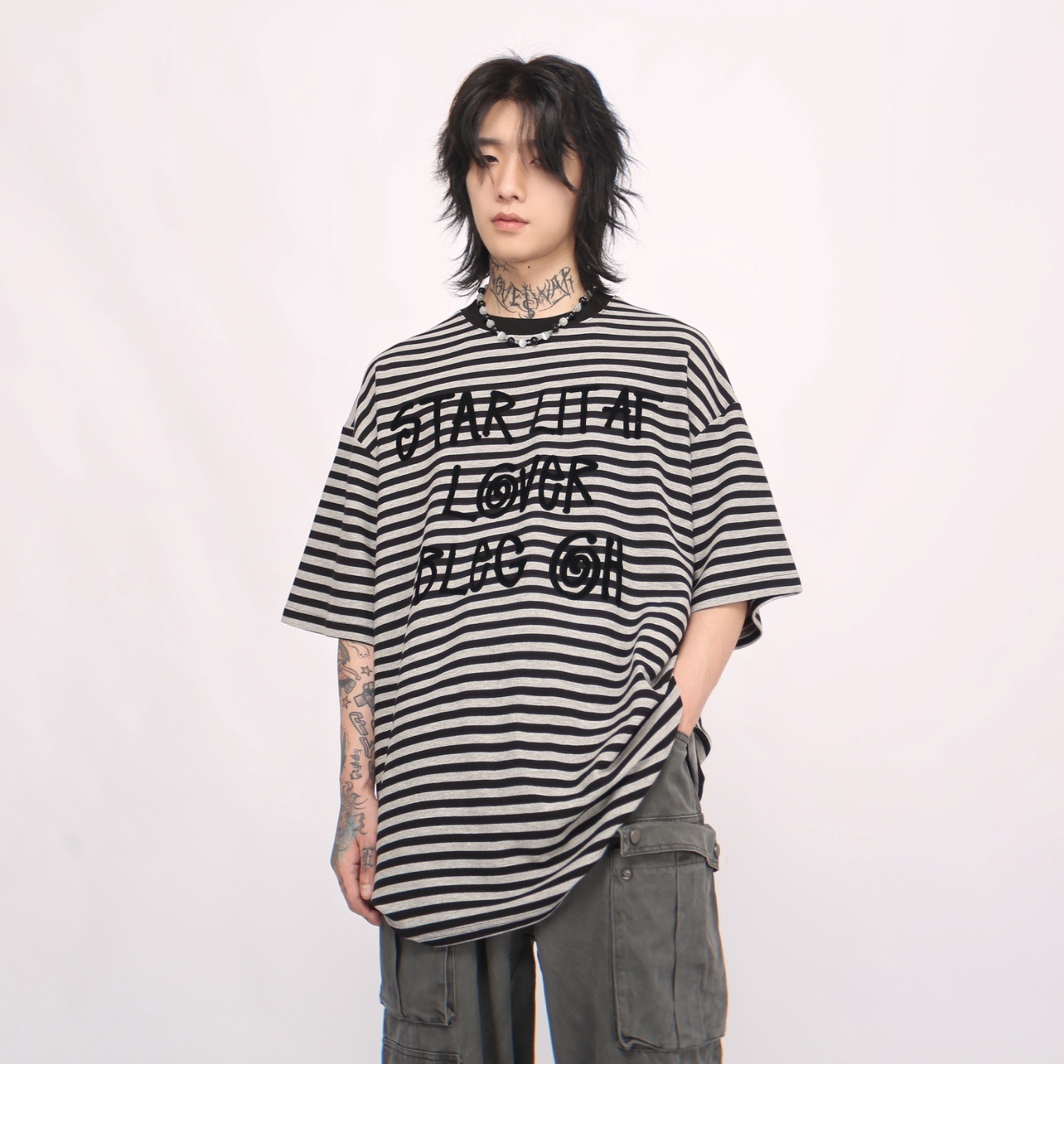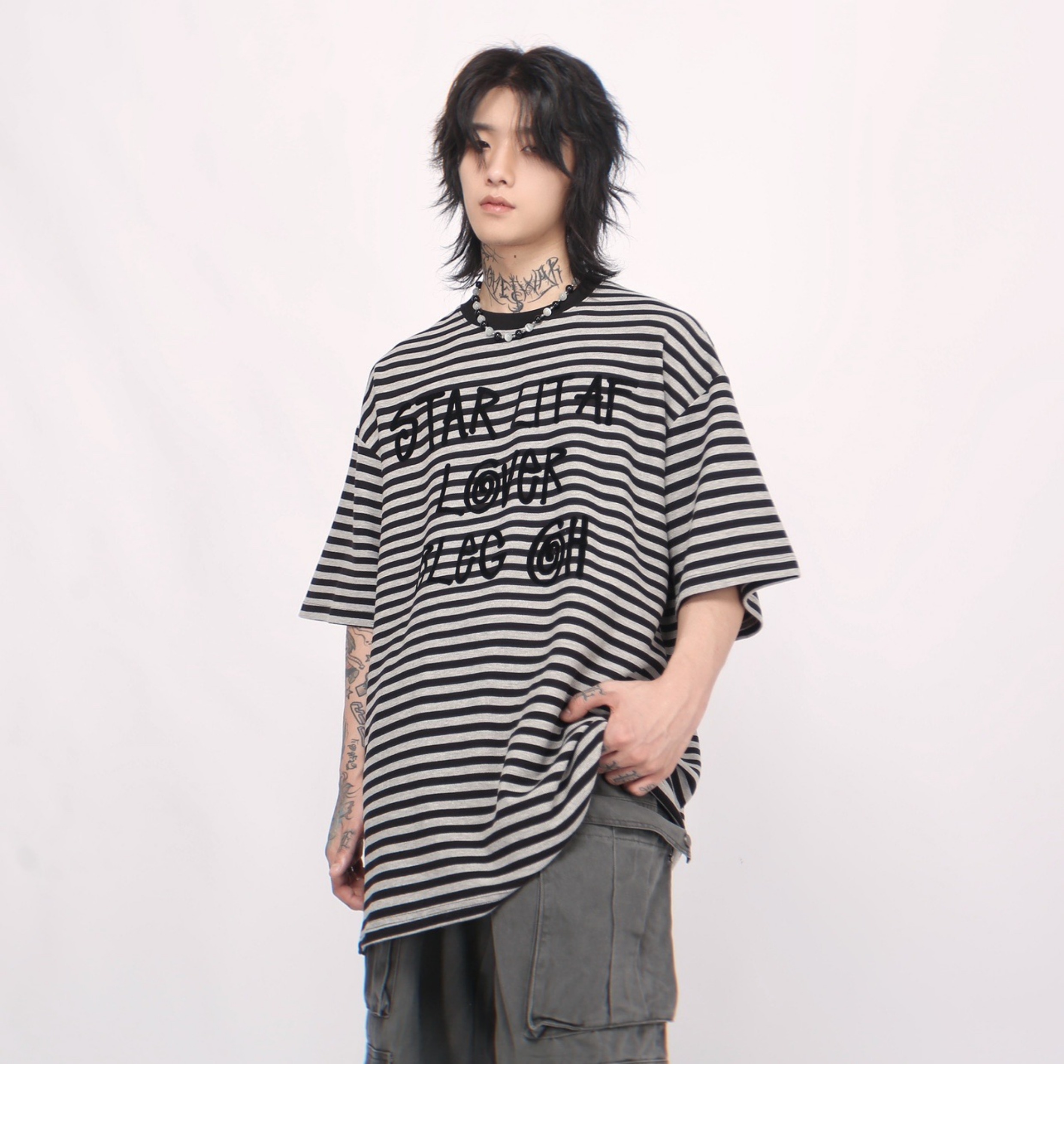 Oversize Stripe Letter Short Sleeve T-shirt WN6541