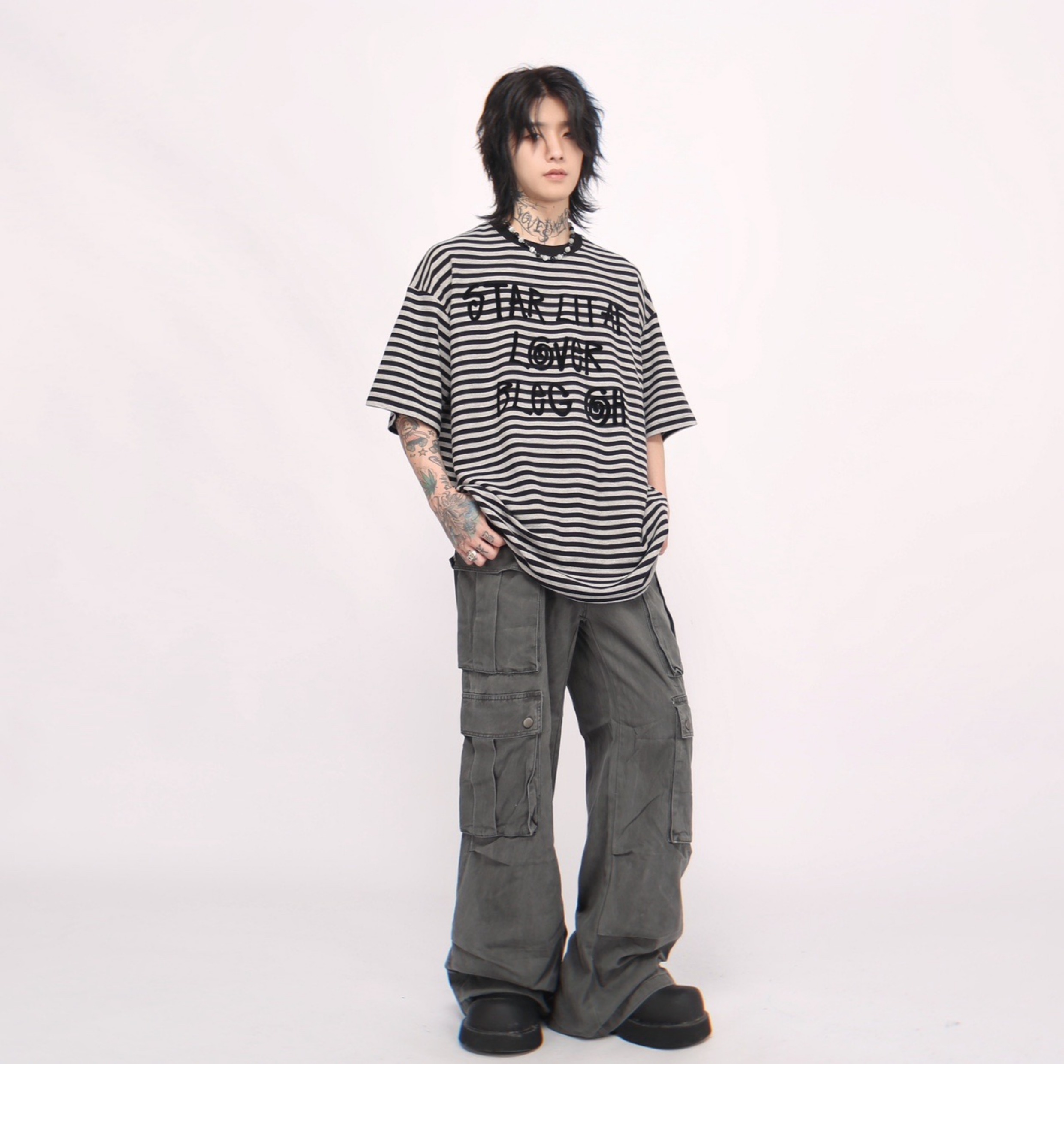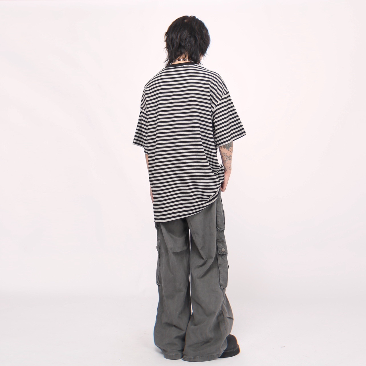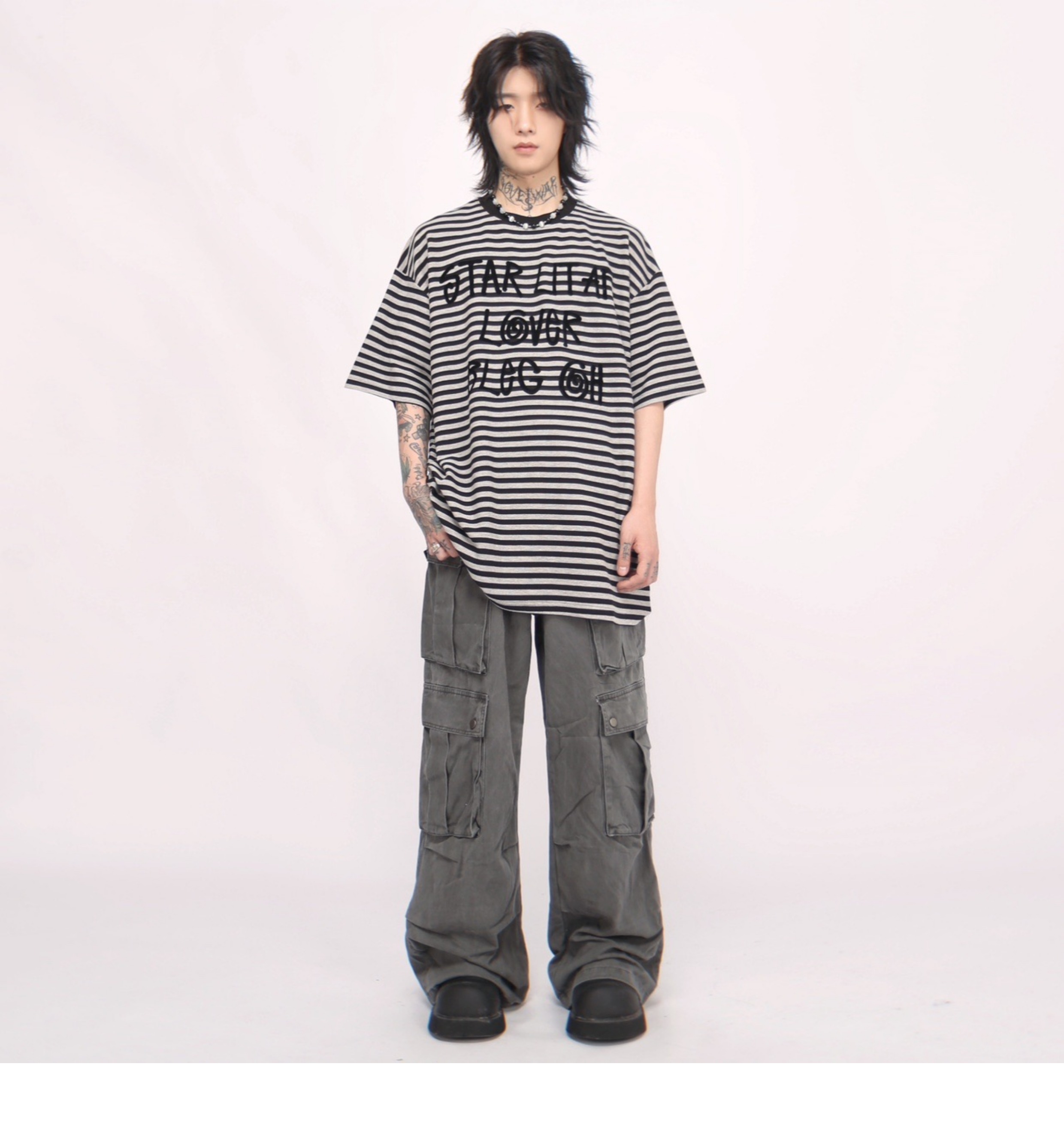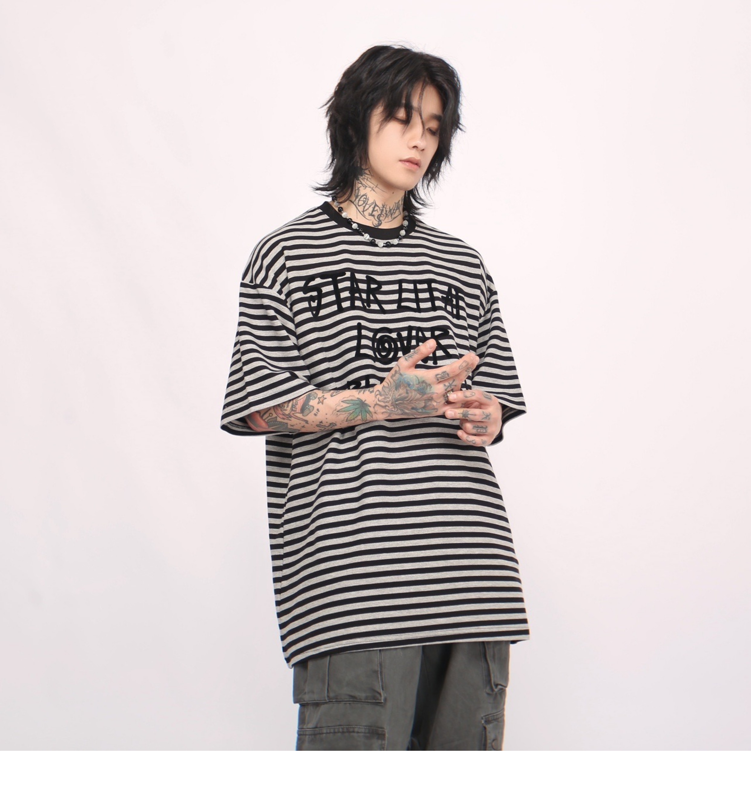 Oversize Stripe Letter Short Sleeve T-shirt WN6541