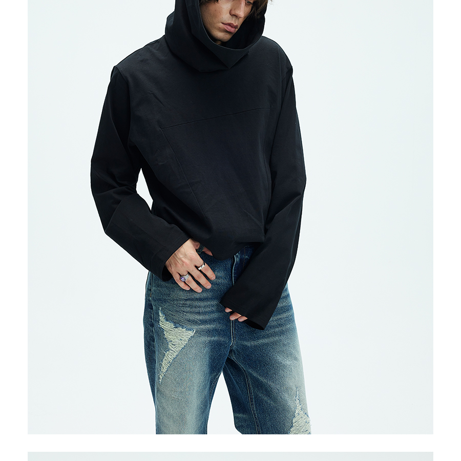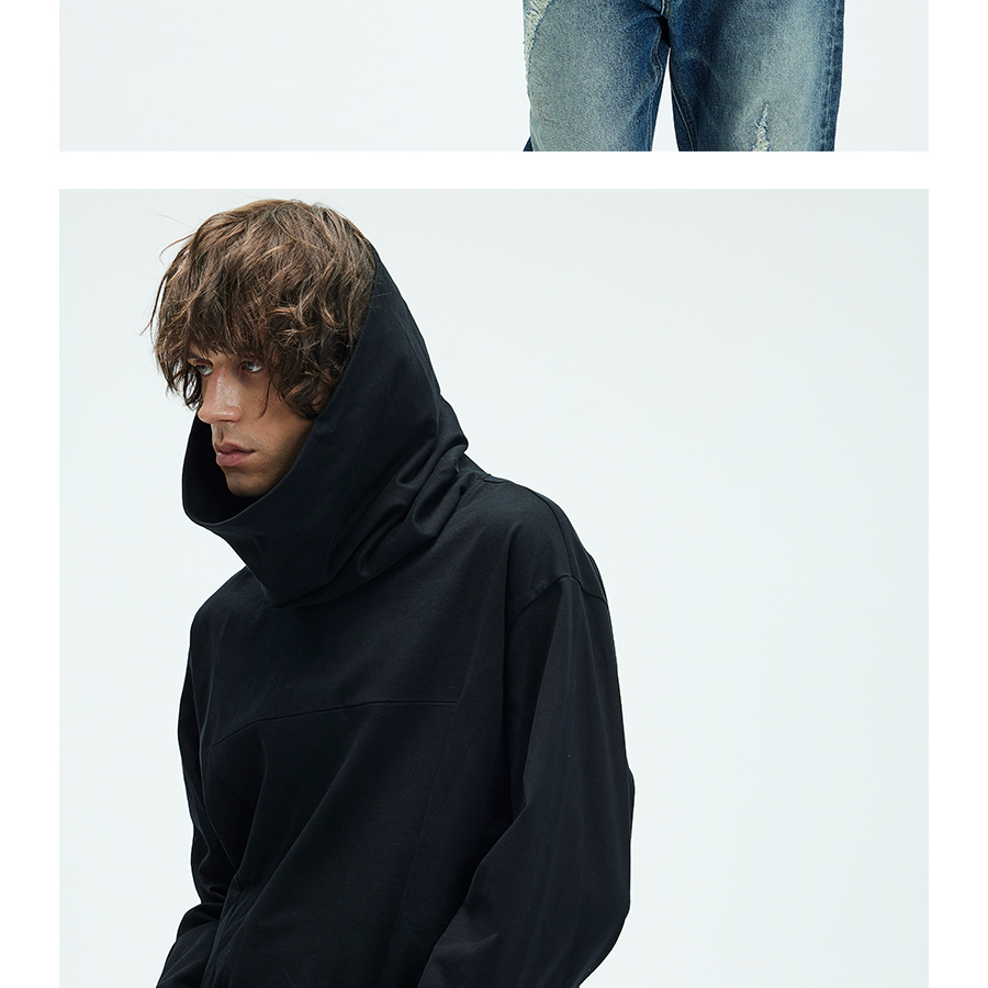 Irregular Oversize High Neck Long Sleeve Thin Hoodie WN9081