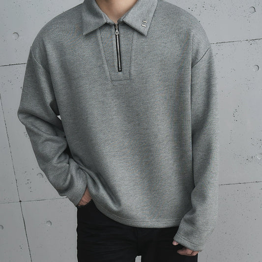 Half Zipper Turn-Down Collar Long Sleeve Polo Shirt WN17642