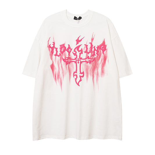 Washed Spray Paint Damage Design Oversize Short Sleeve T-Shirt WN15112