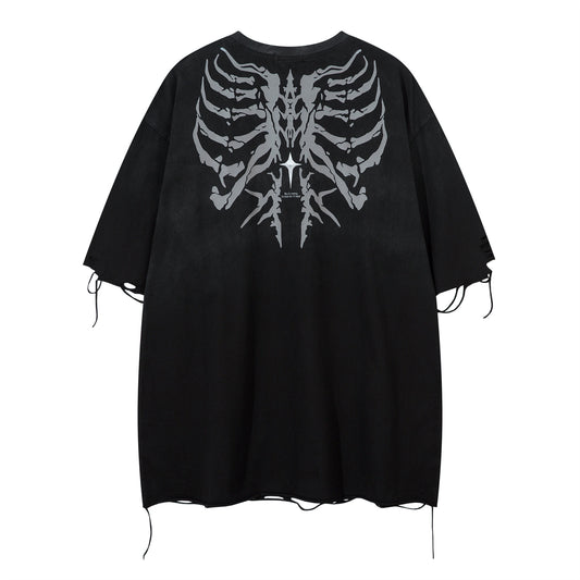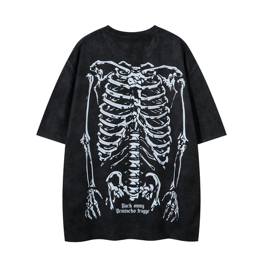 Washed Skeleton Print Damage Oversize Short Sleeve T-Shirt WN15116