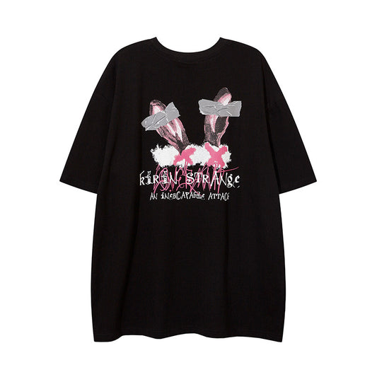 Suede Graffiti Print Oversize Short Sleeve T-Shirt WN15117