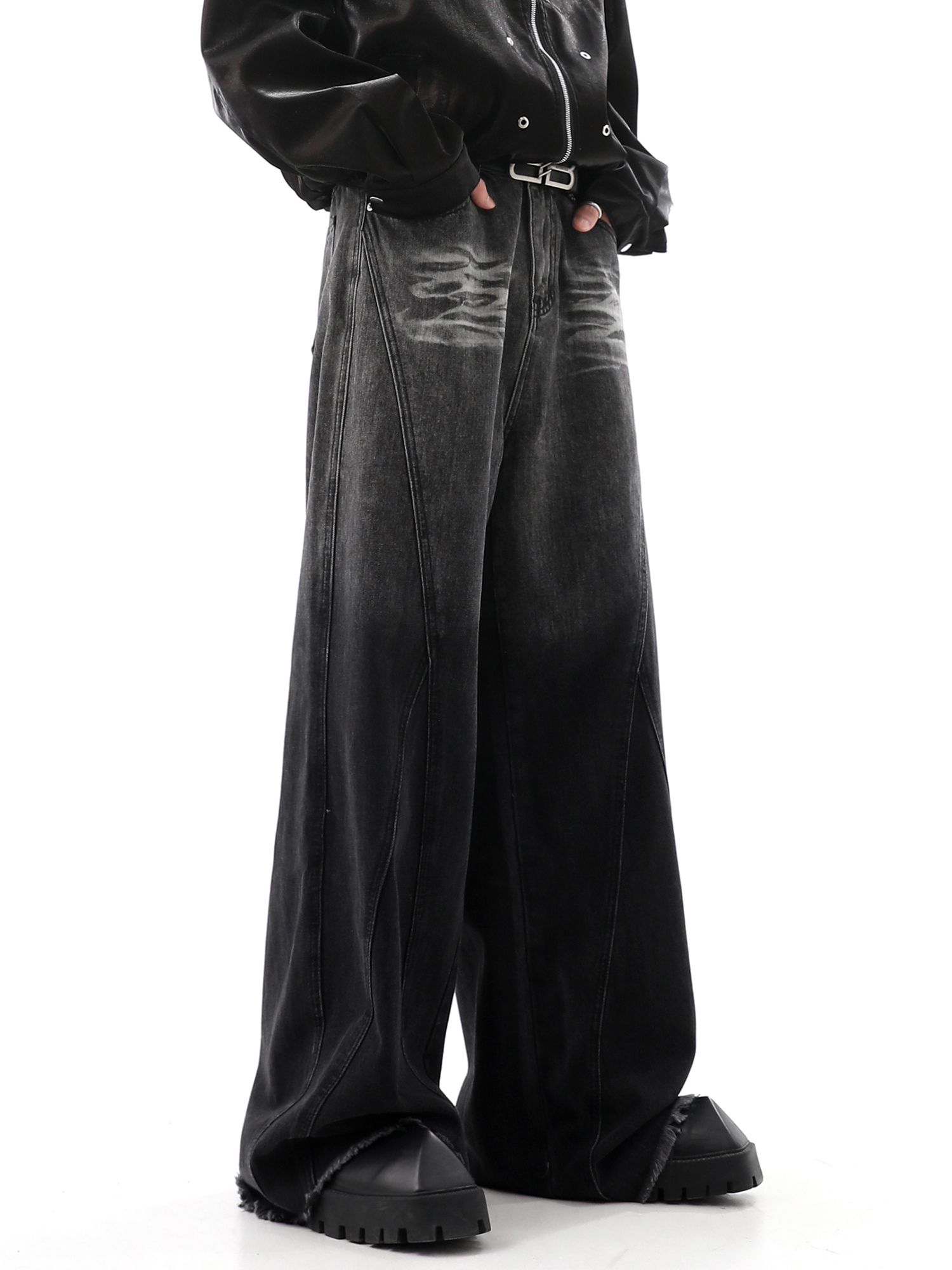 Washed Drape Wide-Leg Denim Jeans WN10428