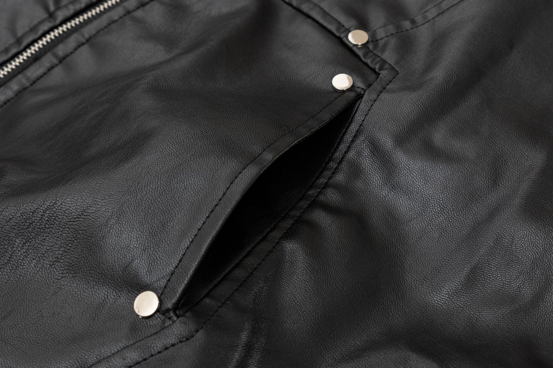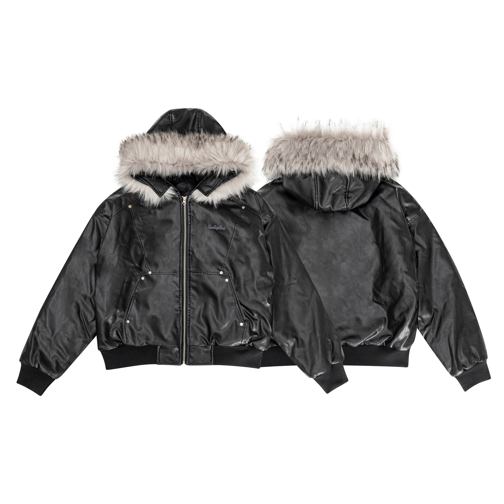 PU Leather Detachable Fur Collar Padded Parker Jacket WN11312