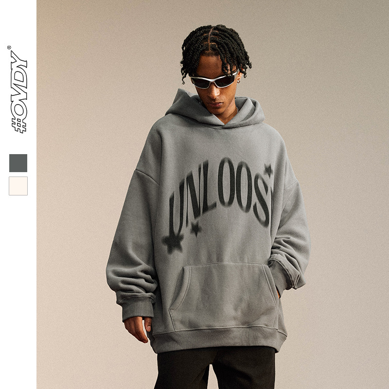 Letter Print Sherpa-Lined Oversize Hoodie WN12371