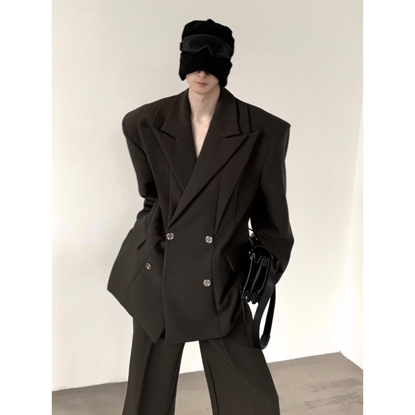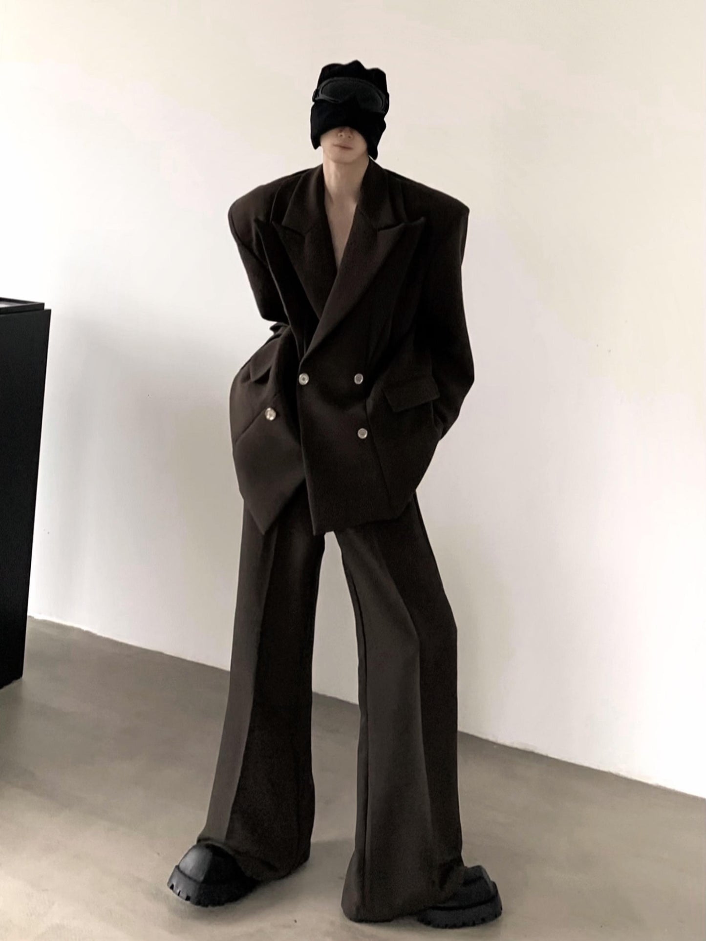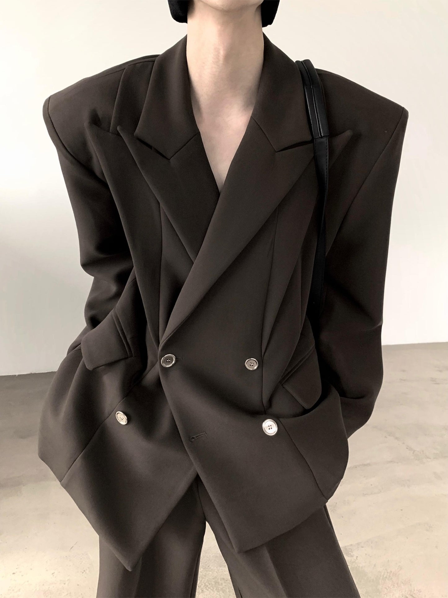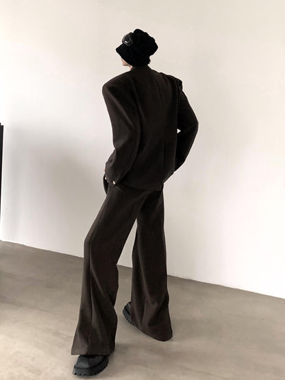 Shoulder-pad Tailored Jacket & Wide Leg Trousers Setup WN15409