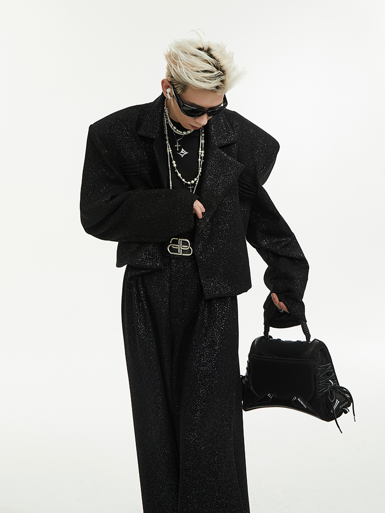 Sequin Shoulder-Pad Tailored Jacket & Wide-Leg Trousers Setup WN15438
