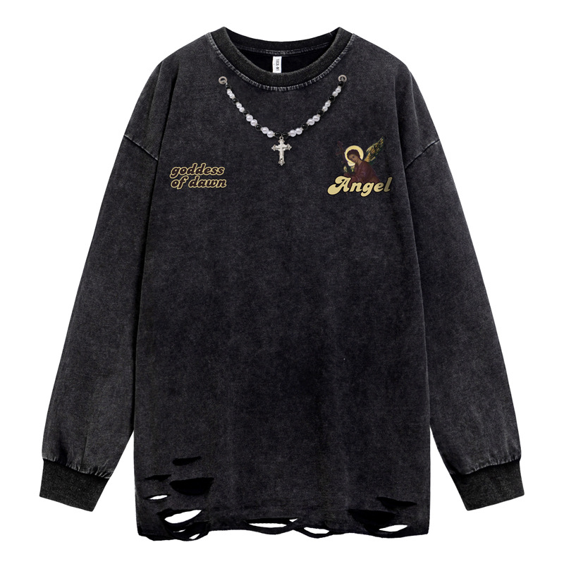 Oversize Damage Straight Long Sleeve T-Shirt WN16489