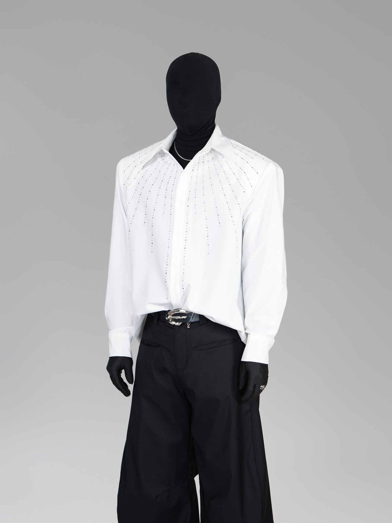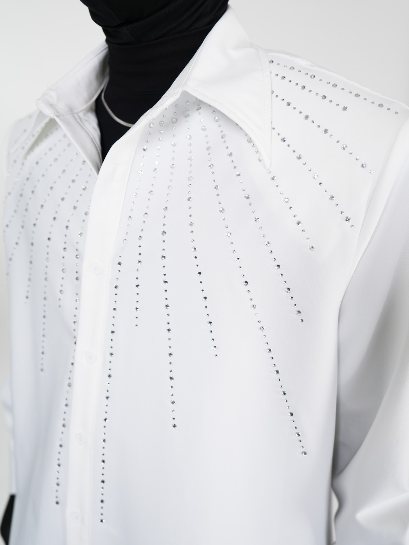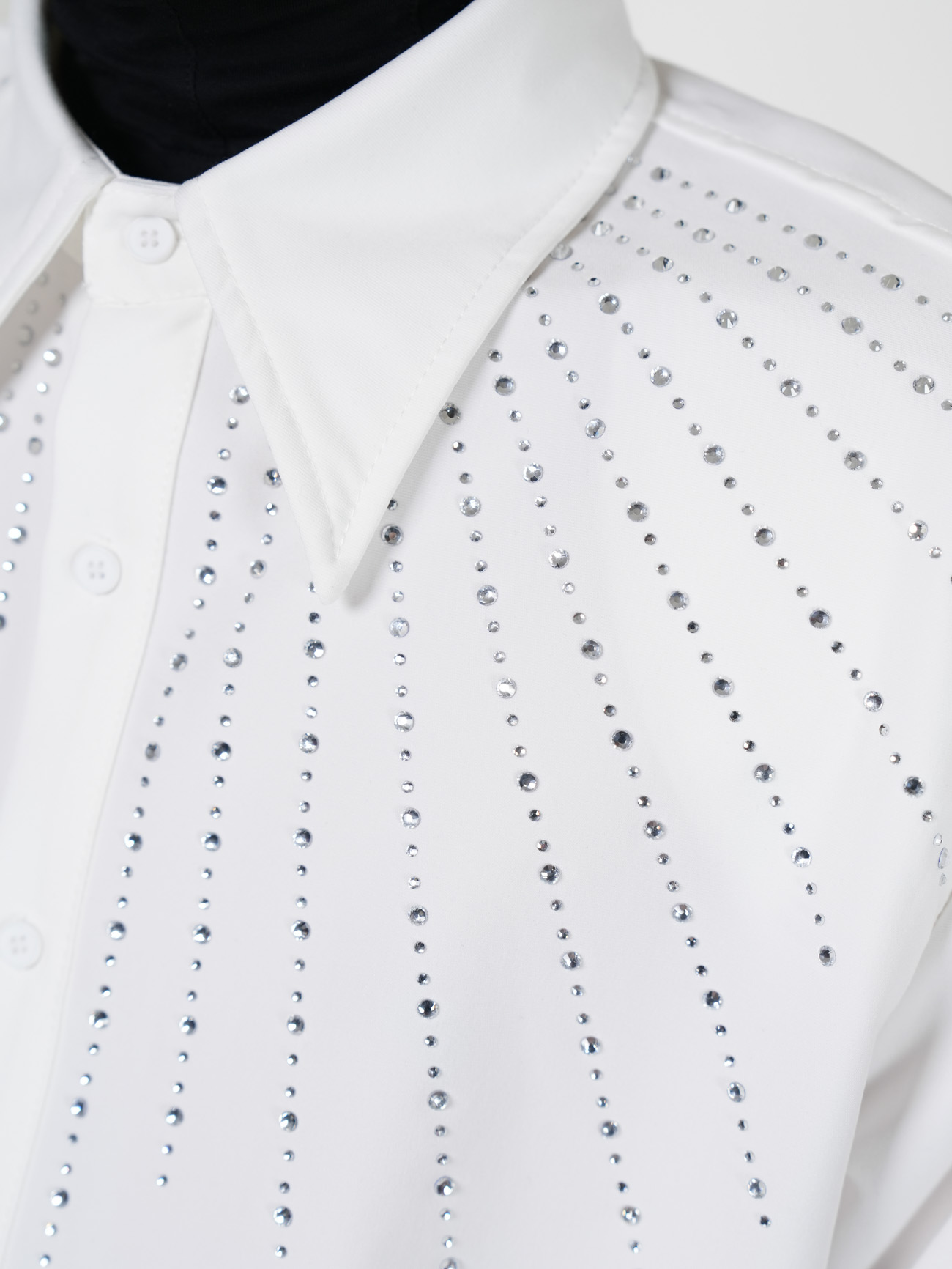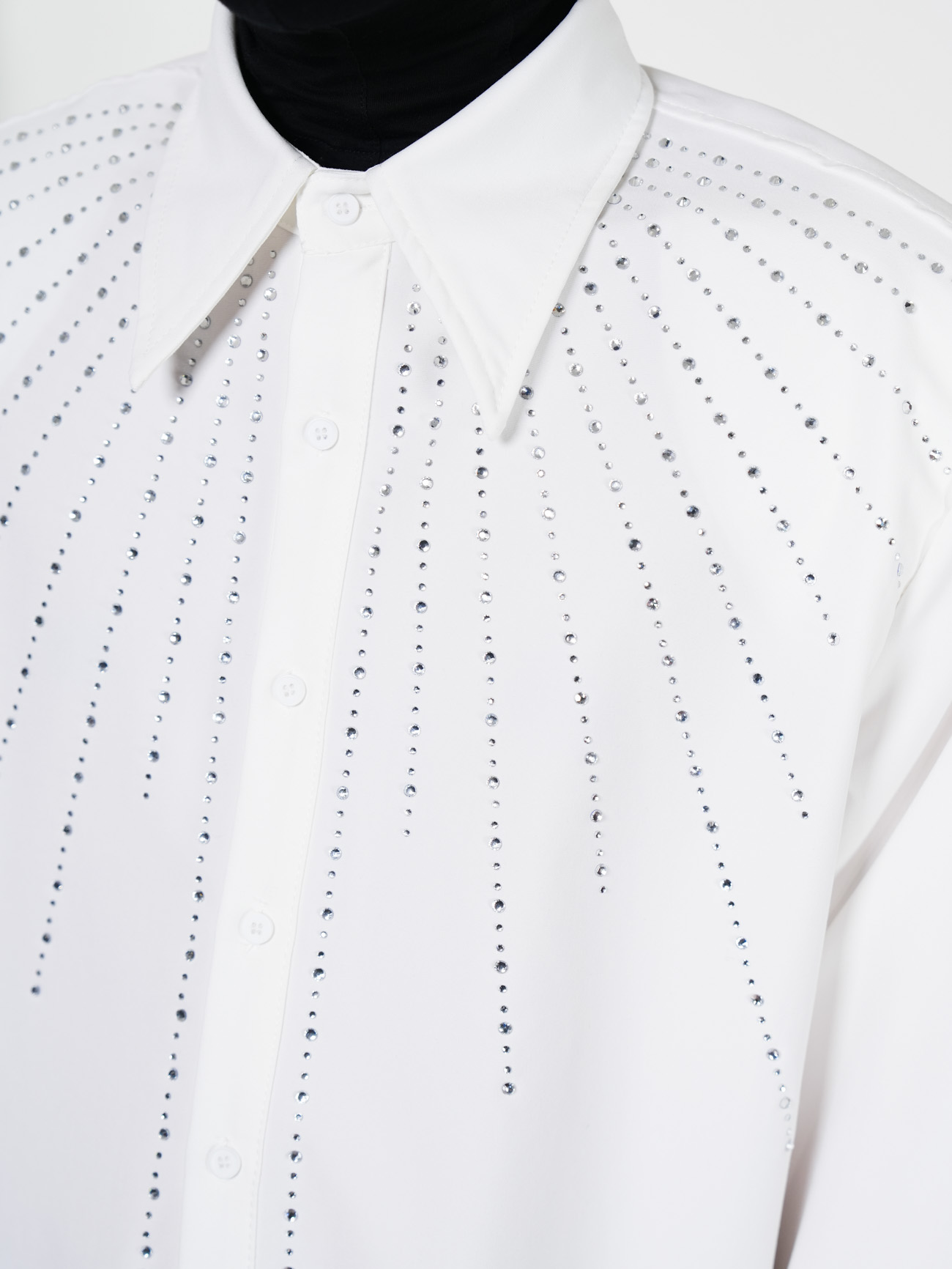 Rhinestone Oversize Long Sleeve Shirt WN17292