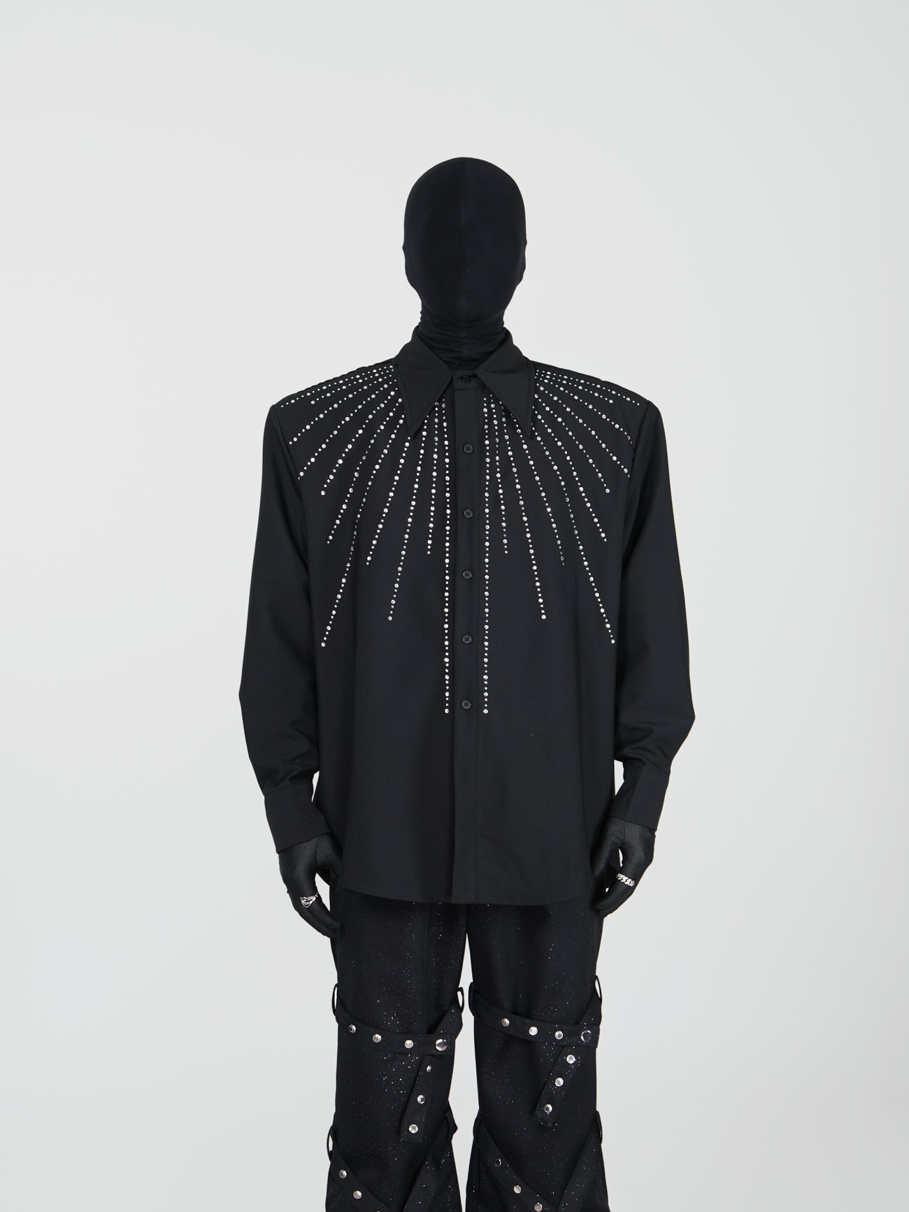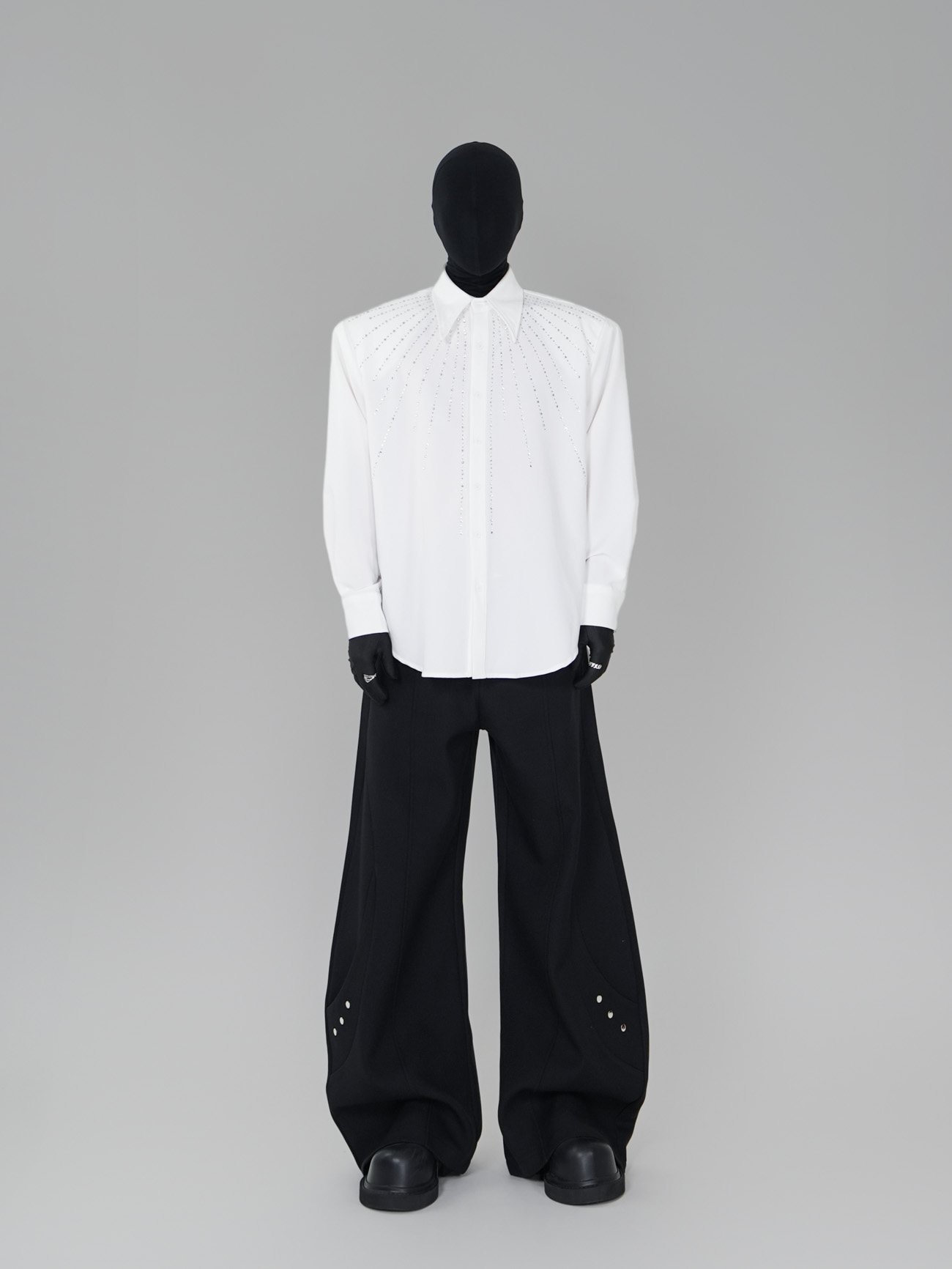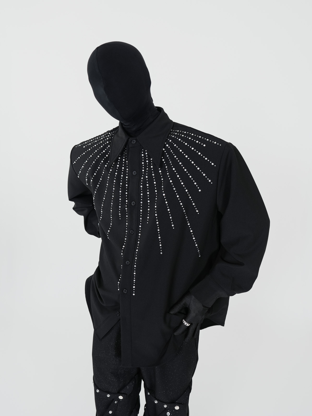 Rhinestone Oversize Long Sleeve Shirt WN17292