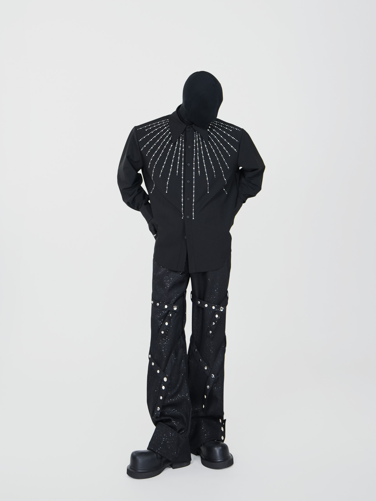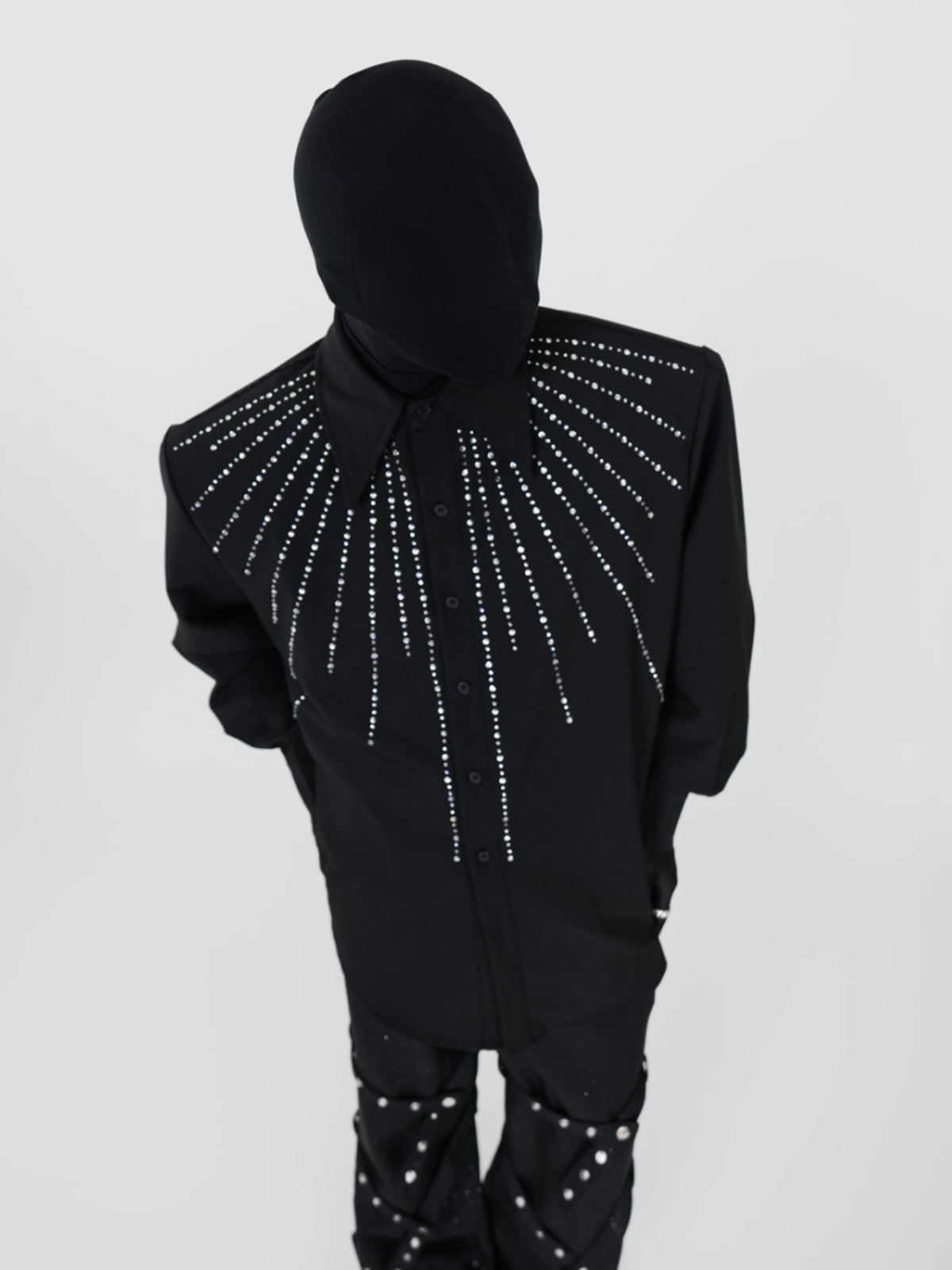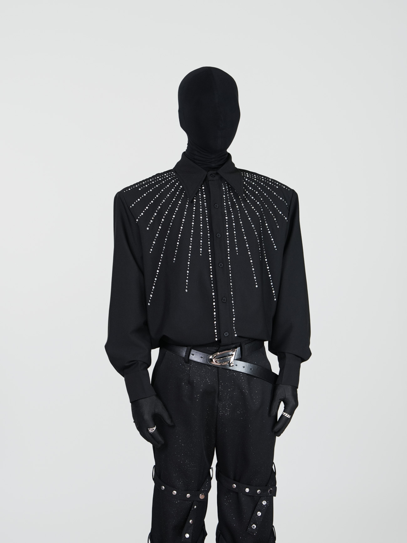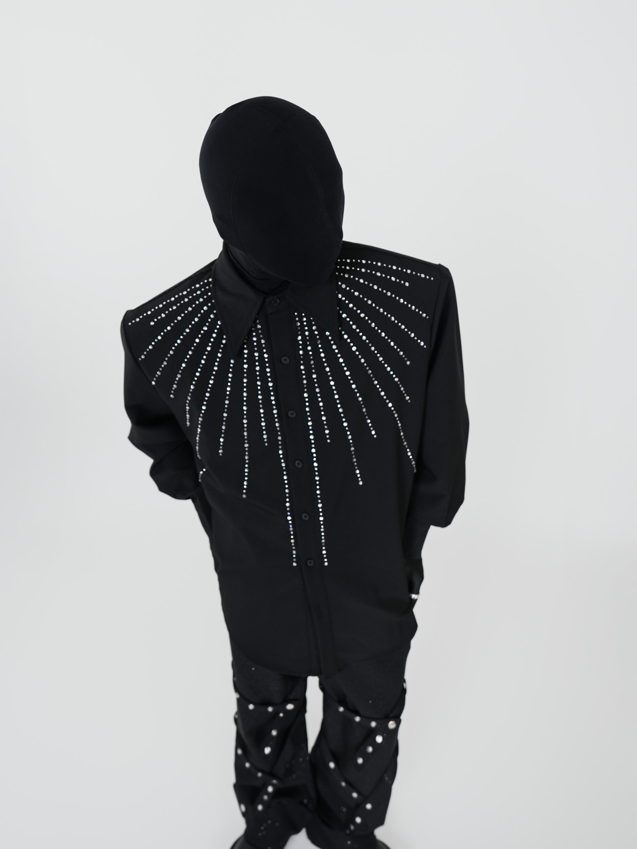 Rhinestone Oversize Long Sleeve Shirt WN17292