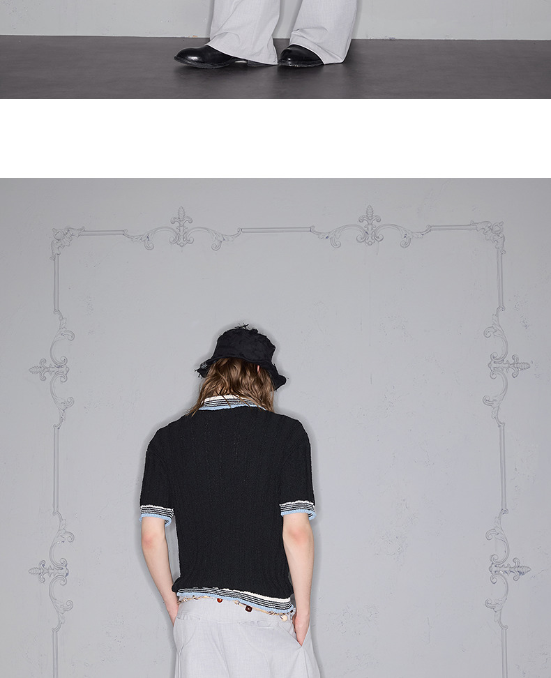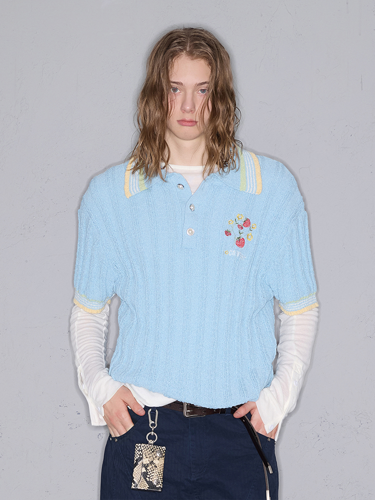 Stripe Glossy Button Embroidery Short Sleeve Polo Shirt WN17829