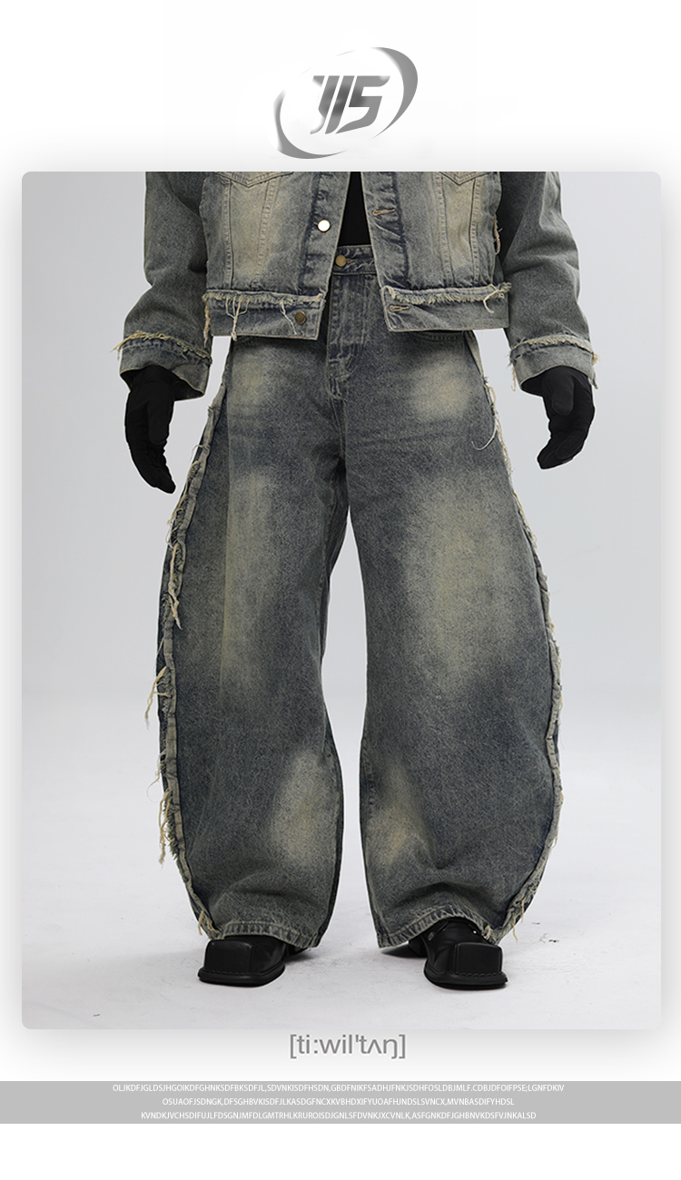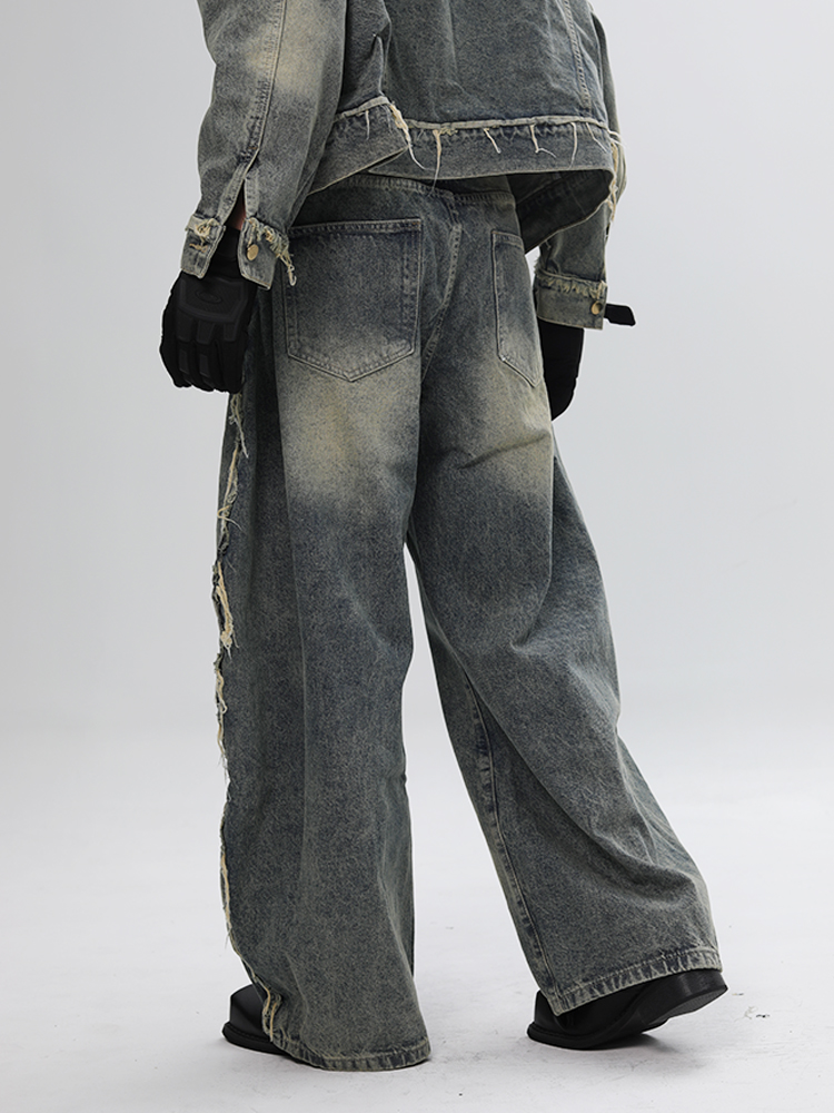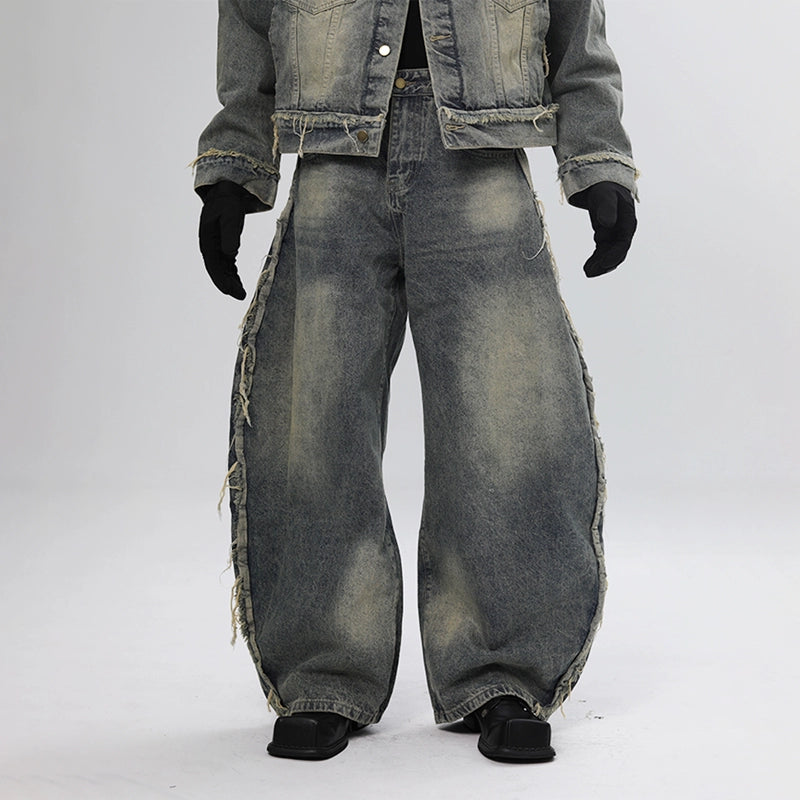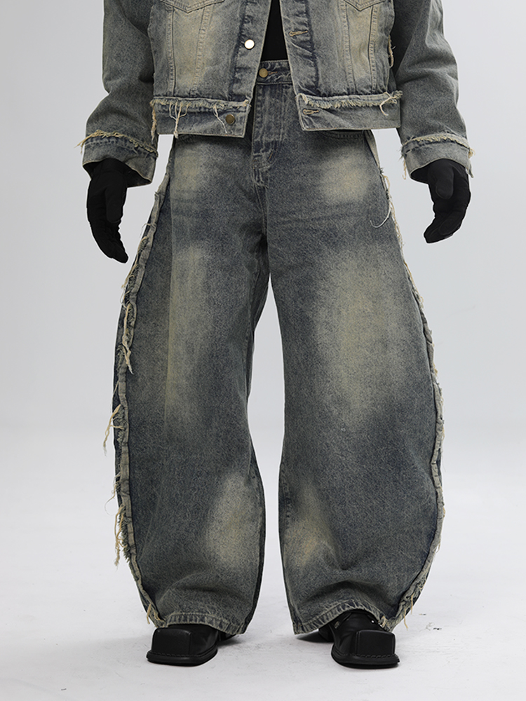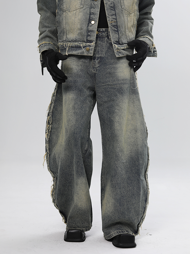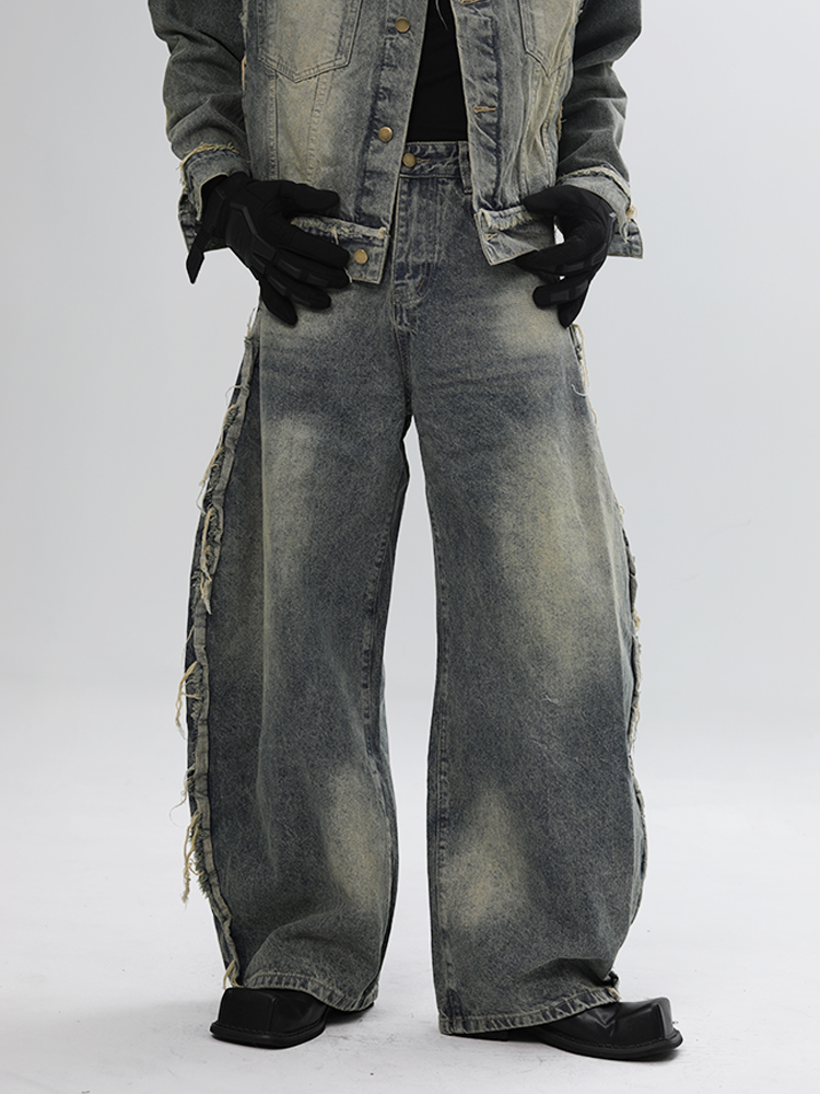 Fringe Curved Hem Wide Leg Denim Jeans WN18623