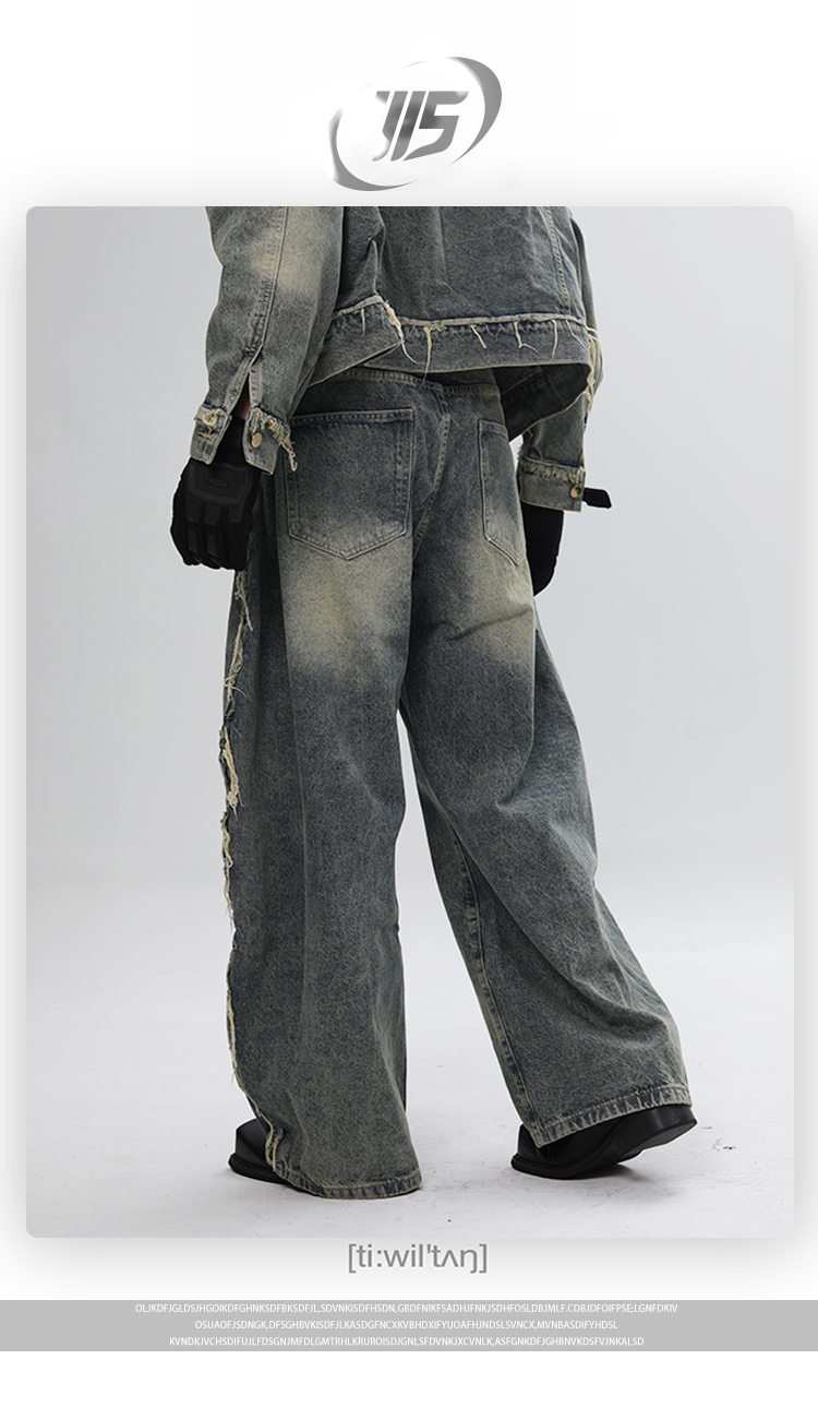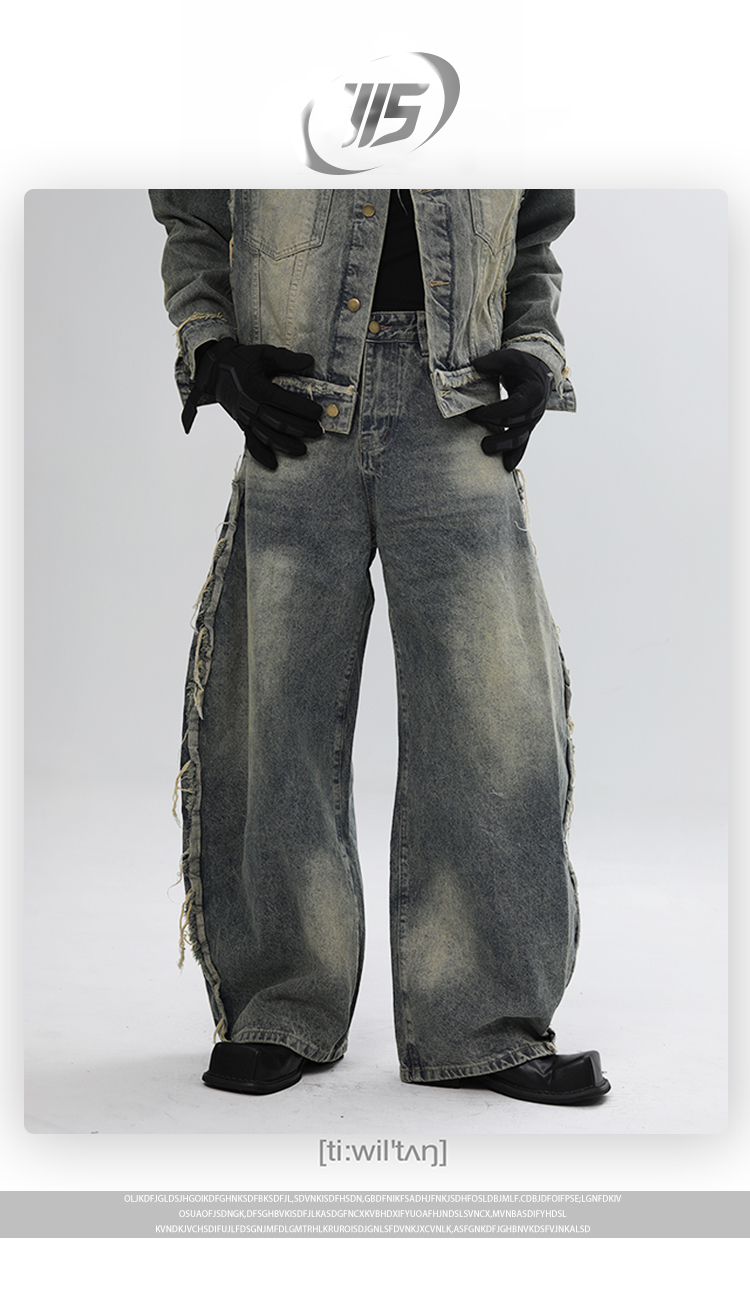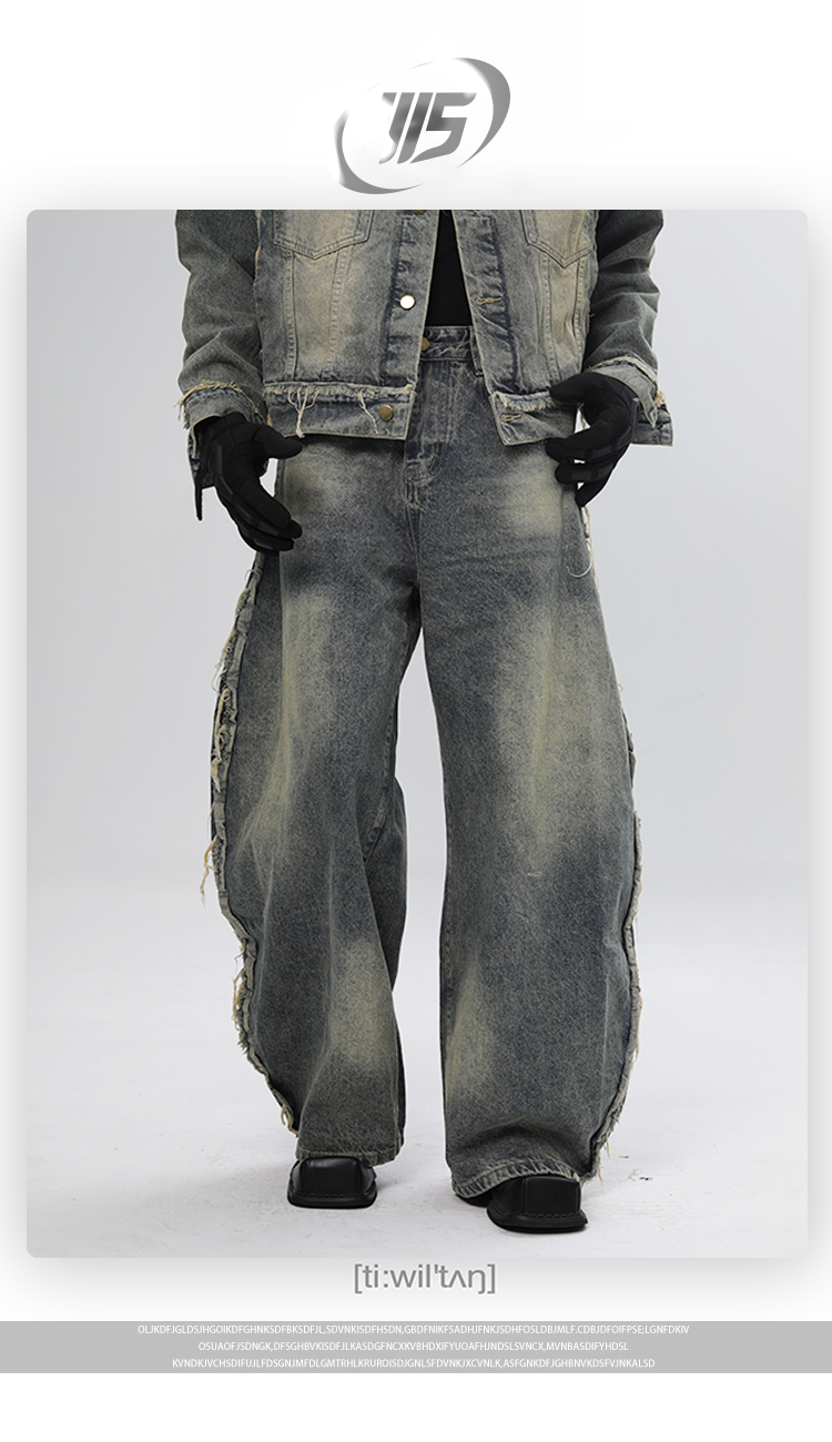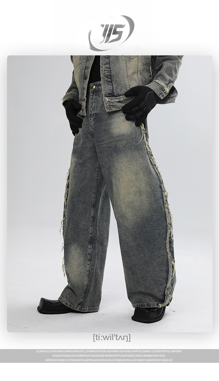 Fringe Curved Hem Wide Leg Denim Jeans WN18623
