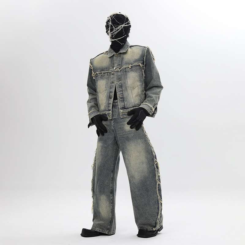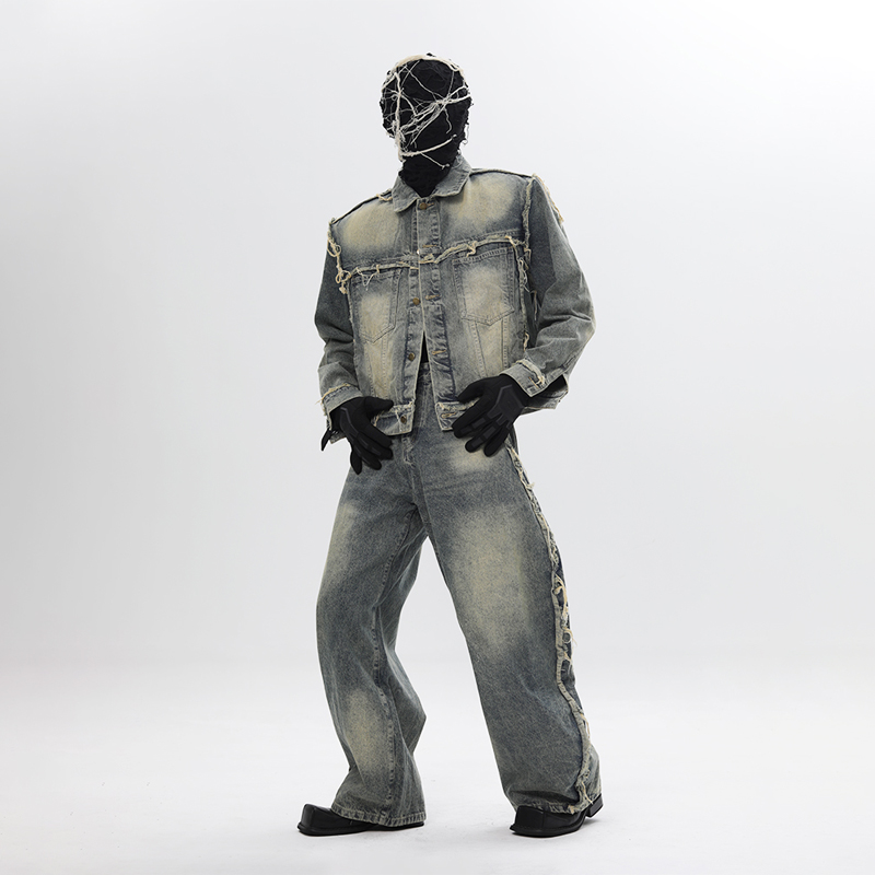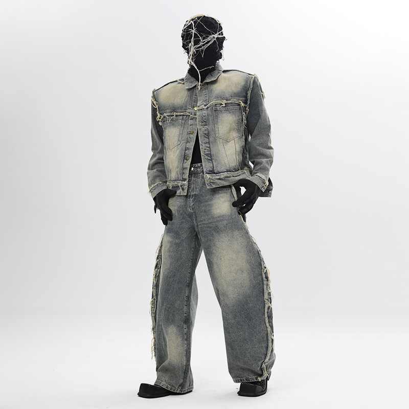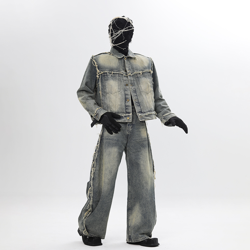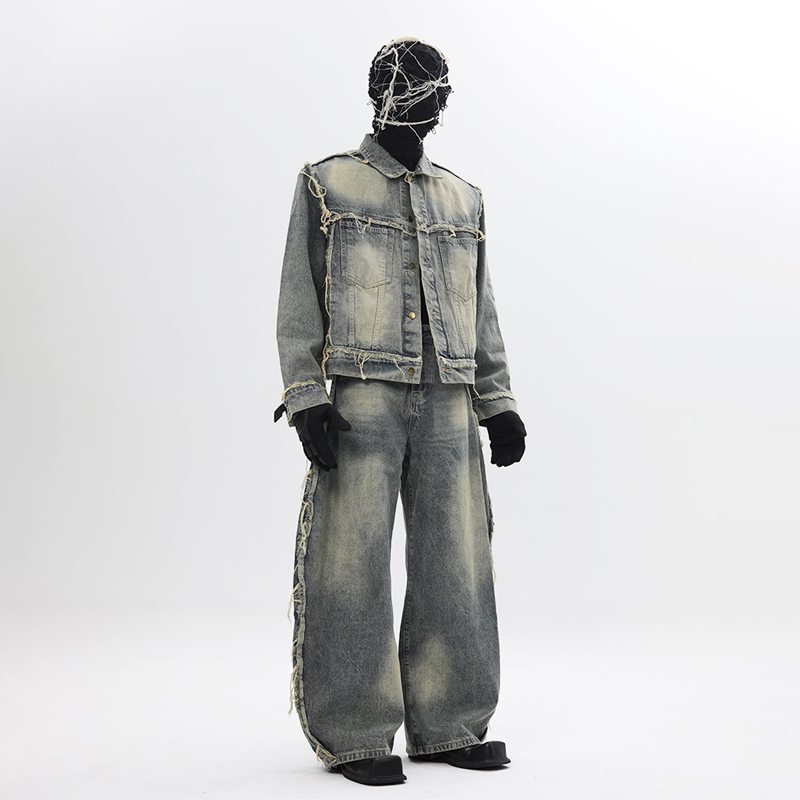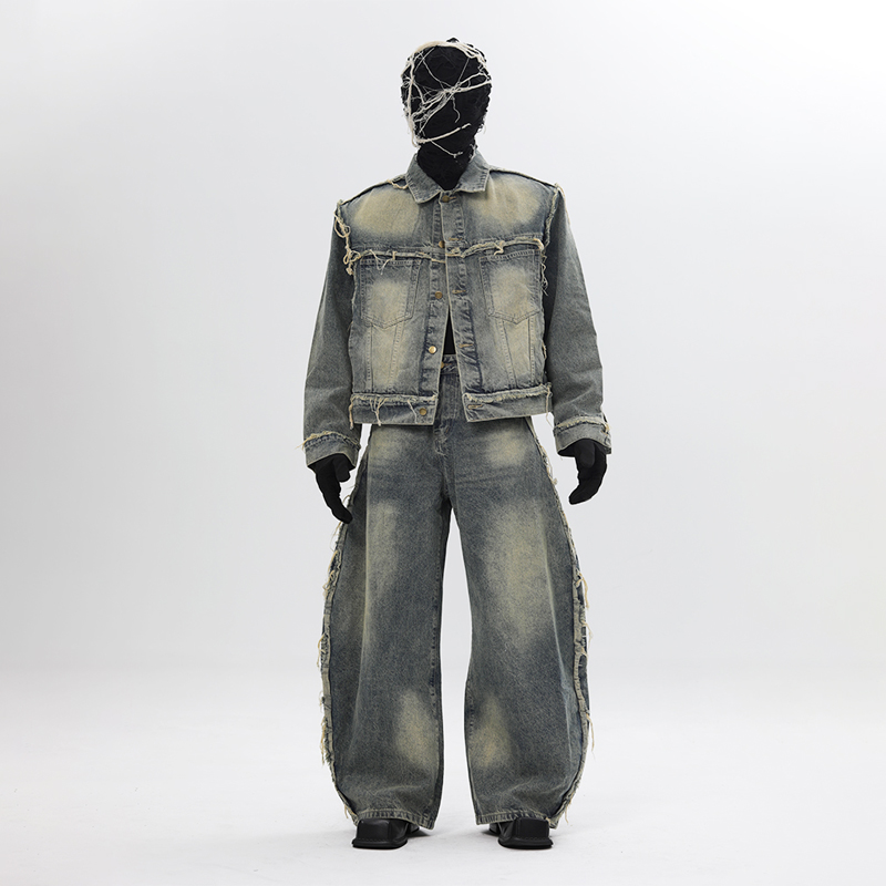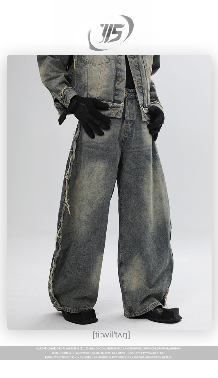 Fringe Curved Hem Wide Leg Denim Jeans WN18623