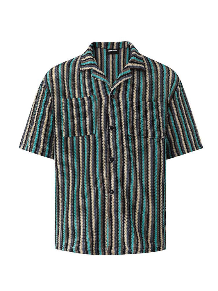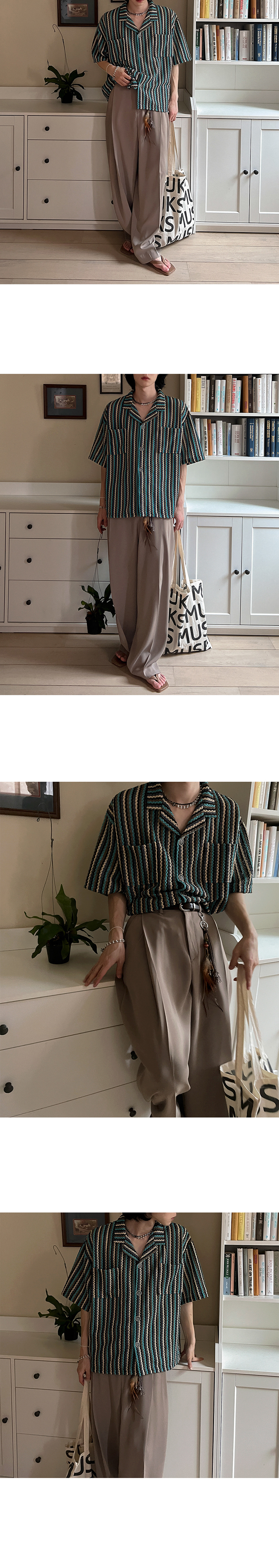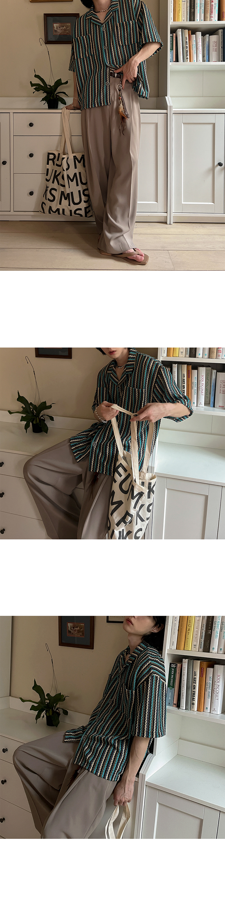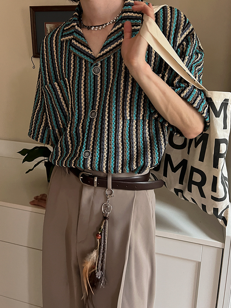 Striped Design Oversize Short Sleeve Shirt WN20274